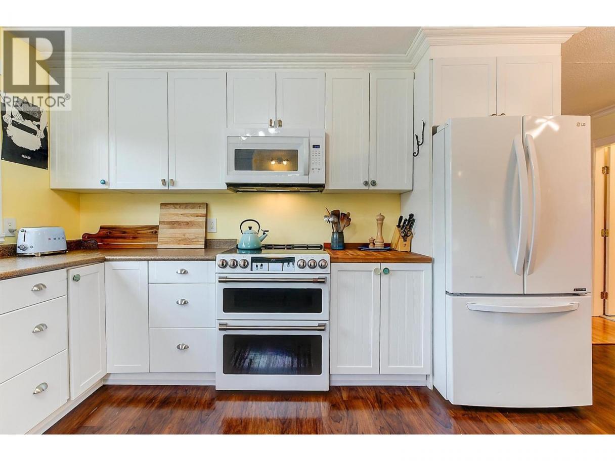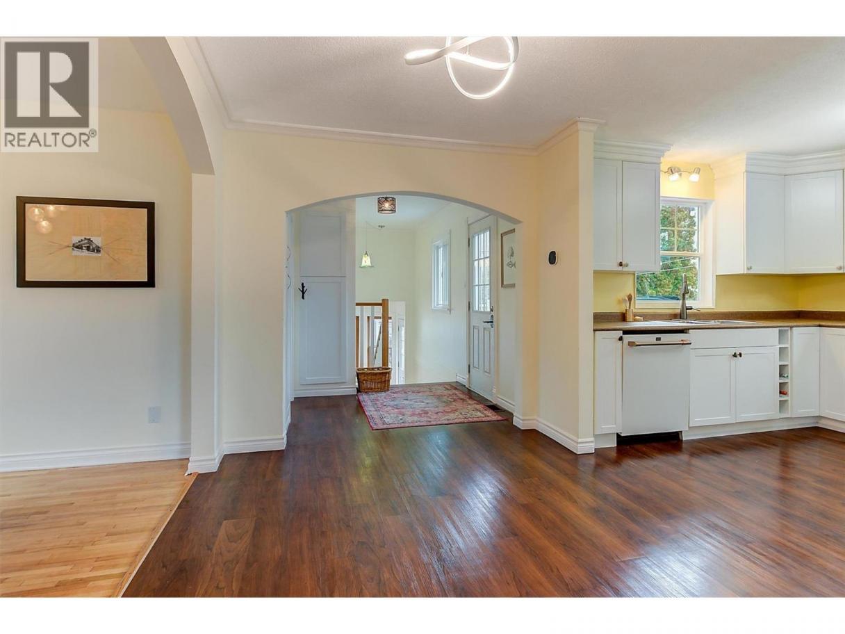 EXTENSIVELY RENOVATED with a Kitsilano Urban feel - and only Steps to KNOX Mtn Trails, Beach, Lake and Downtown! Tons of Character throughout, full Grade level basement with potential to suite. Classy Solid Wood plank Posted Fencing, Mature landscaping, and huge raised veranda deck invite you in! Main floor offers restored Oak hardwood, wood benches, crown moldings, classy wood encased windows, a bright spacious floor plan, curved arch doorways, and modern light decor. Large living room with picture window. Office/Den c/b made into 2nd bedroom up. White shaker Kitchen with quality copper ""Cafe"" appliances. Character 4-piece main bath sculpted heated tile, Vasel sink, arched 2 area separation for easy sink access. Big Primary bedroom with wood encased windows, built in floor to ceiling custom wardrobe/cabinets & View of Knox. Bay window back Foyer overlooks backyard featuring reclaimed solid fir seating & cabinets, wall to wall windows. 2 Big bedrooms down, Rec Room, updated 3-piece bathroom with heated tile and pebble stone shower. Hi eff furnace, Central Air, pex piping, updated electrical, ducting. Cute backyard with raised gardens, exposed aggregate/stamped patio, funky cedar enclosed outside shower, heated chicken coop. Stunning 2023 built detached heated 1 car plus workshop sports garage with 200-amp panel, 5.74 KW solar panels, sink, roller door, workshop area, on demand hot water! A minute's walk to Knox trails, Lake and Beach! Quick Possession possible! (id:6769)