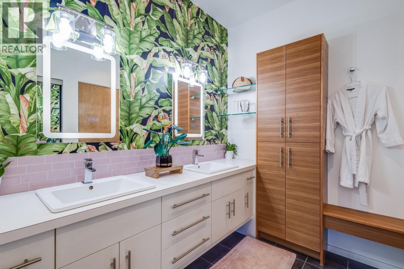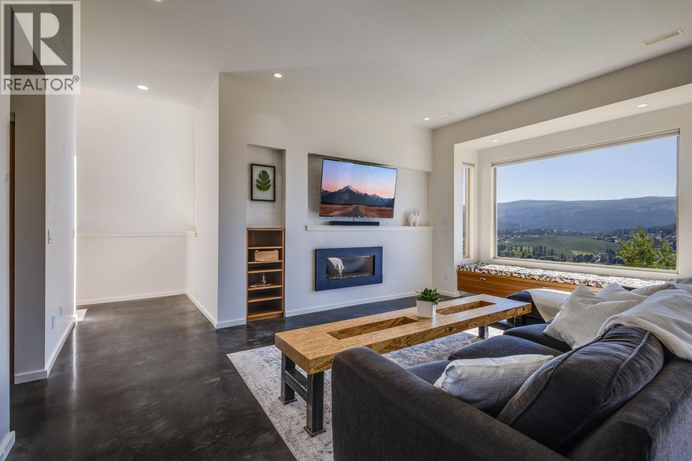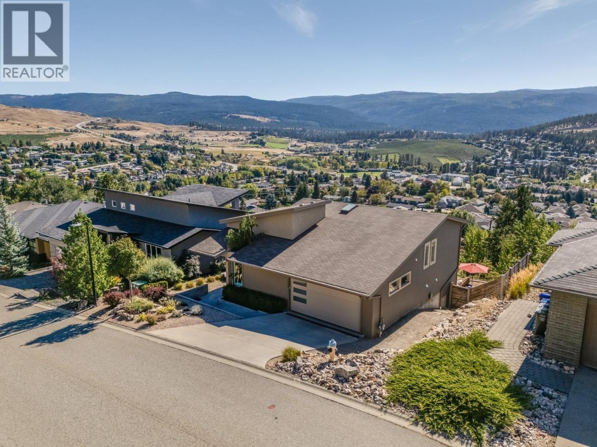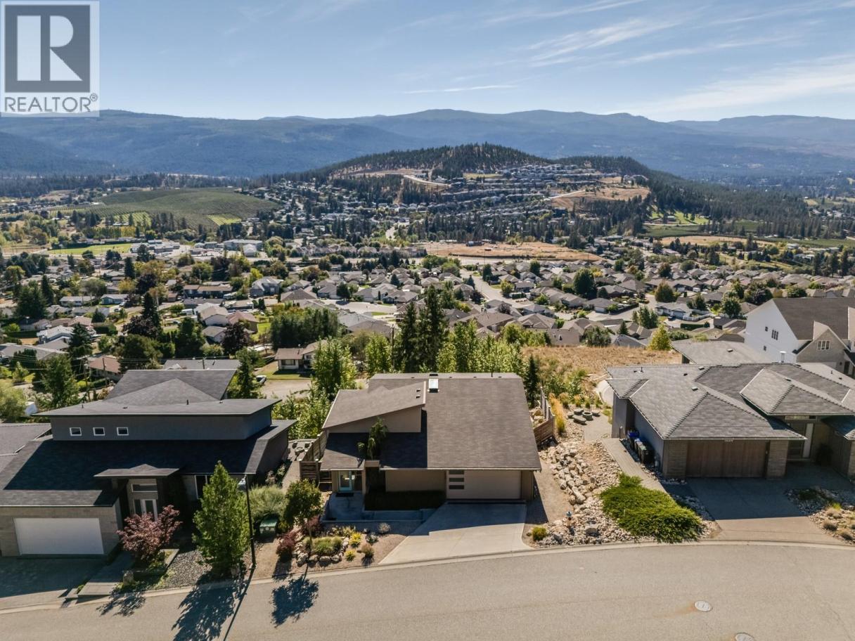 A true standout! This semi-custom contemporary home is exceptionally rare in the area, offering a bold alternative from cookie cutter living. With stunning south facing views of the valley, city, and lake, this home is designed to impress from every angle. At its heart is a chef’s kitchen with a 10’ island, induction cooktop, and modern island hood fan. The open layout is elevated by heated polished concrete floors, soaring windows, and skylights that flood the interior with natural light, while a sleek martini bar adds a playful, social touch, ideal for entertaining or relaxing. The main living area flows effortlessly outdoors to a flat, private, low-maintenance yard. Thoughtfully designed, it combines concrete and grass spaces framed by landscaping and irrigation. Evenings can be spent soaking in the hot tub or gathering around the fire pit with a view, all with minimal neighbours in sight. Upstairs, three bright bedrooms include a primary suite with a double vanity ensuite and sundeck that captures the most spectacular views. Geothermal heating & cooling provide year-round comfort and efficiency, while cork flooring adds warmth and contrast to the modern aesthetic. Combining style and practicality, the home includes a spacious double car garage with extended ceiling height and a dedicated workshop space. With rare architecture and stunning views, this residence offers a lifestyle as remarkable as its design. (id:6769)