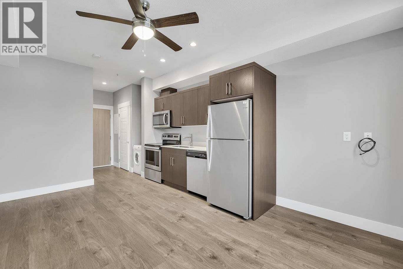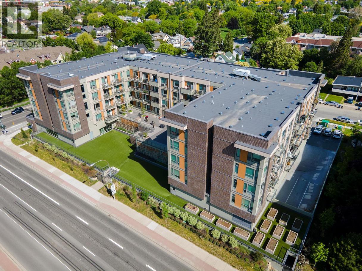 Centrally located modern studio suite is ready for move in!! Complete with a full kitchen that includes stainless steel appliances & quartz countertops. This suite has lots of natural light through the large window, a full 4 piece bathroom, in suite laundry & A/C. Cambridge House offers exceptional amenities, including a large open indoor concept social lounge, gym, business center, and an outdoor courtyard with a barbecue area. Short stroll to downtown Kelowna's many amenities, including beaches, trails, shopping, dining, and a variety of entertainment. 1 secured parking stall and storage locker included. 2 dogs or 2 cats or 1 of each. Less than 25 lbs. Rentals allowed. This property is ideal for first-time buyers, students, or investors. (id:6769)