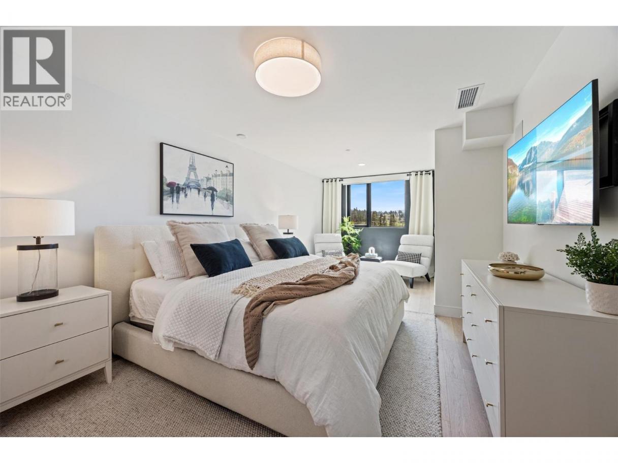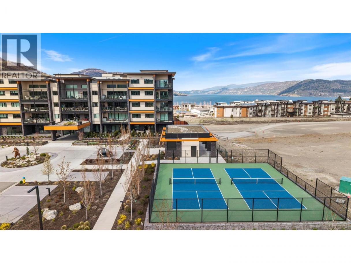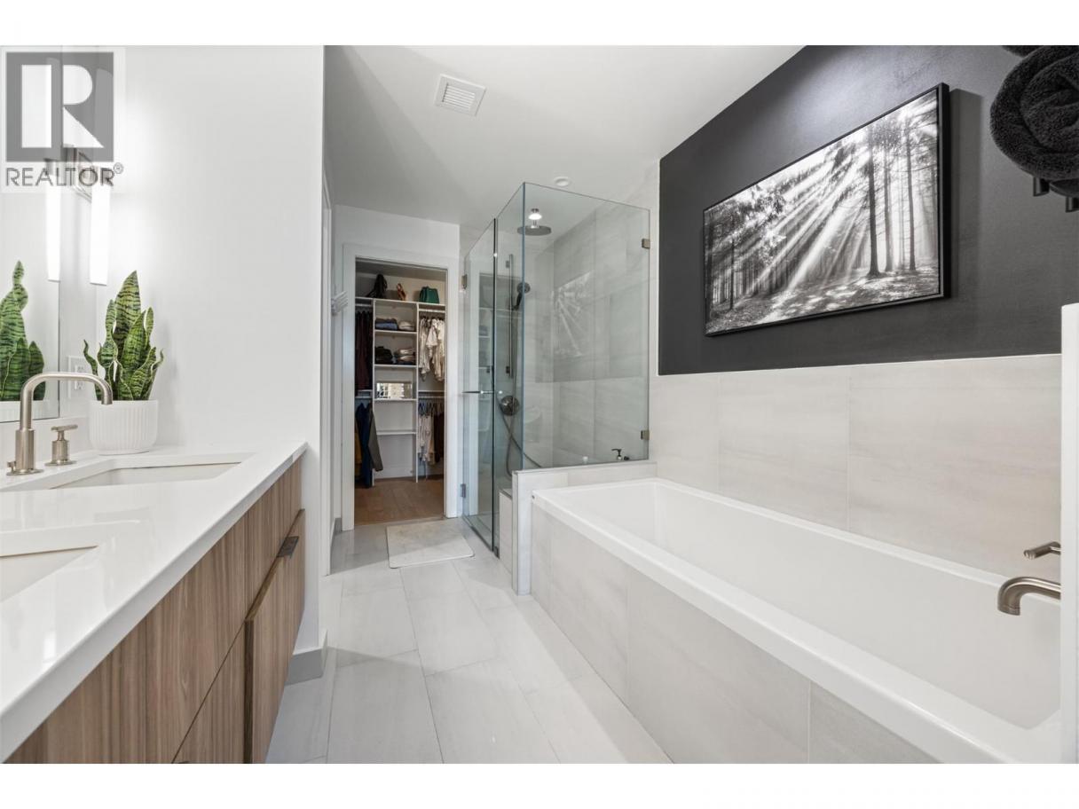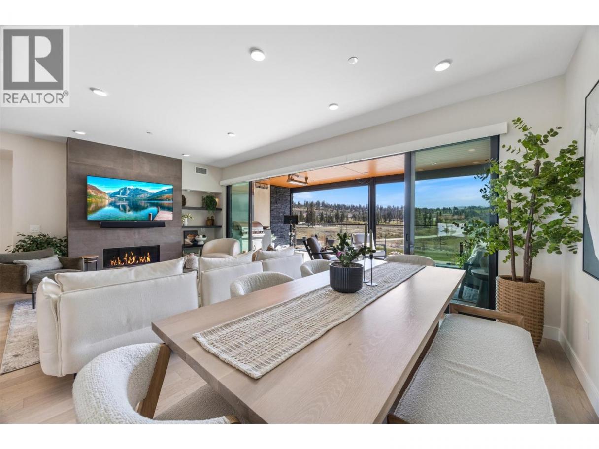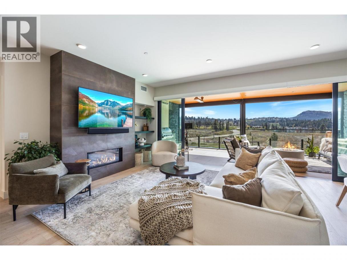 Experience elevated condo living in this exquisite two-bedroom, two-bathroom home at Ariva. From the moment you step inside, you’ll be captivated by the attention to detail, high-end finishes, and soothing palette of neutral tones that enhance the sense of space and serenity. The gourmet kitchen is a showstopper, featuring a striking waterfall island, full slab backsplash, gas stove, soft-close cabinetry, and convenient pull-out drawers—all complemented by elegant, neutral finishes. A sleek linear fireplace anchors the open-concept living area, adding warmth and modern style. Enjoy seamless indoor-outdoor living with retractable glass doors that open onto a spacious deck—complete with a built-in BBQ, stone fire table, motorized roll-down screens—creating a warm and inviting space perfect for year-round entertaining. The primary suite offers a peaceful retreat with space for a reading nook, office, or lounge area, a walk-in closet, and a spa-inspired ensuite featuring dual vanities, quartz countertops, a deep soaking tub, and a glass-enclosed shower—all in calming, neutral tones. The second bedroom offers flexible use (no window or closet), while the stylish main bathroom and a separate laundry room with additional storage complete the layout. Additional features include motorized blinds, a Control4 smart home system with integrated lighting and audio, and access to Ariva’s exceptional amenities: outdoor pool and hot tub, fitness centre, pickleball court, yoga studio, steam room, and a stunning lakeview resident lounge and terrace. Live the Okanagan lifestyle you deserve at Ariva. (id:6769)