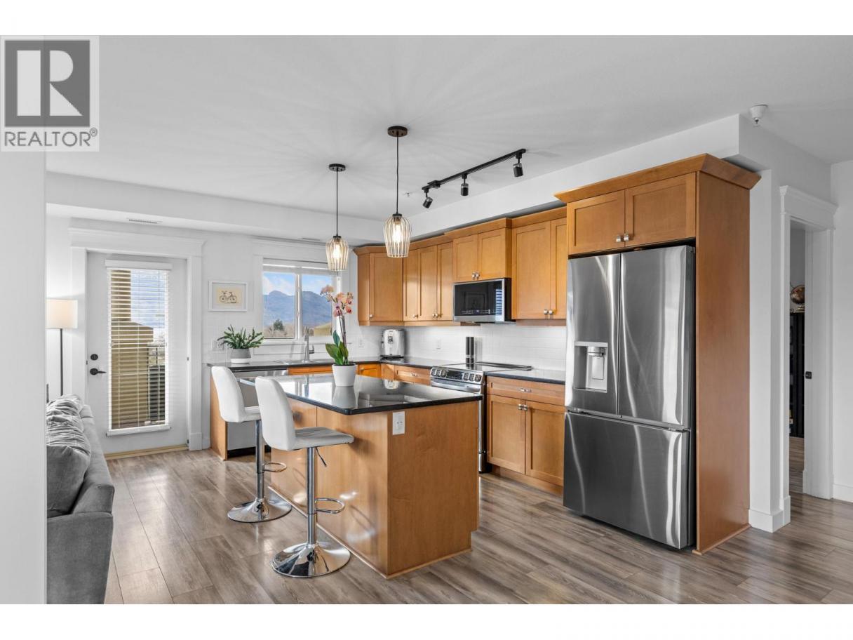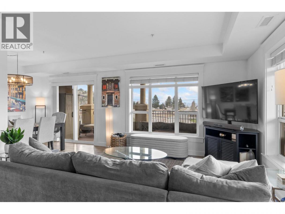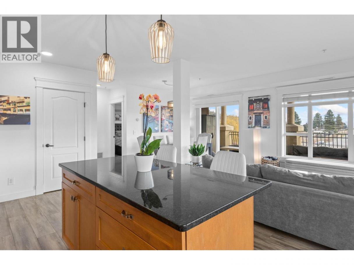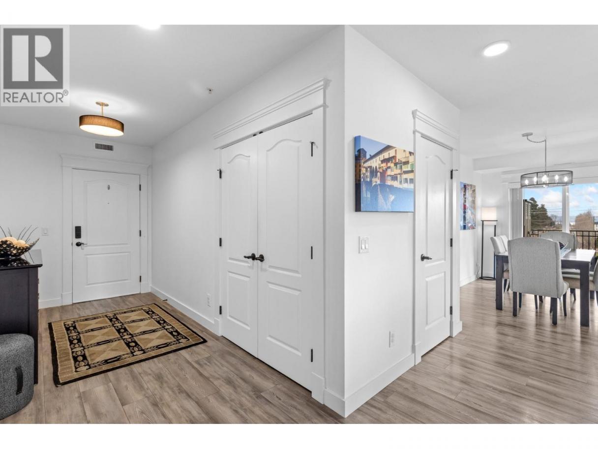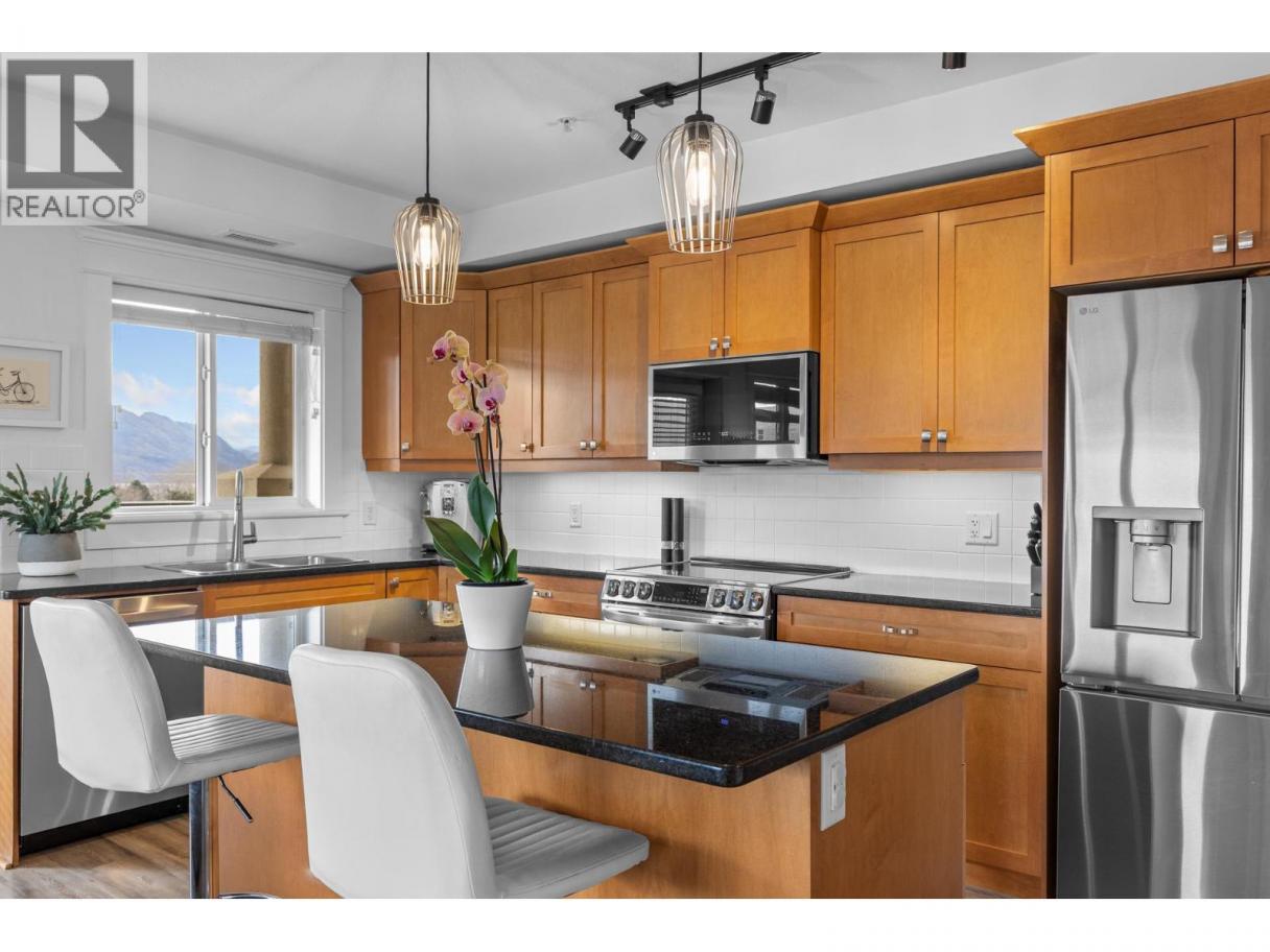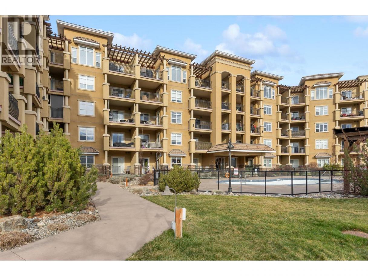 Welcome to Tuscany Villas! Gorgeous lake views and effortless resort-style living await in this poolside 2-bedroom, 2-bathroom condo offering 1,150 sq. ft. of interior living plus an incredible 480 sqft covered deck perfect for entertaining, relaxing, and taking in the scenery. This bright, open-concept plan is beautifully finished with newer flooring and a stylish kitchen featuring a large island, granite countertops and all-new stainless steel ThinQ appliances. Every detail has been thoughtfully upgraded, including new lighting throughout, new switches and dimmers, a smart thermostat, and quartz countertops with modern fixtures in both bathrooms. The bedroom sliders are enhanced with UV privacy film, allowing natural light to pour in while maintaining comfort and privacy. Enjoy breathtaking approximately 180-degree lake views through expansive windows and the peace of mind of a solid concrete and steel construction building - designed to be up to 75% quieter and built to last. Air conditioned, pristine and truly move-in ready, this home feels like new. Even better, no Property Transfer Tax applies, adding exceptional value. Tuscany Villas delivers true resort-style living with a beautiful outdoor swimming pool, hot tub - just steps to the beach, trails, wineries, restaurants and shopping. Whether as your full-time residence or the perfect home away from home, this is lakeside living at its finest. (id:6769)