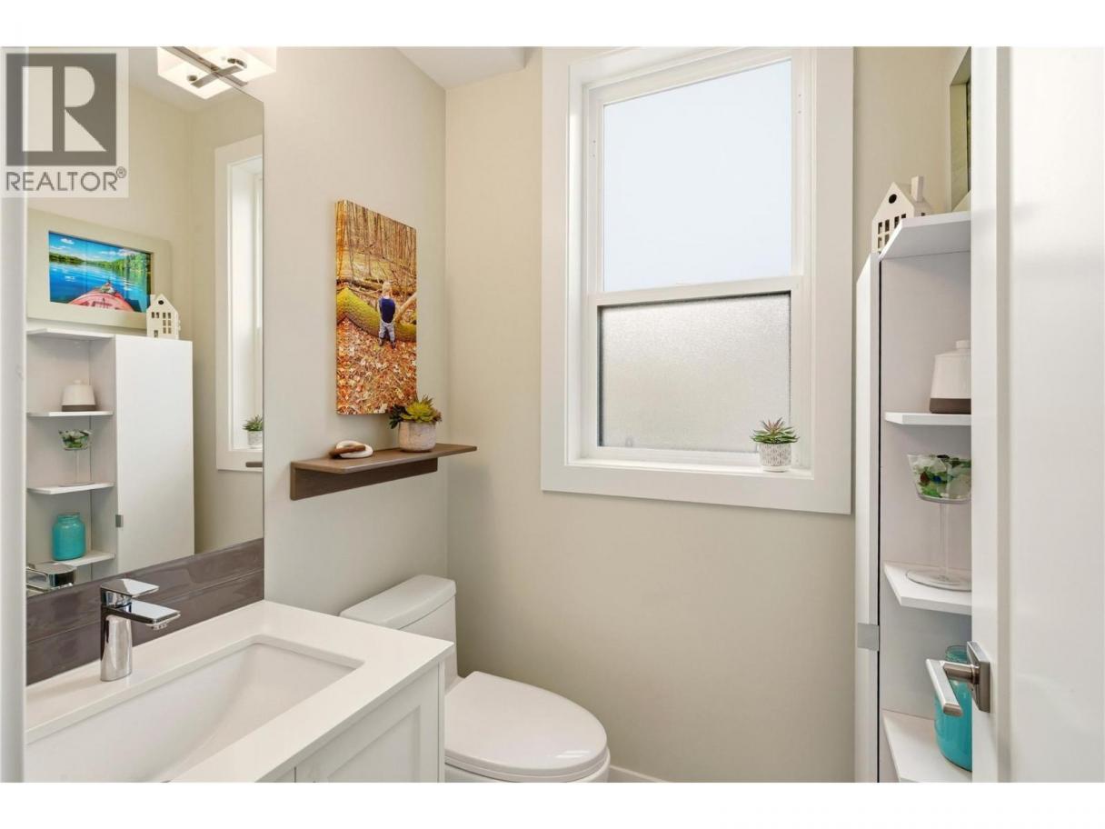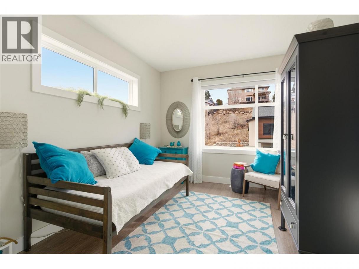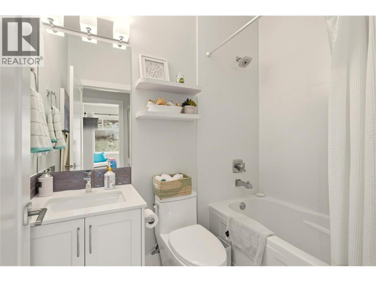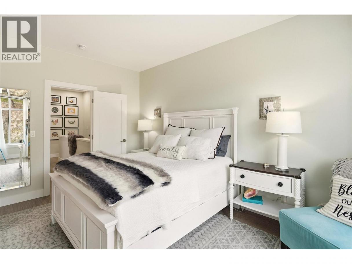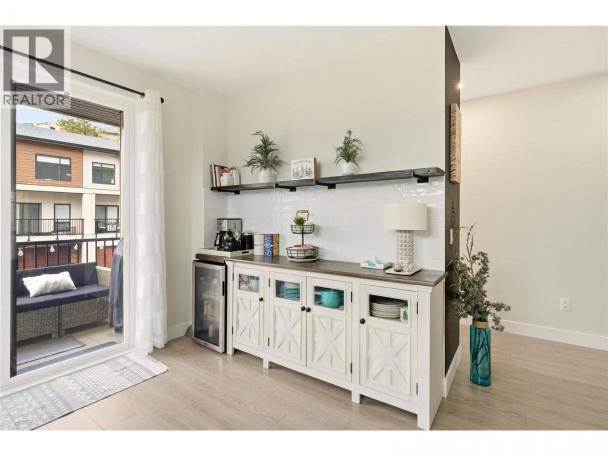Welcome to Ascend – a beautifully positioned end-unit townhouse in the highly sought-after Black Mountain Golf Course community. Built in 2023, this thoughtfully updated 4-bedroom, 3.5-bathroom home offers nearly 1,900 sq ft of modern living across three levels. Ideally situated within the complex, this end unit enjoys mountain views and offers exceptional privacy along with the most natural sunlight exposure in the development, filling the home with warmth and brightness throughout the day. The open-concept main floor features updated flooring throughout and a bright living space anchored by a stylish electric fireplace with custom mantle. The contemporary kitchen flows seamlessly into the dining area with direct access to the balcony — perfect for entertaining or relaxing while taking in the surrounding views. Upstairs includes three bedrooms, highlighted by a spacious primary suite with a private 3-piece ensuite. The lower level offers a flexible office or fourth bedroom with a full bathroom. A standout opportunity combining desirable end-unit positioning, , multiple upgrades, low strata fees, and modern design just steps from the golf course. (id:6769)