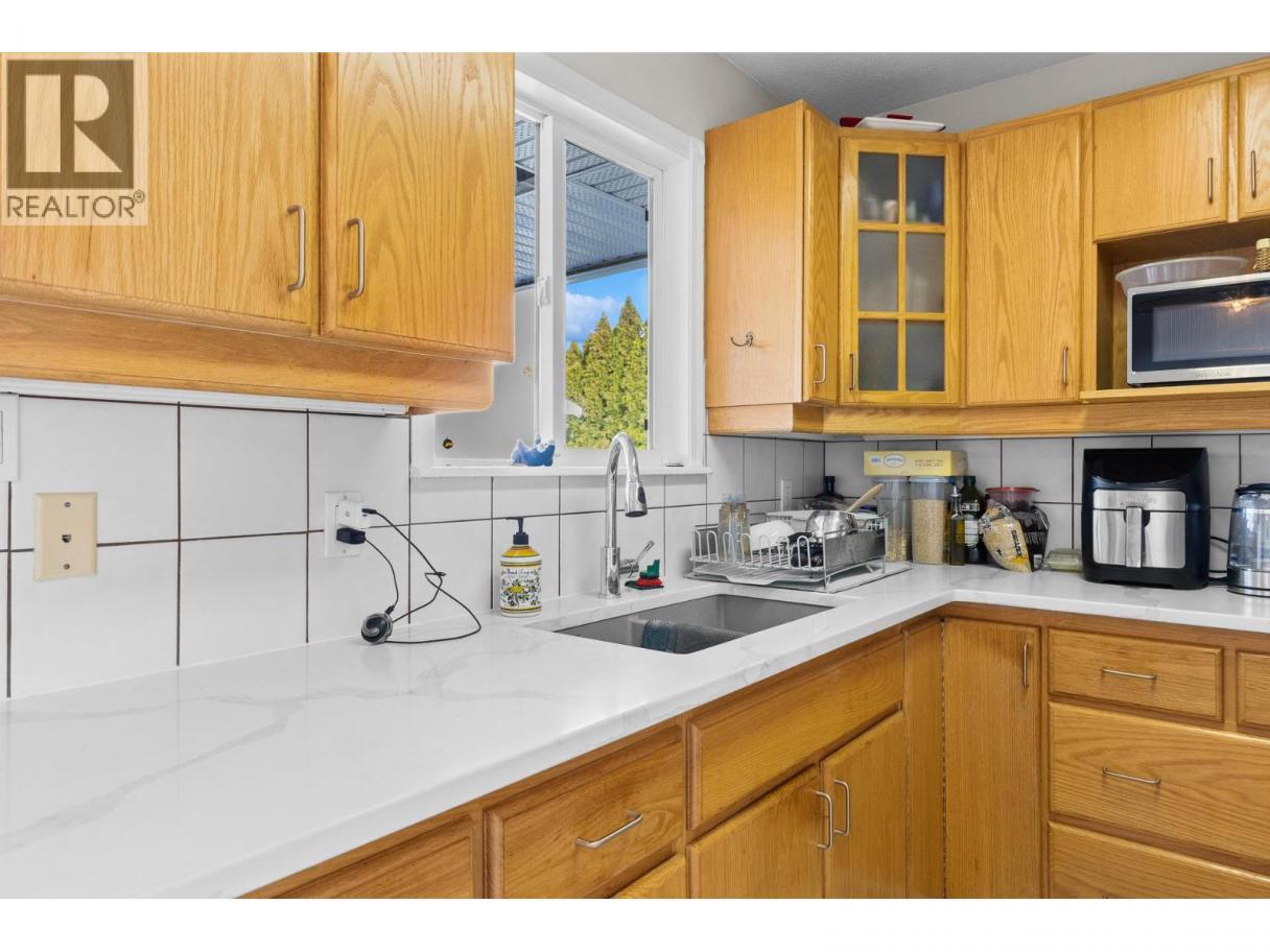 Charming & Updated Rancher on a Private 0.21 Acre Lot! Discover the perfect blend of comfort and convenience in this pristine 2-bedroom rancher. Situated on a flat, generous 0.21-acre lot, this home is an ideal opportunity for first-time buyers or those looking to downsize into a stair-free retirement. Step inside to find a tastefully updated interior featuring durable laminate flooring and energy-efficient vinyl windows throughout. The heart of the home is the classic oak kitchen, upgraded with gleaming granite countertops. Outdoor living is effortless here. Relax on the spacious covered porch overlooking a sprawling, private backyard—a blank canvas for gardeners, pets, or summer entertaining. Two storage sheds provide ample room for tools and toys. Ideally located just minutes from central amenities and a short walk from the scenic trails of Mission Creek, this home offers a peaceful retreat in the center of it all. (id:6769)