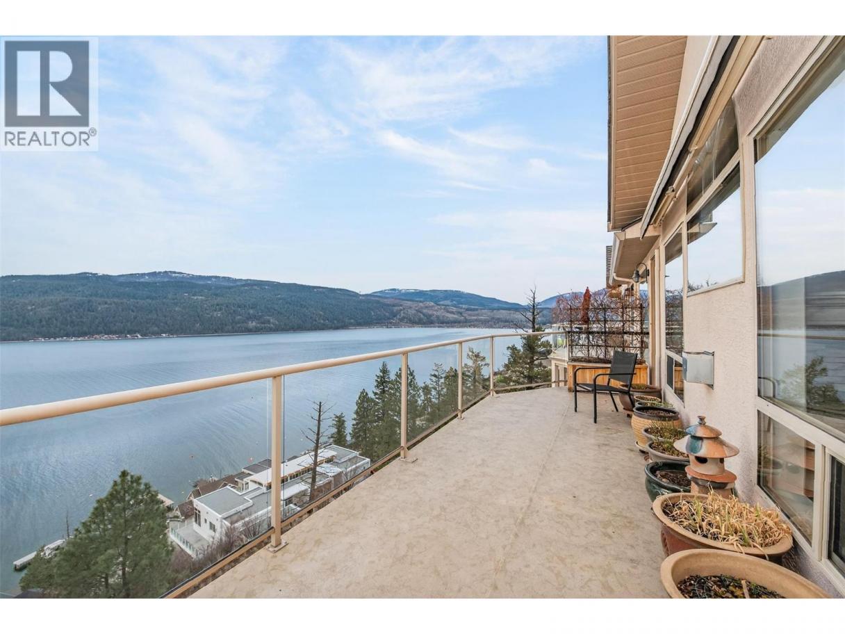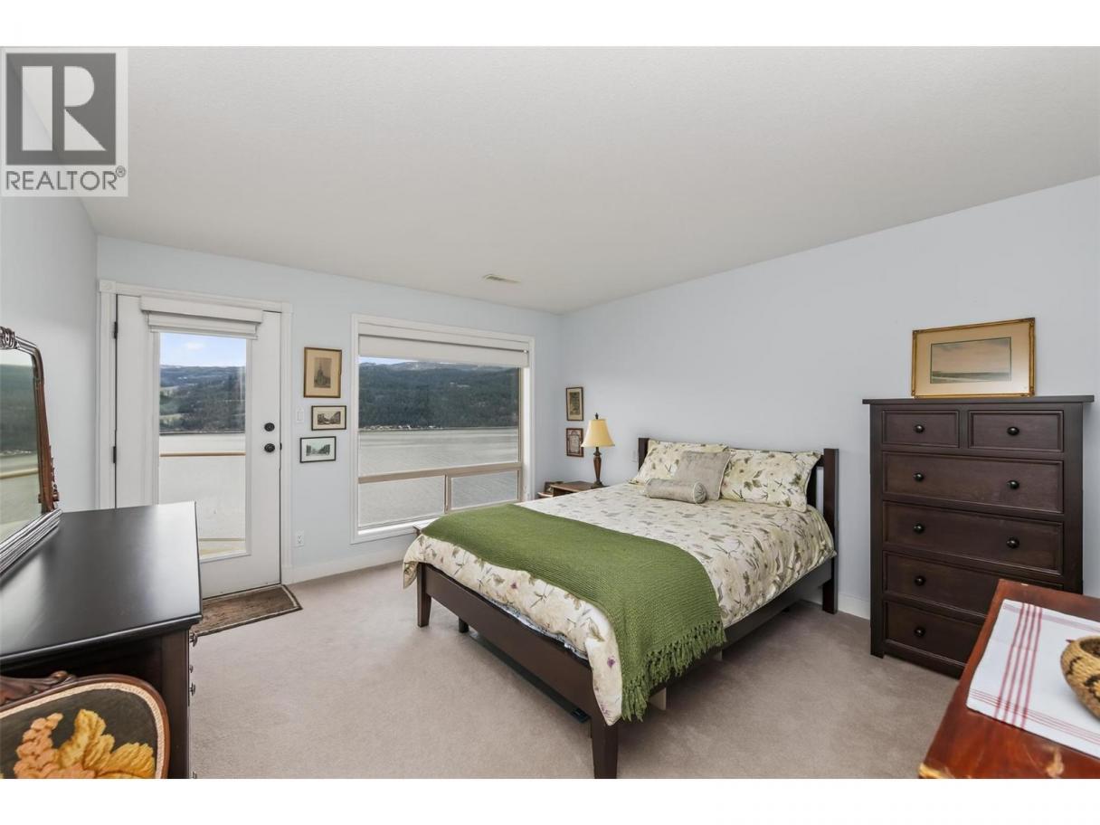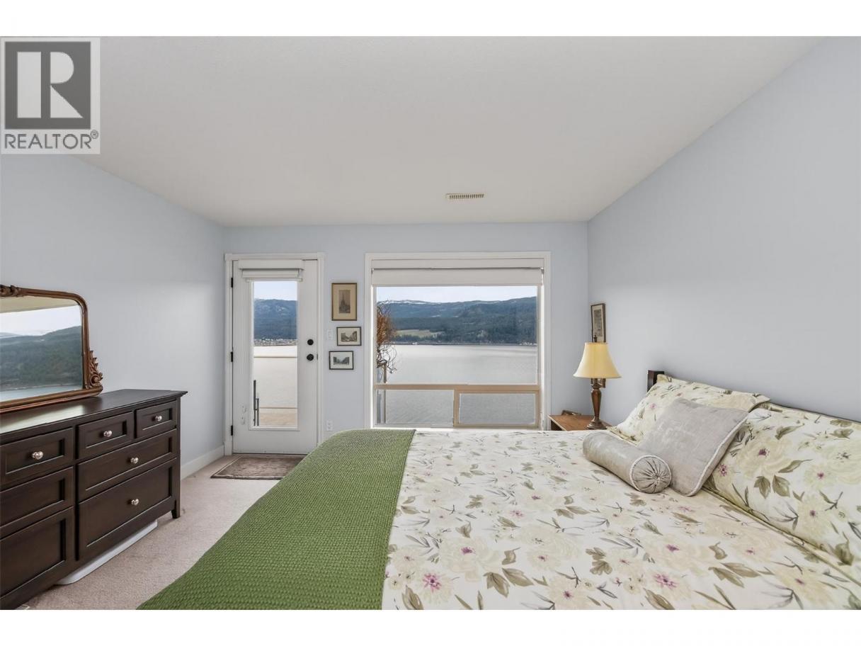 Lock-and-leave convenience, year-round living or a recreational retreat - this tasteful townhouse at Peregrine Point Estates truly has it all. With sweeping views of Okanagan Lake - among the best in the complex - this spacious home invites you to relax, reconnect with nature, and enjoy the peaceful setting this community is known for. The primary bedroom captures the morning sun shimmering across the lake, with a beautifully renovated ensuite featuring a tiled walk-in shower & custom-built closet just steps away. A bright den offers flexible space for a home office or studio. Step into the vaulted living, kitchen & dining area where expansive windows frame the view - perfect for entertaining or cozy evenings by the gas fireplace. A generous island makes hosting effortless, and the updated kitchen blends practical function with modern finishes. The second bedroom is spacious and welcoming, with the main bath nearby for guest comfort. Designed for easy one-level living, this home features hardwood floors, an open layout, and a deck with glass railings - ideal for soaking in the view. Many practical updates have been completed, offering peace of mind. Enjoy a modest strata fee and a cooperative community that manages the property with care. Residents maintain a private beach with water access, dock, and mooring opportunities on Okanagan Lake. On-site RV & boat parking is available for a monthly fee. This exceptional townhouse awaits its next happy owner! (id:6769)