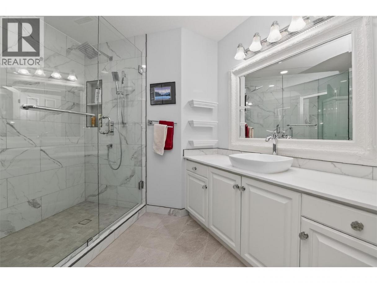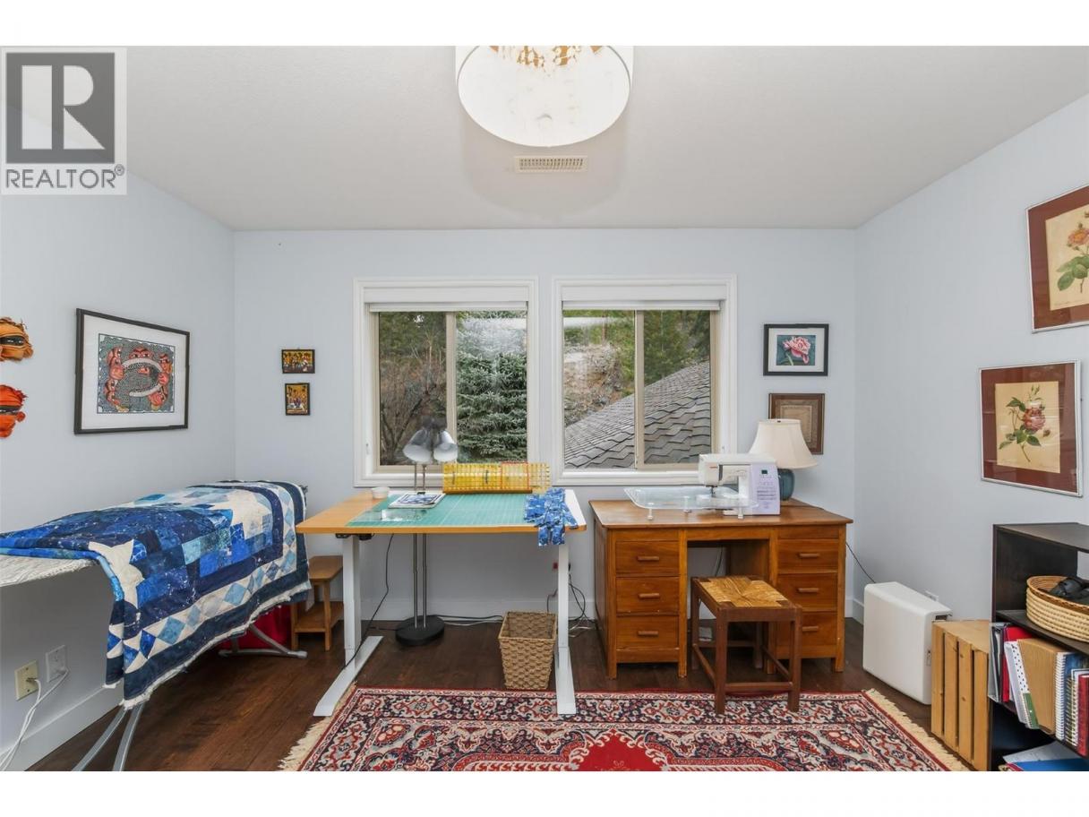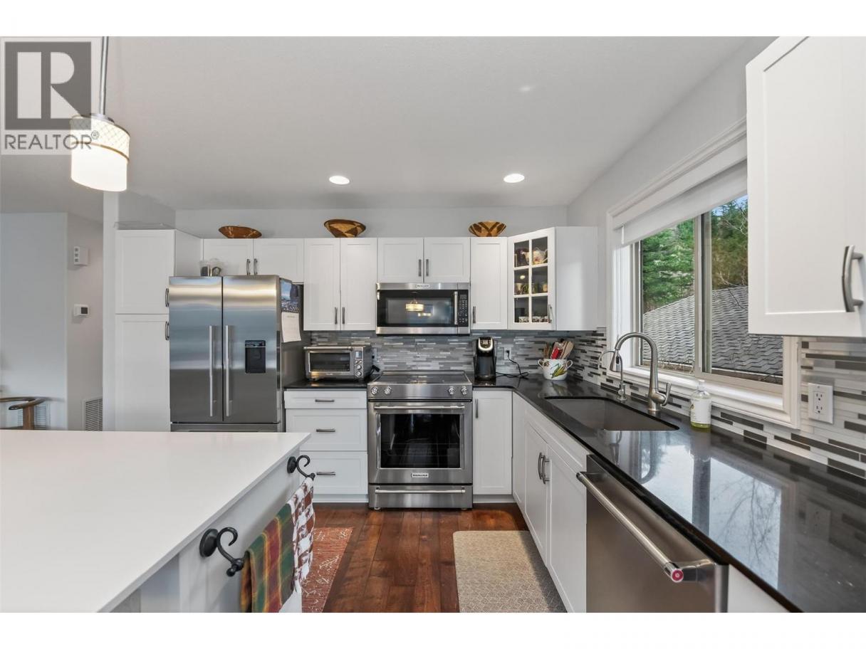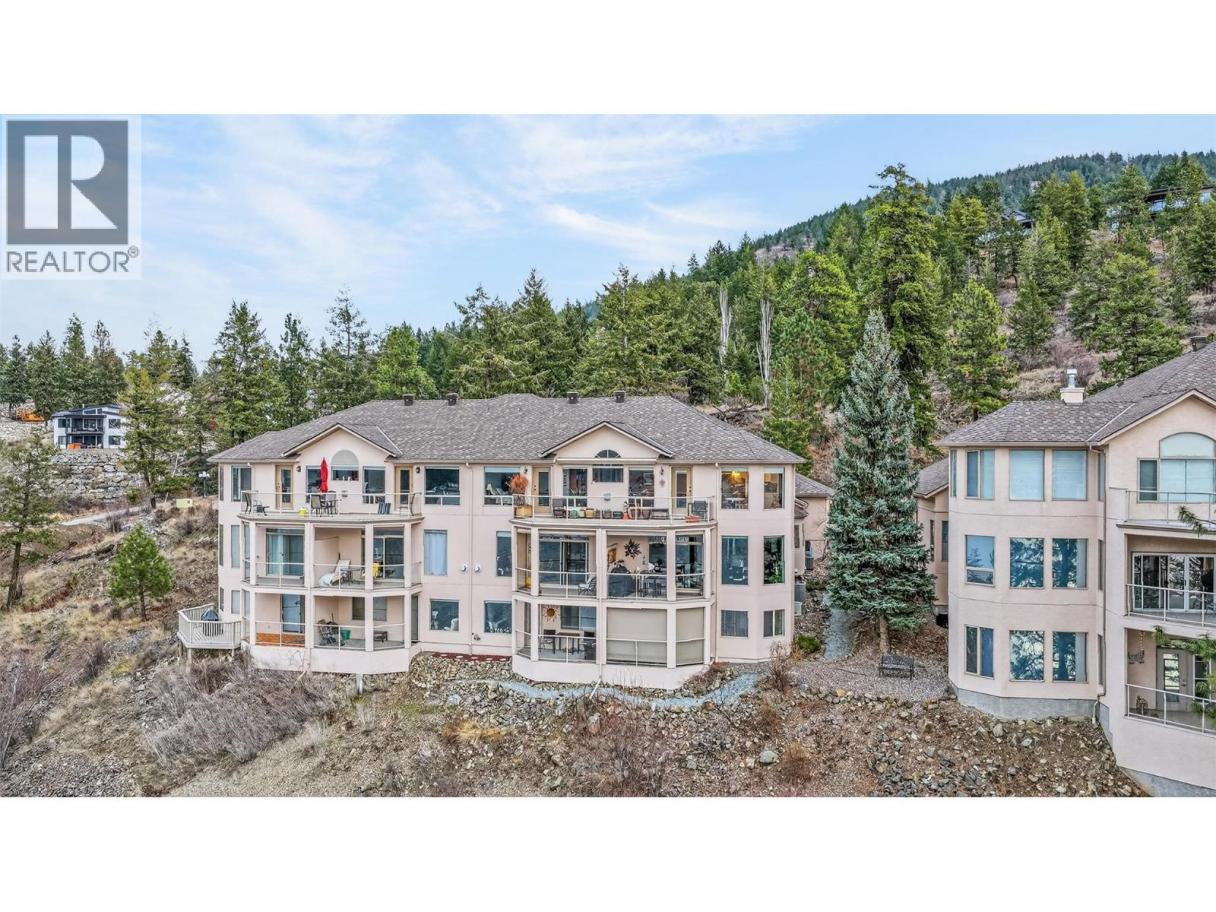 Lock-and-leave convenience, year-round living or a recreational retreat - this tasteful townhouse at Peregrine Point Estates truly has it all. With sweeping views of Okanagan Lake - among the best in the complex - this spacious home invites you to relax, reconnect with nature, and enjoy the peaceful setting this community is known for. The primary bedroom captures the morning sun shimmering across the lake, with a beautifully renovated ensuite featuring a tiled walk-in shower & custom-built closet just steps away. A bright den offers flexible space for a home office or studio. Step into the vaulted living, kitchen & dining area where expansive windows frame the view - perfect for entertaining or cozy evenings by the gas fireplace. A generous island makes hosting effortless, and the updated kitchen blends practical function with modern finishes. The second bedroom is spacious and welcoming, with the main bath nearby for guest comfort. Designed for easy one-level living, this home features hardwood floors, an open layout, and a deck with glass railings - ideal for soaking in the view. Many practical updates have been completed, offering peace of mind. Enjoy a modest strata fee and a cooperative community that manages the property with care. Residents maintain a private beach with water access, dock, and mooring opportunities on Okanagan Lake. On-site RV & boat parking is available for a monthly fee. This exceptional townhouse awaits its next happy owner! (id:6769)