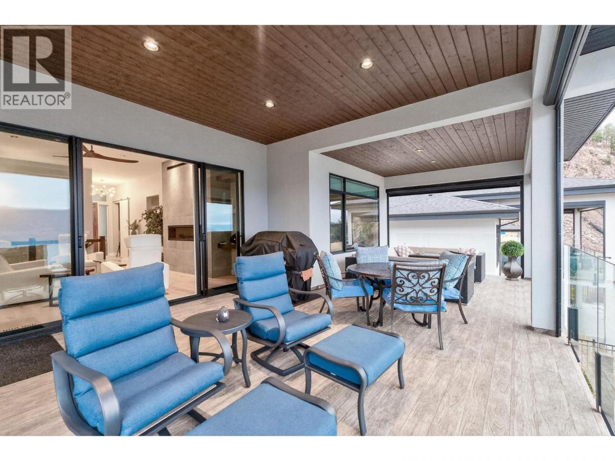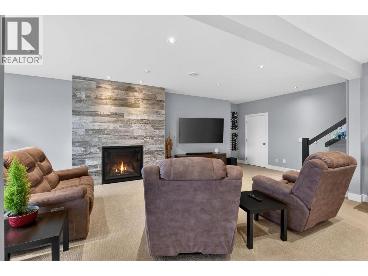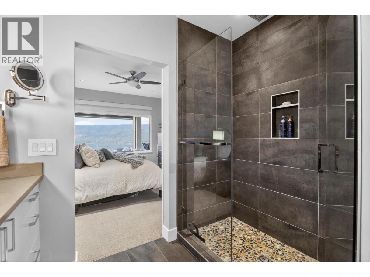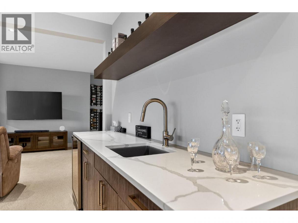 One of the best views in Lakestone! Built by Destination Custom Homes, one of the community’s preferred builders, this immaculate walk-out rancher offers breathtaking lake views and the perfect setting to enjoy the in-ground pool and Okanagan lifestyle. Featuring modern minimalist design, oversized windows, abundant natural light, and an open layout ideal for entertaining. The 500 sq ft deck off the living room with French sliding doors and power shades extends indoor/outdoor living. The kitchen includes quartz countertops, full-size fridge/freezer, gas range, and walk-in pantry. The primary suite offers a walk-in closet and 4-piece ensuite with heated floors. A spacious office and powder room complete the main level. The walk-out lower level features a wet bar, fireplace, two guest bedrooms, and exterior access to the guest bathroom — perfect after pool or hot tub use. The backyard is an entertainer’s dream with pool, hot tub, and unique fluorescent rock pathway. Efficient home with 32 solar panels, dual-zone HVAC, and EV-ready setup. Lakestone offers 28 km of walking trails, multi-sport courts, The Lake Club, and Centre Club, plus easy access to shopping, schools, wineries, restaurants, golf, skiing, Kelowna International Airport, and downtown Kelowna (25 min). Don’t miss this rare opportunity! *Open House Saturday February 21st from 12-2* (id:6769)