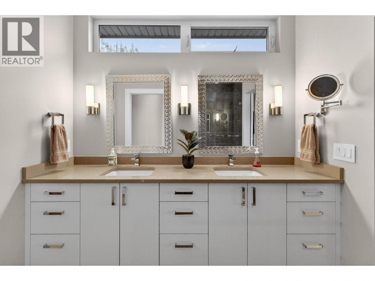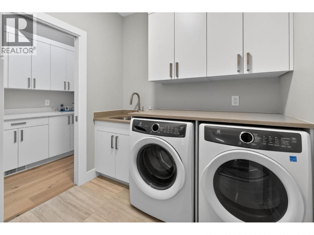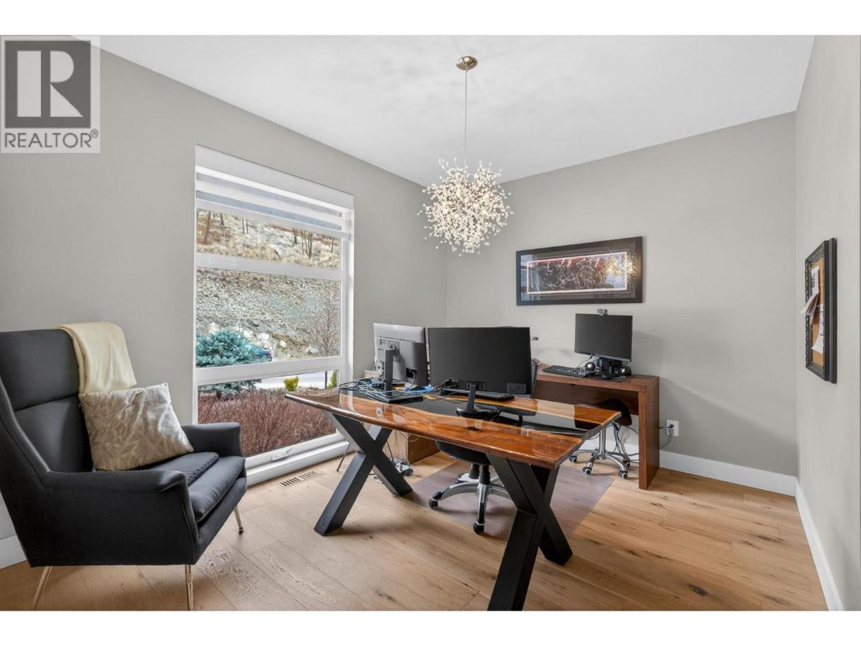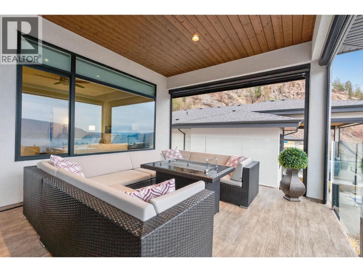 One of the best views in Lakestone! Built by Destination Custom Homes, one of the community’s preferred builders, this immaculate walk-out rancher offers breathtaking lake views and the perfect setting to enjoy the in-ground pool and Okanagan lifestyle. Featuring modern minimalist design, oversized windows, abundant natural light, and an open layout ideal for entertaining. The 500 sq ft deck off the living room with French sliding doors and power shades extends indoor/outdoor living. The kitchen includes quartz countertops, full-size fridge/freezer, gas range, and walk-in pantry. The primary suite offers a walk-in closet and 4-piece ensuite with heated floors. A spacious office and powder room complete the main level. The walk-out lower level features a wet bar, fireplace, two guest bedrooms, and exterior access to the guest bathroom — perfect after pool or hot tub use. The backyard is an entertainer’s dream with pool, hot tub, and unique fluorescent rock pathway. Efficient home with 32 solar panels, dual-zone HVAC, and EV-ready setup. Lakestone offers 28 km of walking trails, multi-sport courts, The Lake Club, and Centre Club, plus easy access to shopping, schools, wineries, restaurants, golf, skiing, Kelowna International Airport, and downtown Kelowna (25 min). Don’t miss this rare opportunity! *Open House Saturday February 21st from 12-2* (id:6769)