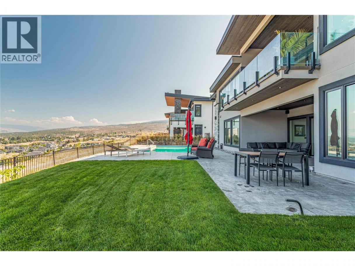 Welcome to this stunning Modern Mountainside walk out rancher that perfectly blends luxury and comfort. Perched above the valley and lake, the home captures breathtaking views through oversized windows and doors, filling every space with natural light. As you walk through the front door you are immediately drawn to the expansive view with 13 foot ceilings and the over sized covered front balcony, perfect for taking in the entire Lake and Valley Views. The chef’s kitchen boasts top-of-the-line appliances, while soaring ceilings create an airy elegance throughout the main level. The primary suite is a private retreat with a full spa-like ensuite, complete with a soaker tub, steam shower, and direct access to the deck. The lower level has 10 foot ceilings and is designed for entertaining with three large bedrooms, one which is also set up as a theatre room, two full baths (including pool access), wet bar, fireplace, Built In Sound System through out the home and a spacious games and living area. Expansive covered outdoor spaces and a 16x32 ft saltwater pool with auto-cover invite year-round enjoyment. Pre-wired for Hot tub. A 3-bay garage adds functionality, while the location offers unmatched convenience close to schools, trails, and shopping. This home is a rare opportunity to experience elevated living with comfort, privacy, and endless views. Measurements are approximate. (id:6769)