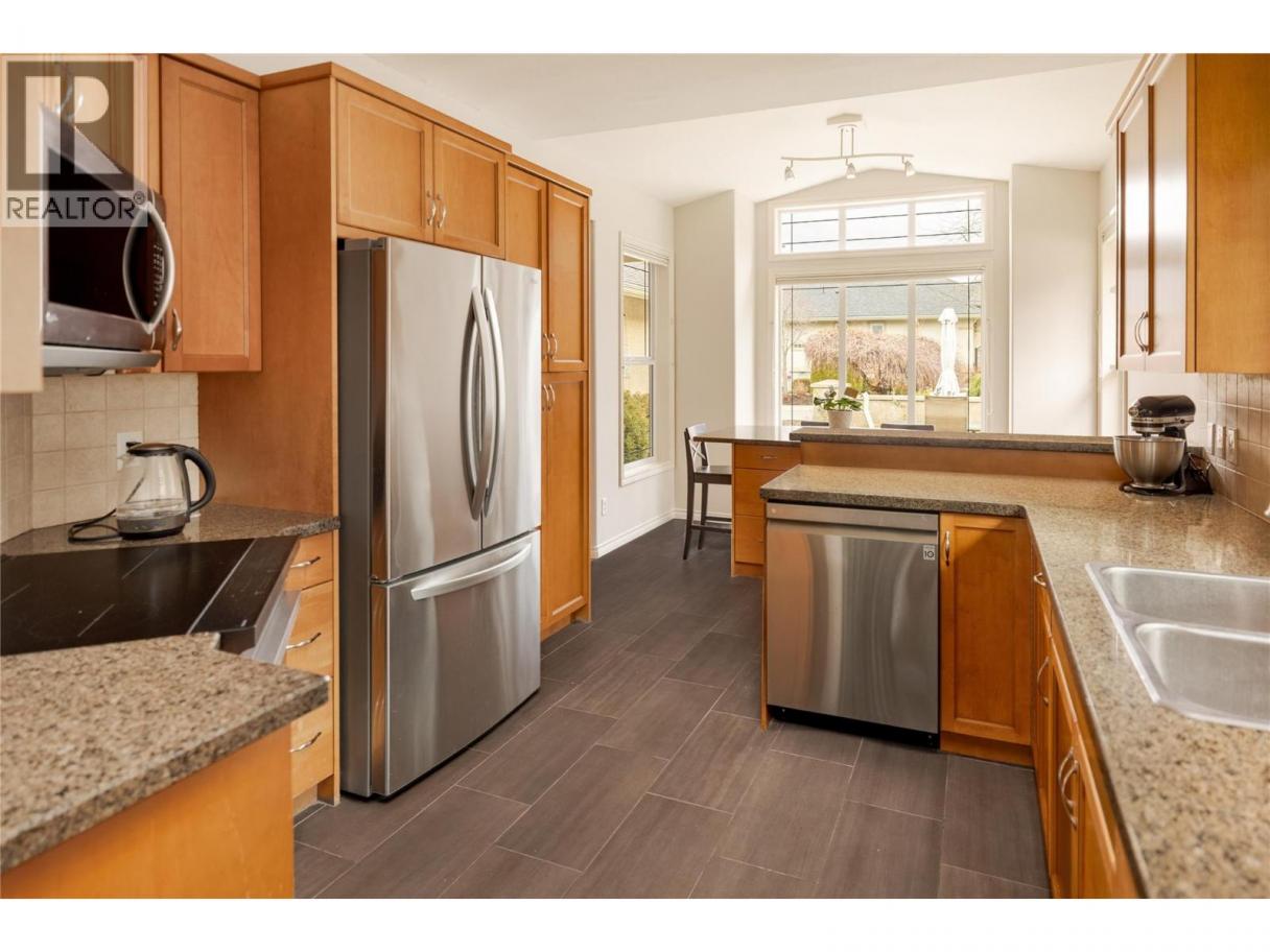 This move in ready 5-bedroom, 3-bathroom walk-out rancher sits on a private corner lot in sought-after Gallagher’s Canyon, backing onto mature trees for exceptional privacy and a peaceful setting. Major updates are already done, including the roof, furnace, air conditioning, and hot water tank, offering true peace of mind. The bright main level is filled with natural light and features hardwood flooring, a gas fireplace, and oversized sliding doors with transom windows that open to the spacious upper deck. The kitchen is designed for everyday living and entertaining with granite countertops, newer tile flooring, an eat-up bar, and a separate island with seating. The primary bedroom is conveniently located on the main floor with a walk-in closet and a well-appointed ensuite featuring dual sinks, a soaker tub, and separate shower. A second bedroom (currently used as an office), full bathroom, laundry, and access to the double garage complete this level. Downstairs offers three additional bedrooms, a full bathroom with cheater ensuite access, and a large rec room with walk-out access to the covered patio and fenced yard. Enjoy Gallagher’s Canyon’s renowned amenities including golf, tennis, fitness centre, indoor pool, clubhouse, and extensive walking trails, all just minutes from shopping and city conveniences. A well-maintained home in an exceptional community. (id:6769)
