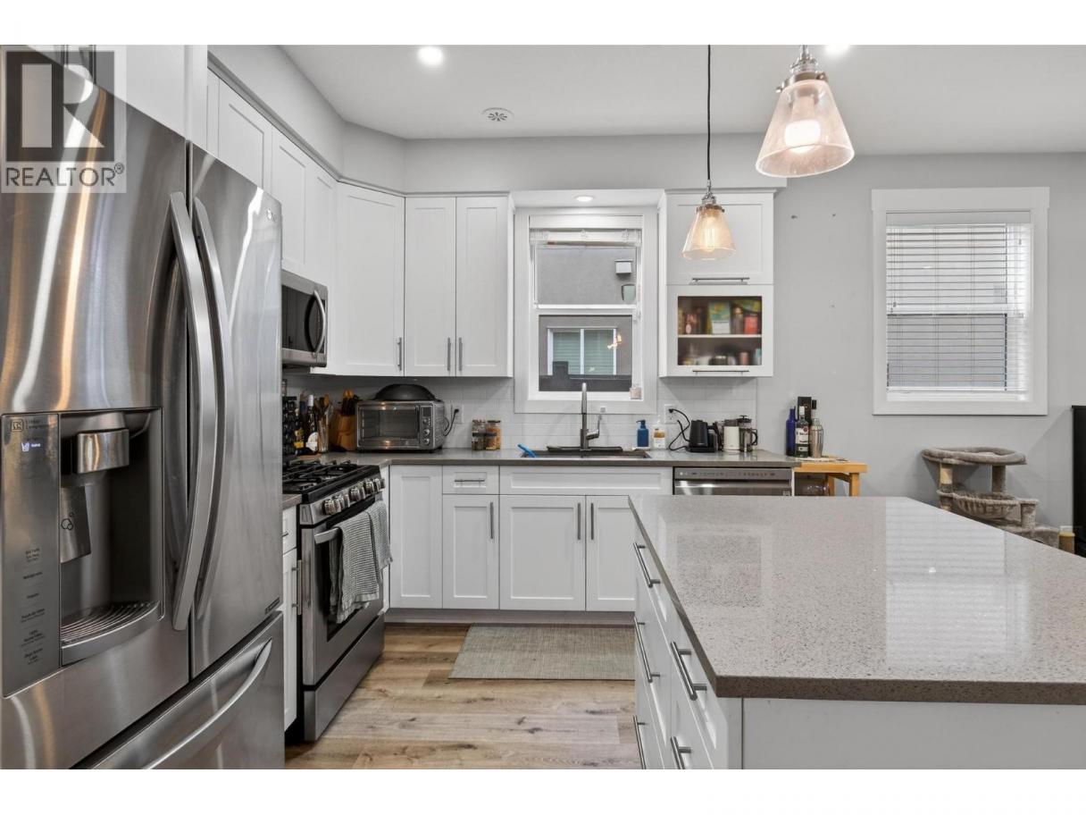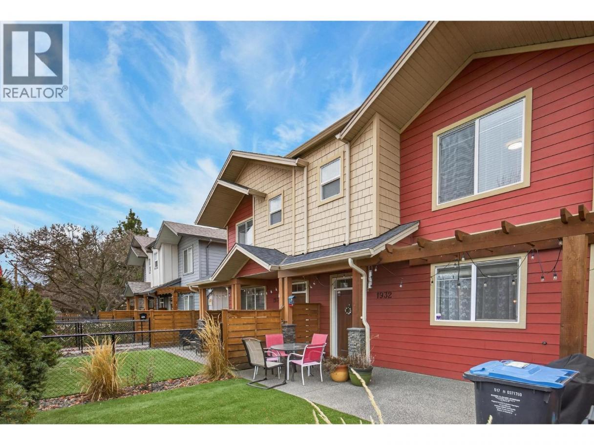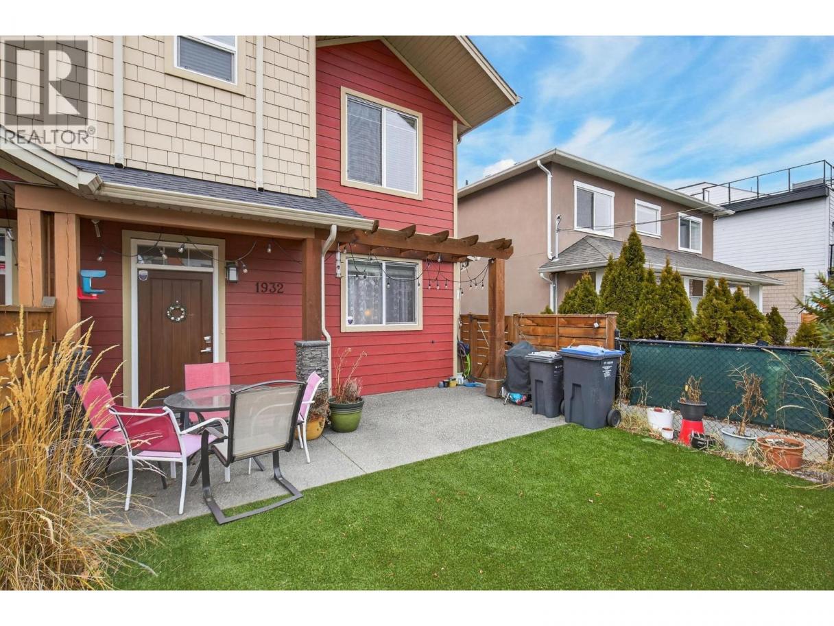Discover refined urban living in this front unit in the heart of Kelowna South, one of Kelowna’s most desirable neighbourhoods. Built by Maraine Construction, this thoughtfully designed home offers quality craftsmanship, NO STRATA FEES, and an unbeatable central location steps to bike paths and daily amenities. The bright, modern kitchen features quartz countertops, stainless steel appliances, and ample cabinetry, all set over durable vinyl plank flooring. It is thoughtfully roughed-in for either a gas or electric range, offering flexibility for your cooking preference. The inviting living room is anchored by a cozy gas fireplace—perfect for relaxing evenings at home. This well-appointed layout offers 2 bedrooms and 2.5 bathrooms, including a convenient half bath on the main floor and two full bathrooms upstairs. The spacious primary bedroom includes a private ensuite and a large walk-in closet. Enjoy year-round comfort with natural gas heating, central air conditioning, and hot water on demand. A security alarm system adds peace of mind. Outdoors, enjoy a fully fenced yard with low-maintenance SynLawn and a natural gas BBQ outlet—ideal for entertaining. A detached garage provides secure parking plus extra storage. Located near transit, schools, and everyday amenities, and just minutes to Pandosy Village or downtown via the Ethel biking corridor, this home delivers a truly walkable lifestyle. (id:6769)