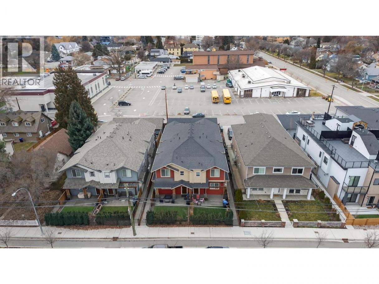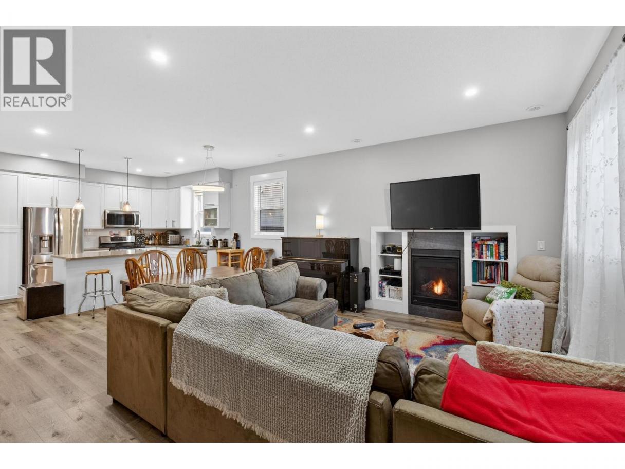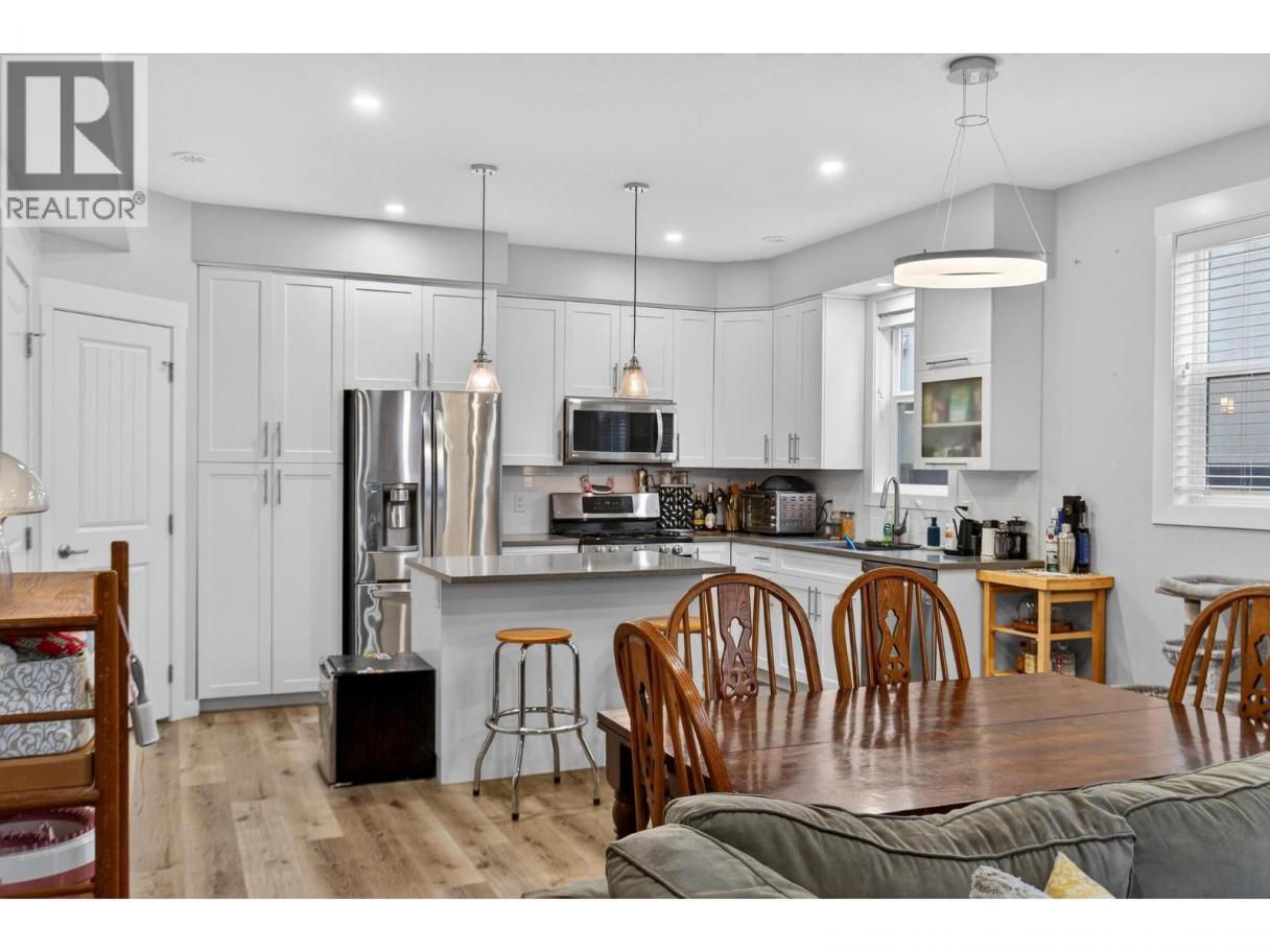 Discover refined urban living in this front unit in the heart of Kelowna South, one of Kelowna’s most desirable neighbourhoods. Built by Maraine Construction, this thoughtfully designed home offers quality craftsmanship, NO STRATA FEES, and an unbeatable central location steps to bike paths and daily amenities. The bright, modern kitchen features quartz countertops, stainless steel appliances, and ample cabinetry, all set over durable vinyl plank flooring. It is thoughtfully roughed-in for either a gas or electric range, offering flexibility for your cooking preference. The inviting living room is anchored by a cozy gas fireplace—perfect for relaxing evenings at home. This well-appointed layout offers 2 bedrooms and 2.5 bathrooms, including a convenient half bath on the main floor and two full bathrooms upstairs. The spacious primary bedroom includes a private ensuite and a large walk-in closet. Enjoy year-round comfort with natural gas heating, central air conditioning, and hot water on demand. A security alarm system adds peace of mind. Outdoors, enjoy a fully fenced yard with low-maintenance SynLawn and a natural gas BBQ outlet—ideal for entertaining. A detached garage provides secure parking plus extra storage. Located near transit, schools, and everyday amenities, and just minutes to Pandosy Village or downtown via the Ethel biking corridor, this home delivers a truly walkable lifestyle. (id:6769)