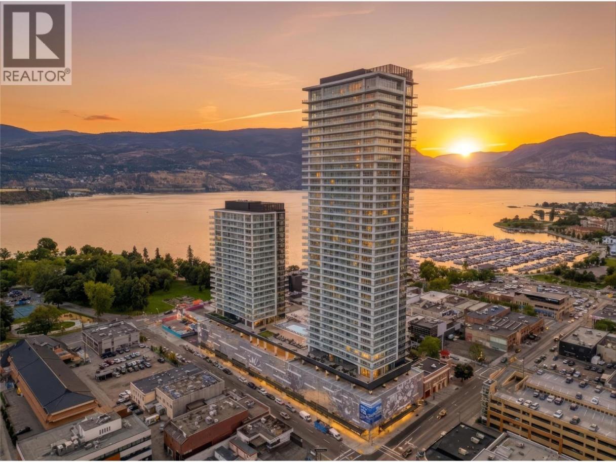 An unbeatable opportunity to have it all — a stunning building in a prime downtown location, generous living space, sought-after marina & lake views, world-class amenities complete with a beautiful deck made for perfect sun-soaked Okanagan soirees. GST paid & 1 parking stall, this impressive 2bed 2bath corner residence is a choice private unit on the 7th floor. #702 showcases panoramic views of the yacht club with Knox Mountain rising beautifully against the city skyline. With its northeast orientation, this home offers the perfect temperature for comfortable year-round living. Every inch of this home is curated with superior-quality finishes that exude timeless elegance from integrated & stainless steel Fulgor Milano appliances to marbled porcelain tile, premium vinyl plank flooring & bespoke design details throughout. Impress your guests with exclusive access to 42,000 sqft of world-class amenities at The Deck, featuring 23 thoughtfully curated spaces to enjoy, entertain & unwind —including a fitness centre, art studio, kids’ playroom, sauna, steam room, golf simulator, yoga studio, putting green, games room, movie theatre, coworking space, and business centre. Step outside to the expansive terrace with fire pits, BBQ stations, outdoor dining, pool, hot tubs, dog run & dog wash. Plus, enjoy private lounge spaces, a party kitchen, and elegant changing facilities. Whether you’re searching for a full-time residence or the ultimate Okanagan retreat, this home checks every box. (id:6769)