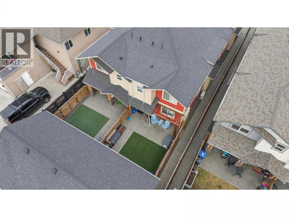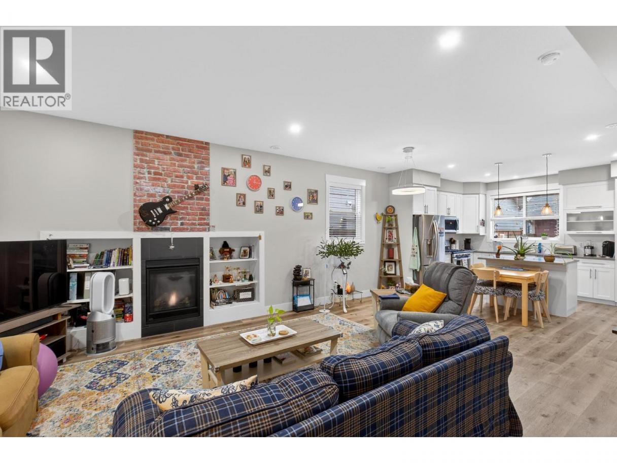Welcome to this beautifully appointed back-unit home in the heart of Kelowna South—where lifestyle and location come together. Just steps from the Ethel biking corridor, you can bike or stroll with ease to vibrant Pandosy Village or downtown Kelowna. This modern 3-bedroom, 2.5-bath home offers an open-concept main floor designed for comfortable living and entertaining. Featuring durable vinyl plank flooring throughout the main level, the spacious kitchen showcases stainless steel appliances, quartz countertops, and is roughed-in for either a gas or electric range—offering flexibility for your cooking preference. The kitchen flows seamlessly into the living room with a cozy gas fireplace. Enjoy year-round comfort with natural gas heating, central air, and hot water on demand. Upstairs you’ll find all three bedrooms, including a generous primary suite complete with a large walk-in closet and private ensuite. Two additional bedrooms and a full bathroom provide flexibility for family, guests, or a home office. Step outside to a fully fenced yard with low-maintenance SynLawn and a convenient gas BBQ outlet—perfect for summer evenings. The detached garage includes additional storage above, ideal for bikes and seasonal gear. No strata fees and pets allowed—offering freedom and flexibility without compromise. A rare opportunity to own a stylish, low-maintenance home in one of Kelowna South’s most desirable neighbourhoods. (id:6769)