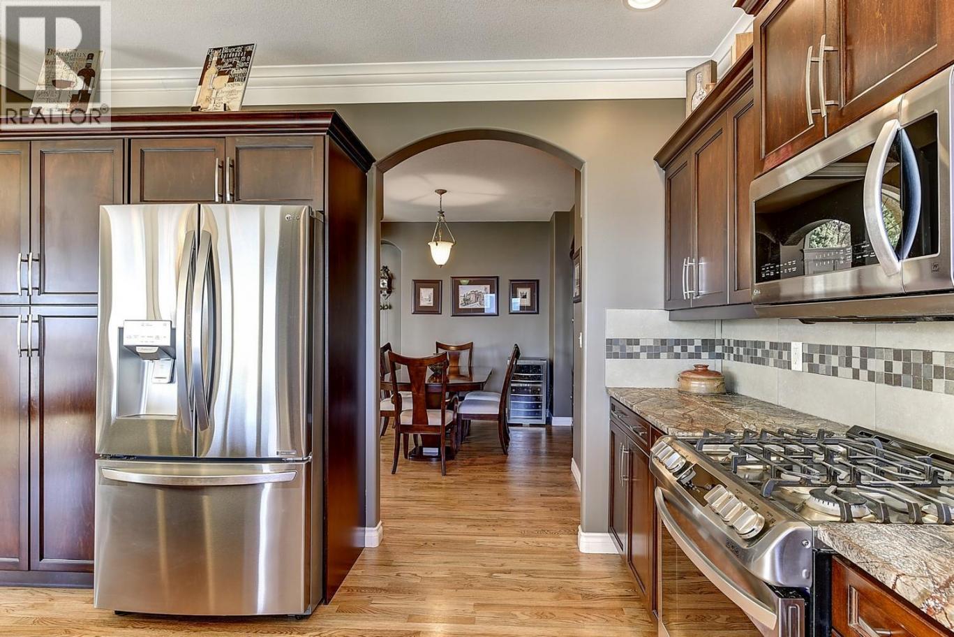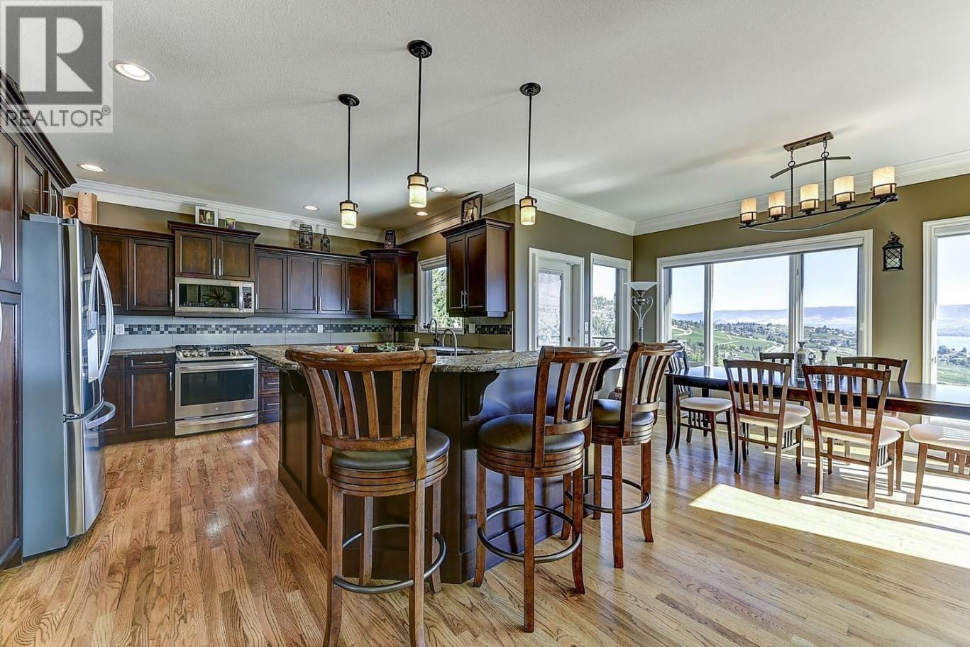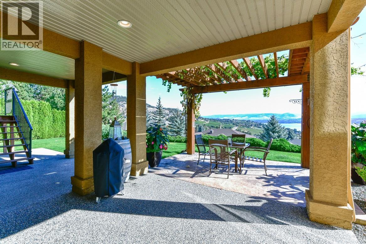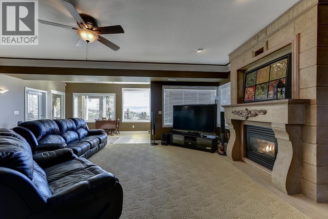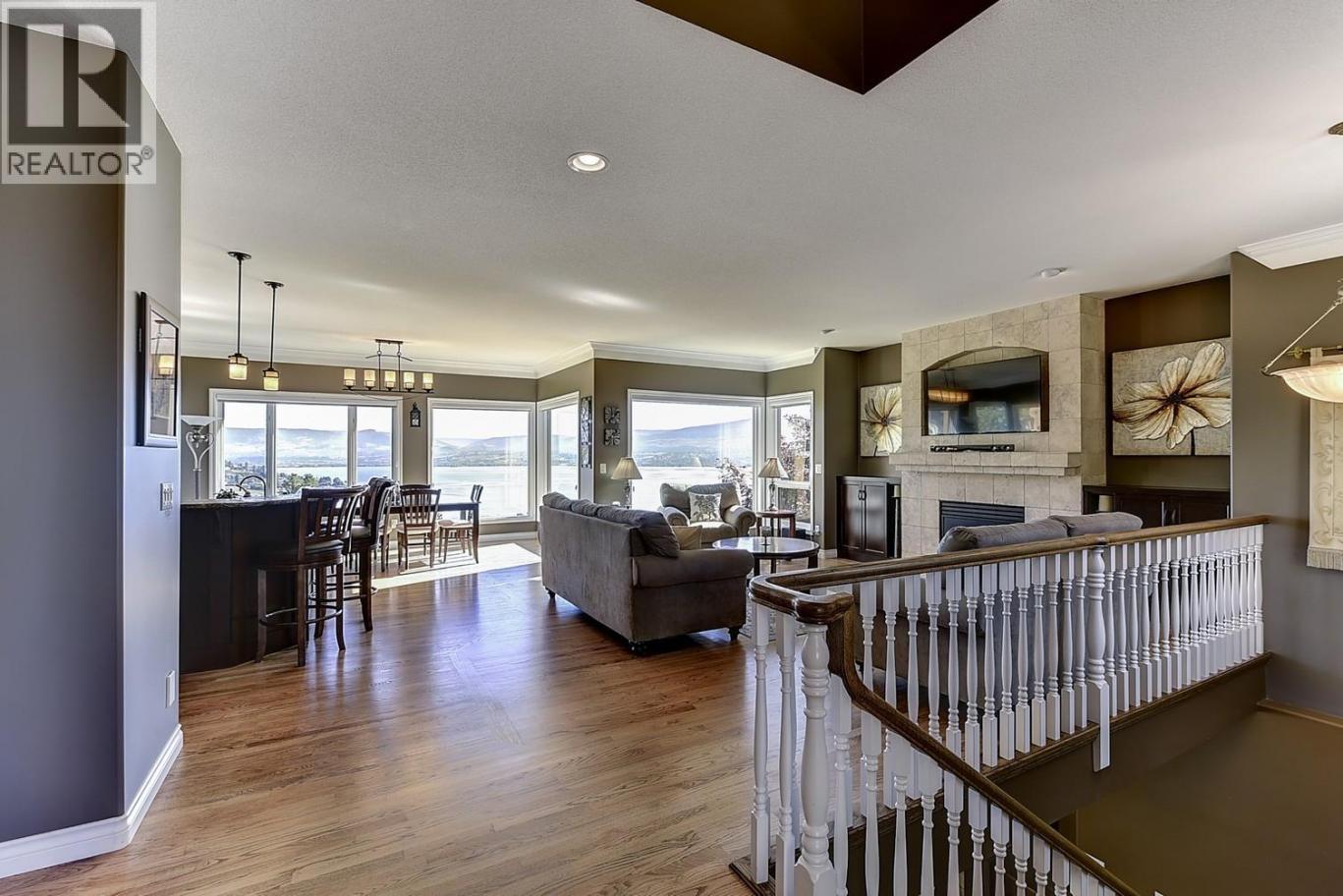Nestled on a quiet cul-de-sac in the highly sought-after community of Lakeview Heights, this home offers stunning, unobstructed views of Okanagan Lake, rolling vineyards, and the valley beyond. Designed for family living and entertaining, it blends comfort, space, and everyday luxury with front-row access to Okanagan sunsets. The main level features warm hardwood floors and expansive windows that showcase the scenery from nearly every angle. The well-appointed kitchen boasts leathered granite countertops, maple cabinetry, and a generous L-shaped island with seating for six, flowing seamlessly into the breakfast nook and living area. A cozy tile-surround gas fireplace anchors the space, while sliding doors open to a partially covered deck with glass railings, perfect for morning coffee or evening sunsets. The main-floor primary suite is a serene retreat with deck access, a walk-in closet, and a five-piece ensuite. A jetted soaker tub sits in a bay window overlooking the lake, complemented by dual vanities and a tiled walk-in shower. A second bedroom and full bath complete this level. Downstairs, two spacious bedrooms, a three-piece bath, and a large recreation room with a fireplace open to a covered patio and landscaped backyard featuring a pergola-covered hot tub, exposed aggregate patio, and room for a future pool. With a double garage, extra parking, and easy access to wineries, golf, beaches, hiking, and shopping, this home offers relaxed, inviting Okanagan living. (id:6769)