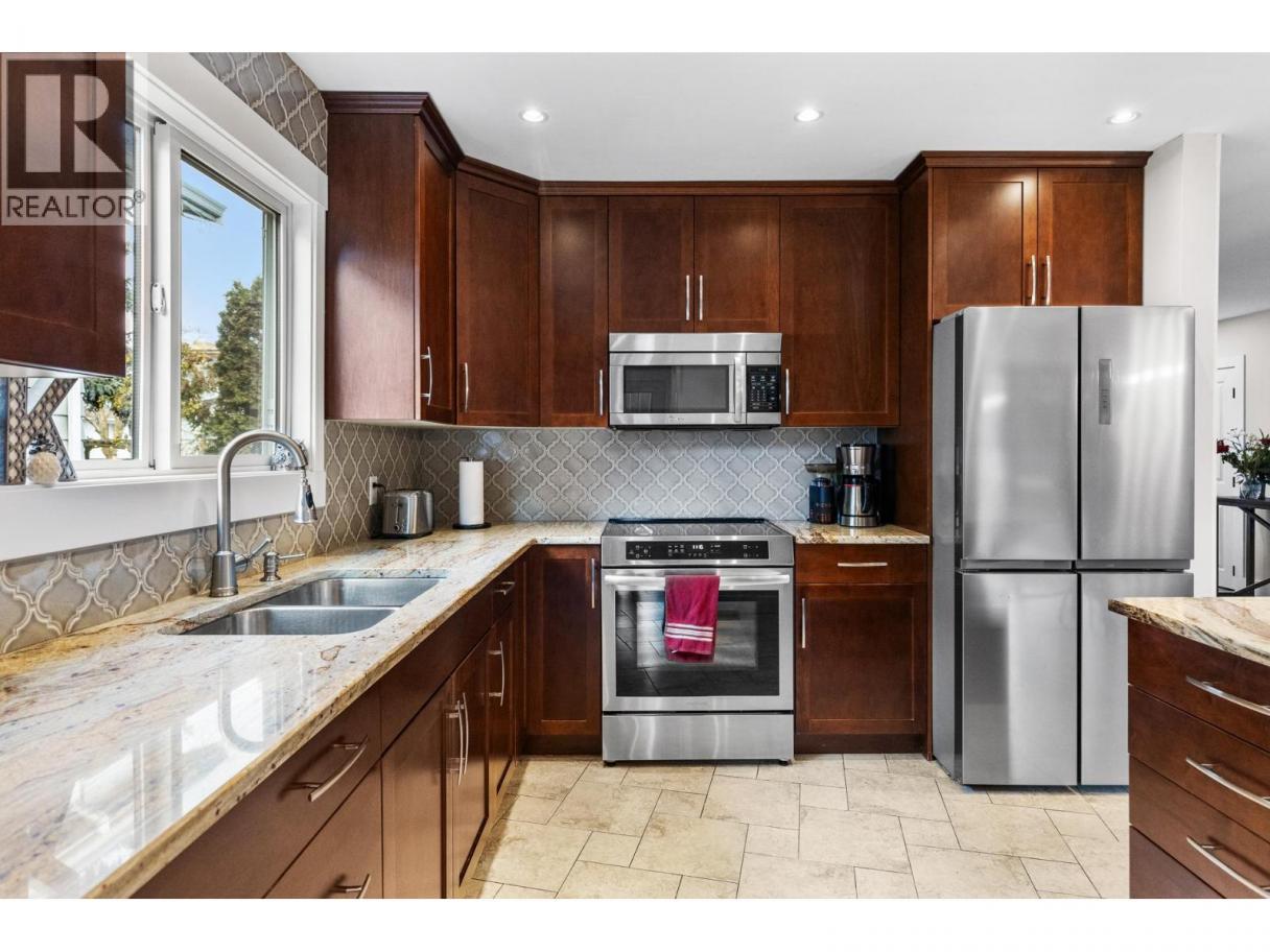 Location Plus! Walk to KGH, Strathcona Beach, and Pandosy Village. Thoughtfully updated in 2019 with front and back covered decks featuring fir T&G soffits, added an ensuite with heated floors, walk-in closet, and folding glass doors opening the dining area to the deck. Expanded three-bay garage (approx. 900 sq. ft.) with 200-amp service and EV plug. Roof and siding updated in 2019. This compact but impressively equipped 2-bed/2-bath home is loaded with extras and offers excellent flexibility, plus MF4 zoning for strong future development potential. Ideal for an owner needing shop or storage space with rental income options. Distances: 300 m to KGH, 750 m to Strathcona Beach, 1 km to Pandosy Village. (id:6769)