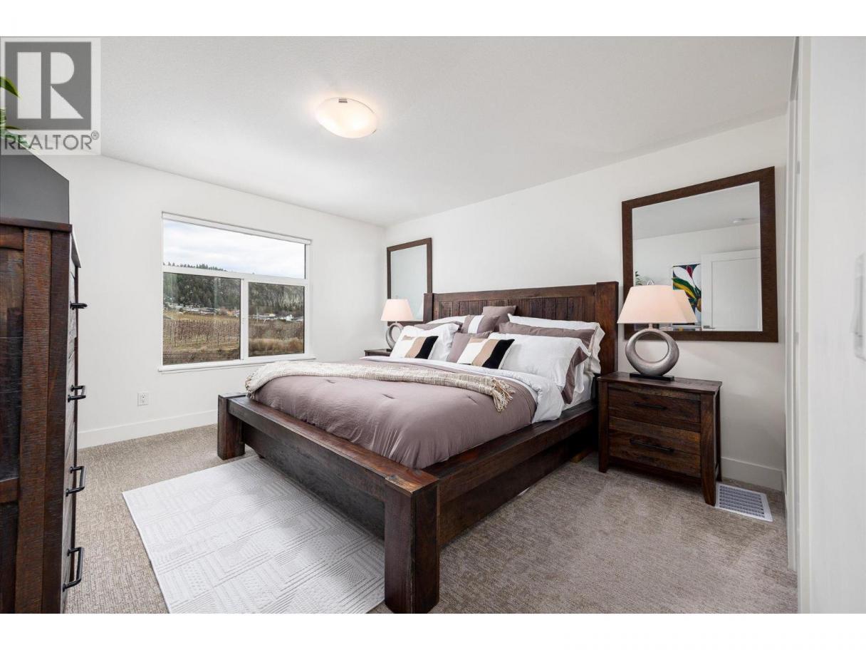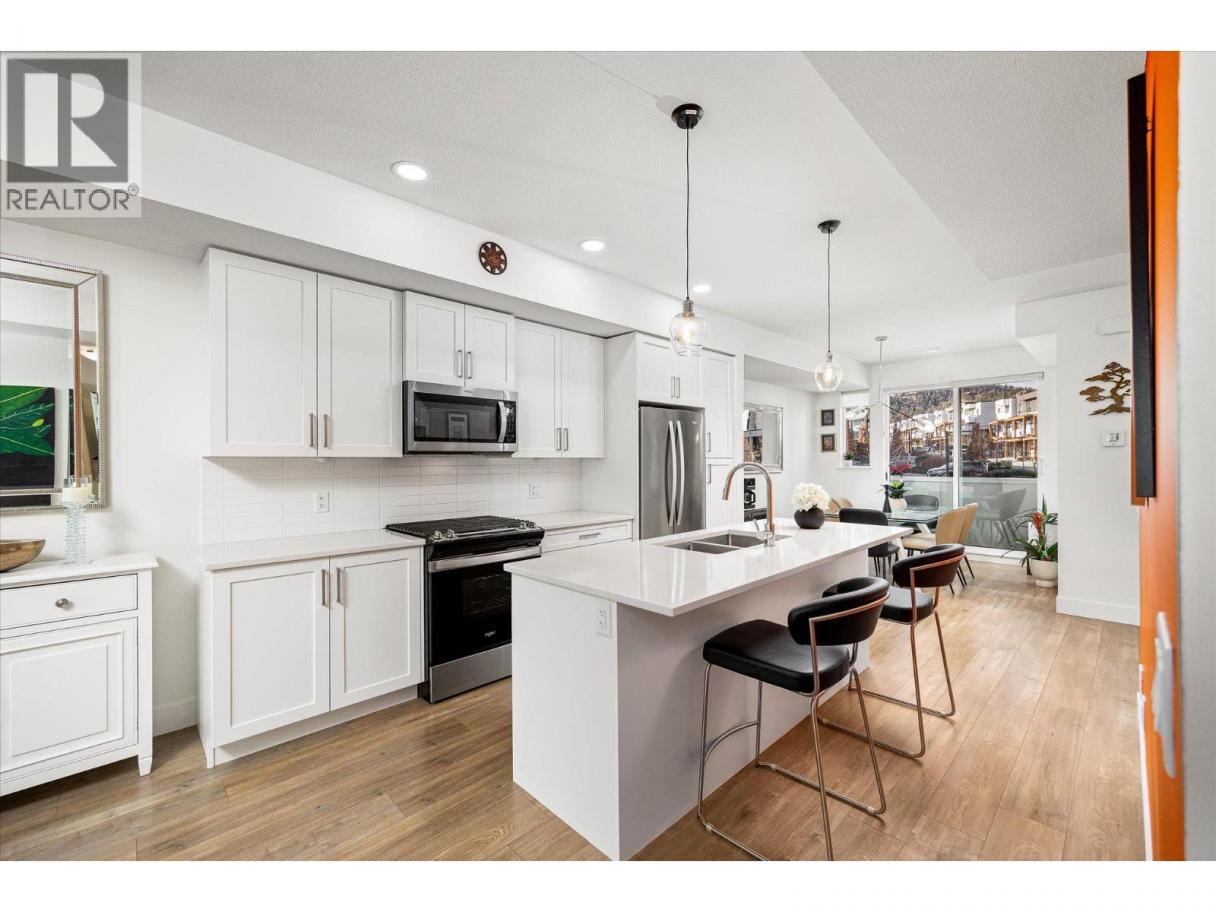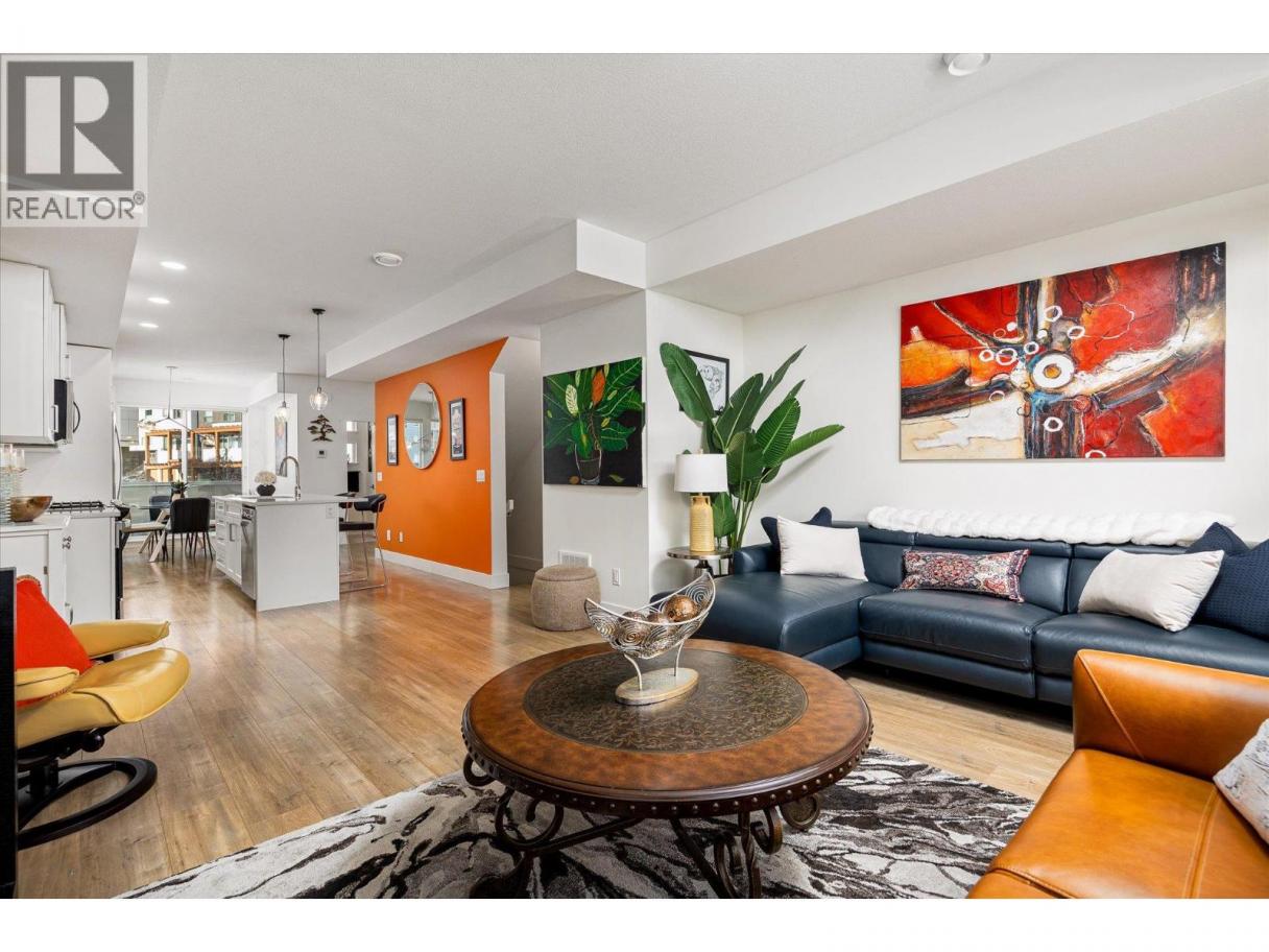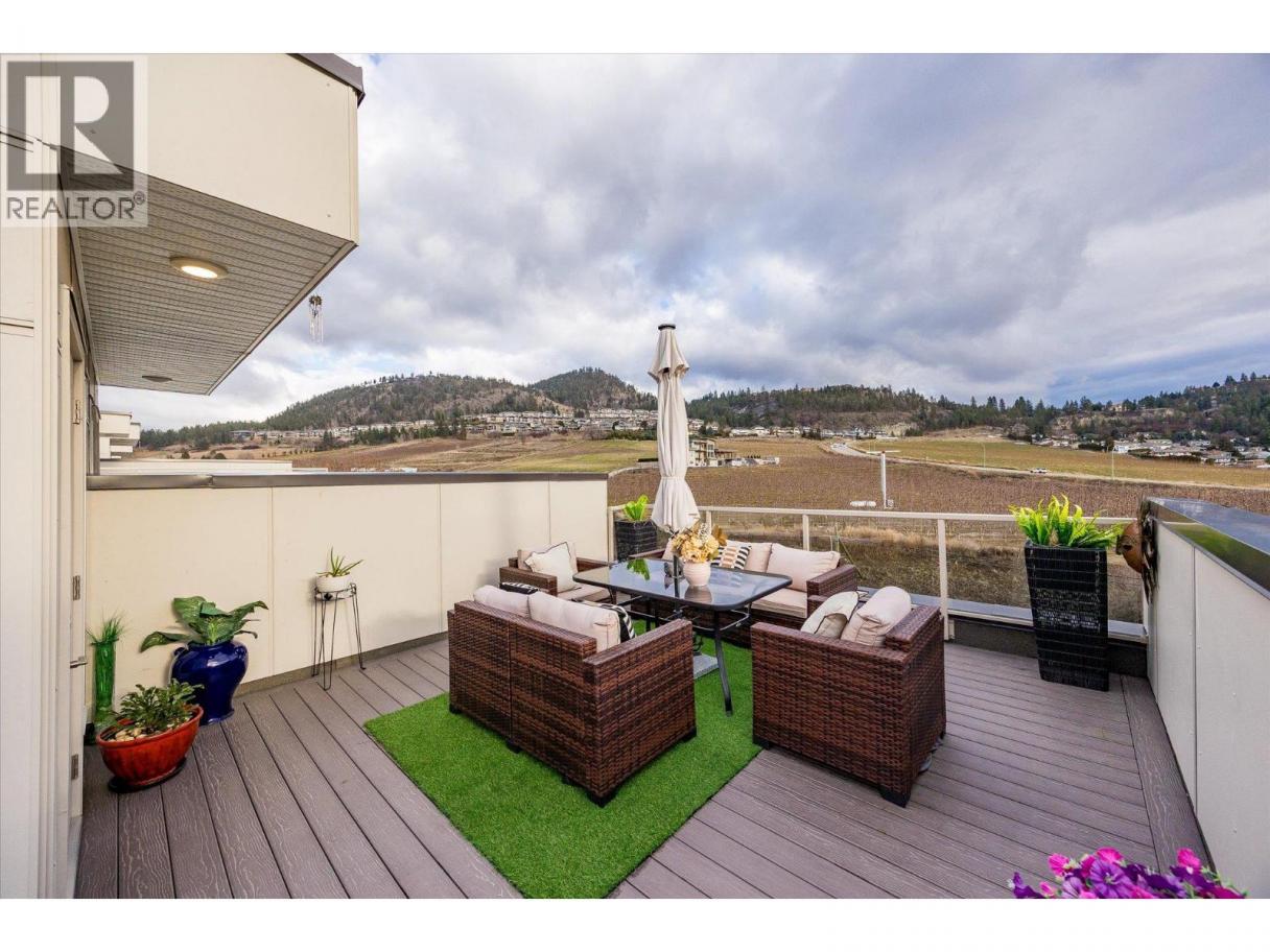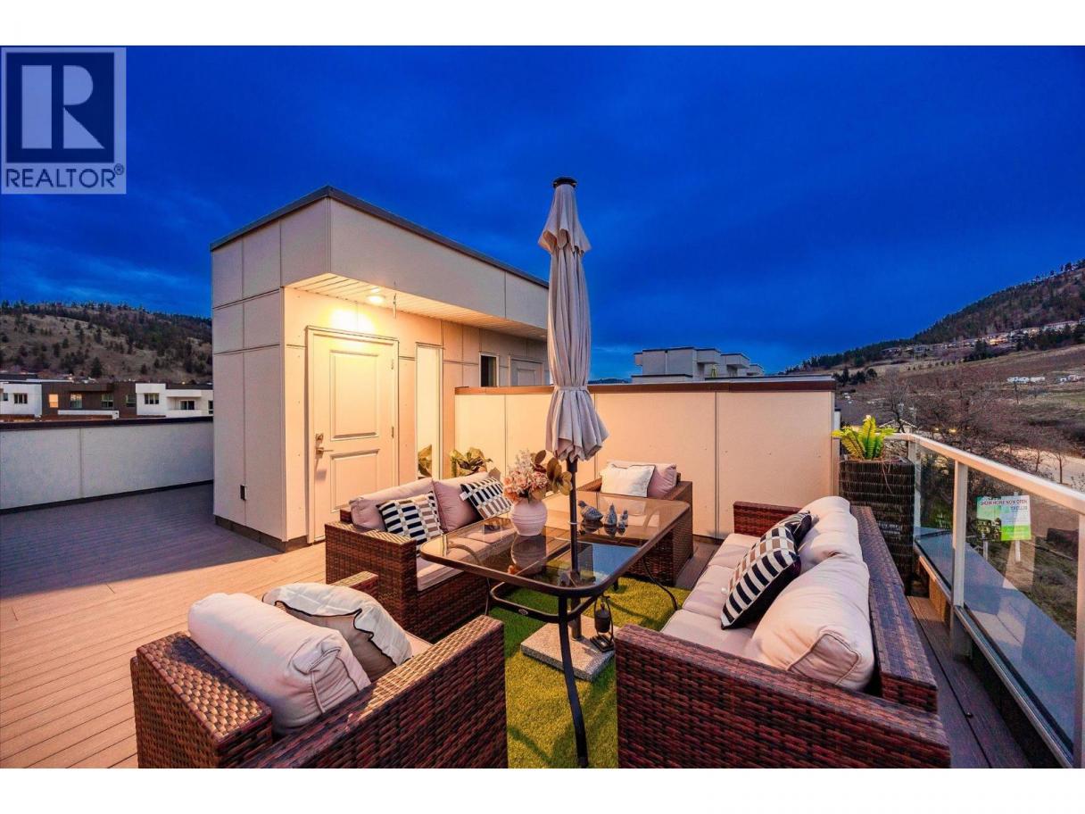 Welcome to Trellis! Located in one of Kelowna’s most sought-after family neighbourhoods, Trellis offers rich, modern design and exceptional functionality. Unit 48 enjoys a premium position on the quieter Valley Road side of the complex, providing added privacy and tranquility, and an acoustically engineered party wall ensures added peace and quiet between units. The walkout entry level offers a 40-foot tandem garage with storage options, ideal for vehicles, bikes, and all your Okanagan lifestyle gear. The main living level showcases a beautifully appointed kitchen flowing seamlessly into the dining and living areas, with a convenient powder room for guests, perfect for entertaining or everyday comfort. Thoughtfully finished throughout, this home features a stainless steel Whirlpool appliance package with gas stove, quartz countertops, ceramic tile backsplash, expansive windows, and 9-foot ceilings that create a bright, airy atmosphere. Upstairs, the second level hosts the primary suite complete with walk-in closet and a stunning ensuite. Two additional bedrooms, a full bathroom, and laundry are also located on this level, offering ideal family functionality. The top floor is the showstopper, with a private rooftop patio with BBQ area and sweeping valley views, creating the perfect outdoor retreat. Glenmore continues to be highly desirable thanks to its close proximity to downtown Kelowna, grocery shopping, restaurants, hiking trails, and multiple schools. This townhome offers pristine quality, thoughtful design, and exceptional value in an unbeatable location. Pet-friendly (with restrictions). (id:6769)