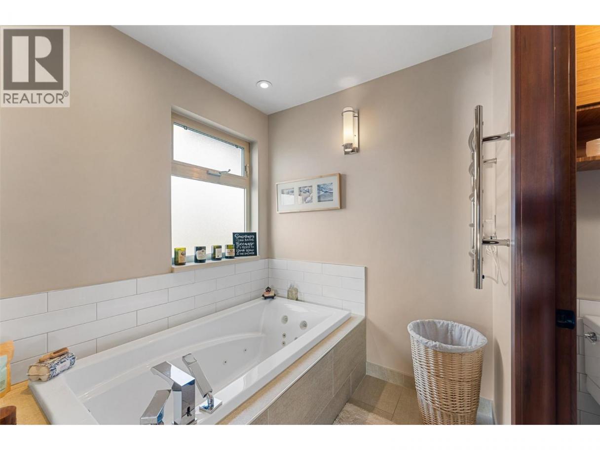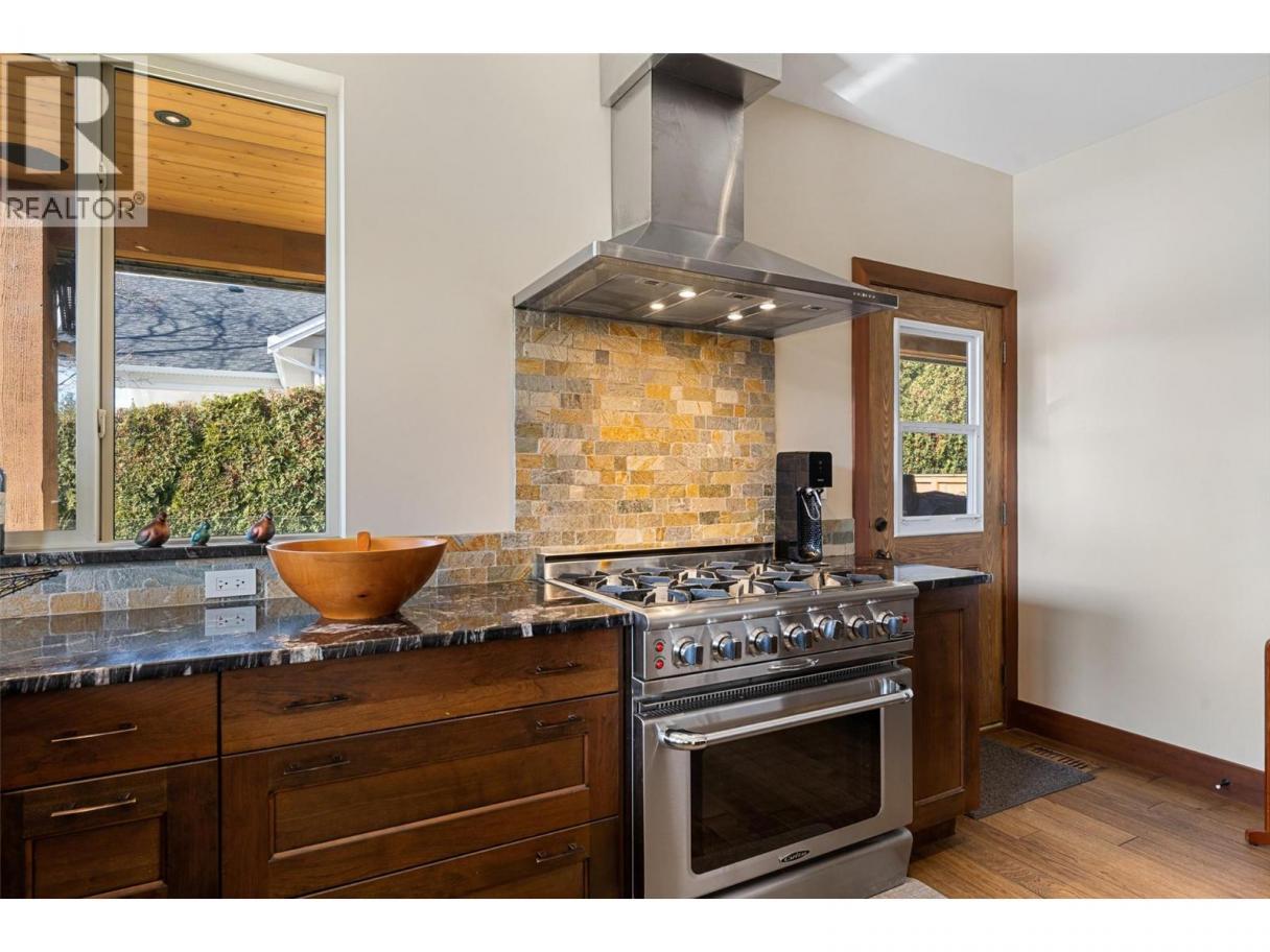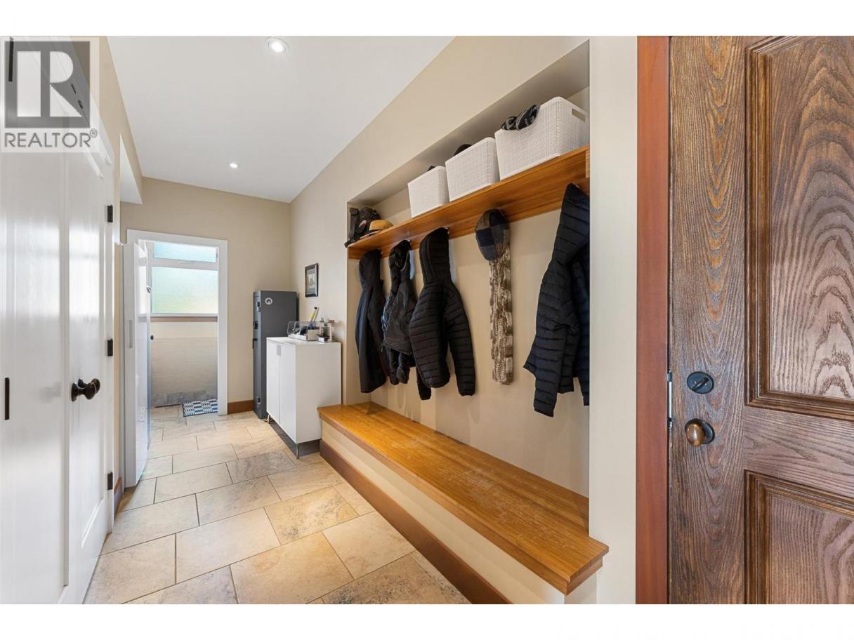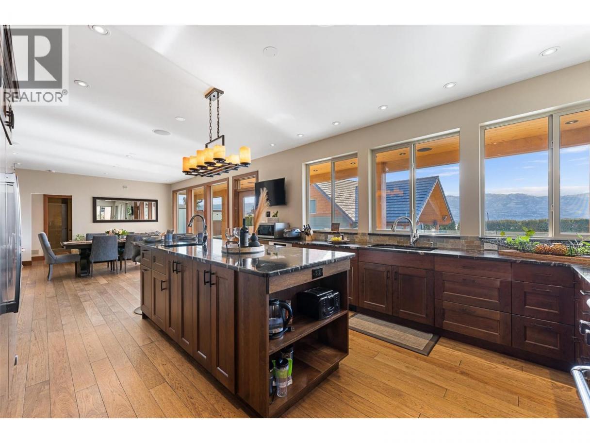 Set on a private 0.36-acre lot in the heart of West Kelowna’s wine country, this West Coast Craftsman offers an exceptional blend of luxury and versatility. Framed by stone, cedar and fibre cement, the home showcases strong architectural lines, soaring ceilings and quality finishes, hickory plank hardwood, cherry and bamboo cabinetry, fir doors and premium quartz and granite throughout. Designed for gathering, the main level opens to a chef’s kitchen with titanium black granite, Culinarian 6-burner gas range, Miele steam oven and expansive island, all flowing seamlessly to dining and living spaces with in-ceiling audio and Lutron lighting. A covered patio off the dining room extends to an spacious covered deck with a hot tub. The backyard features a saltwater sports pool and multiple lounge areas surrounded by stamped concrete, cedar privacy hedging and wired, covered patios with wood inlay ceilings, speakers and gas hookups, crafted for effortless entertaining. Upstairs, the primary suite is a sanctuary with fireplace, private covered deck and spa-inspired steam ensuite. Three additional beds complete the upper level. A legal suite above the garage offers income or guest flexibility, while the detached pool house, with bed, bath, kitchenette and separate garage/workshop, adds rare multigenerational potential. With RV parking, wine cellar, climate control systems and walking access to Boucherie Road’s trail, wineries and beaches, this is refined Okanagan living. (id:6769)