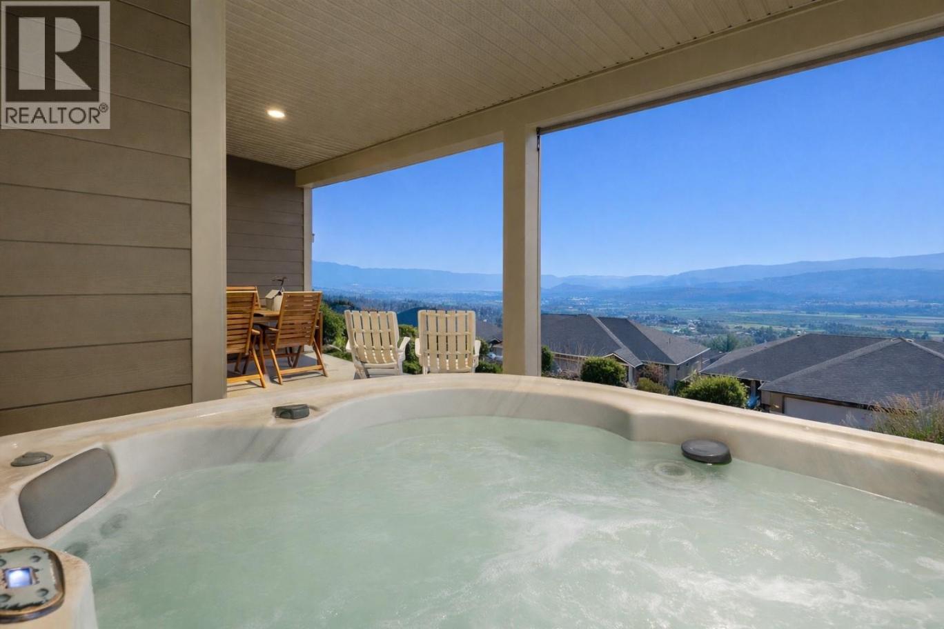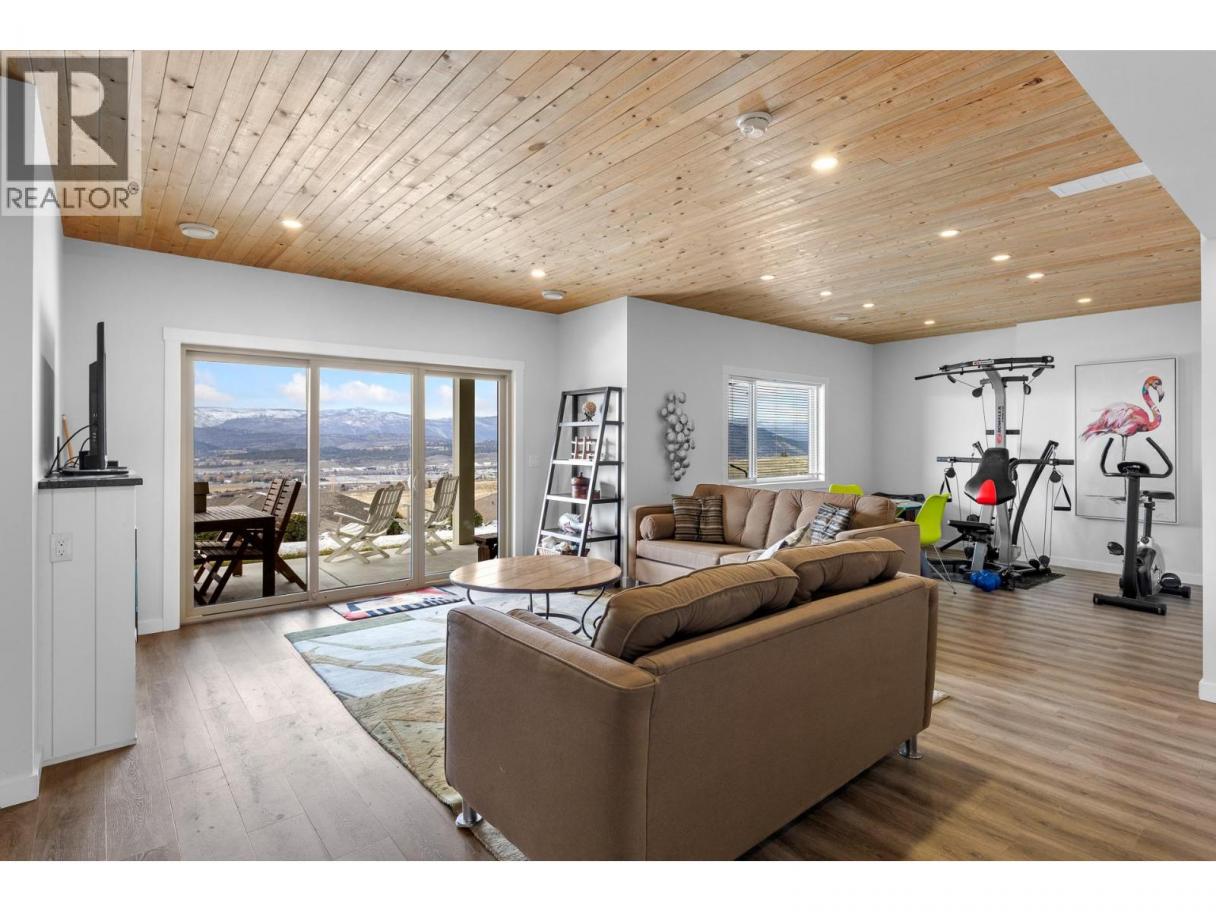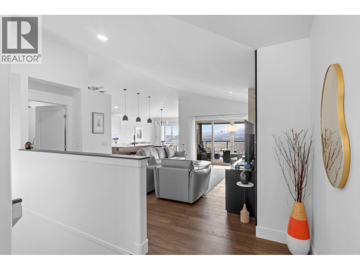 Located in the prestigious gated community of Sunset Ranch, this beautifully maintained walkout rancher offers sweeping views of Lake Okanagan, Beaver Lake, the valley, surrounding mountains and the fairways of Sunset Ranch Golf Course. Designed for effortless main floor living, the home features a bright open concept layout with vaulted ceilings, a spacious primary suite on the main level and seamless access to a covered deck ideal for morning coffee or evening sunsets. The chef-inspired kitchen includes an induction cooktop, quality appliances and generous workspace for entertaining. Unlike many homes in the community, this floorplan offers an oversized lower-level recreation room, creating exceptional space for entertaining, hobbies or visiting guests. The walkout level also includes a guest bedroom, full bathroom and access to a second covered outdoor space complete with hot tub. Thoughtful upgrades include a dedicated EV charging circuit with breaker in the garage panel, exterior sunscreen roller shades on the deck, synchronized bathroom exhaust fans, water softener and central air. Located on a quiet cul-de-sac with low monthly strata fees and an attached double garage, this home offers comfort, privacy and low maintenance living just minutes from Kelowna International Airport and UBCO. (id:6769)