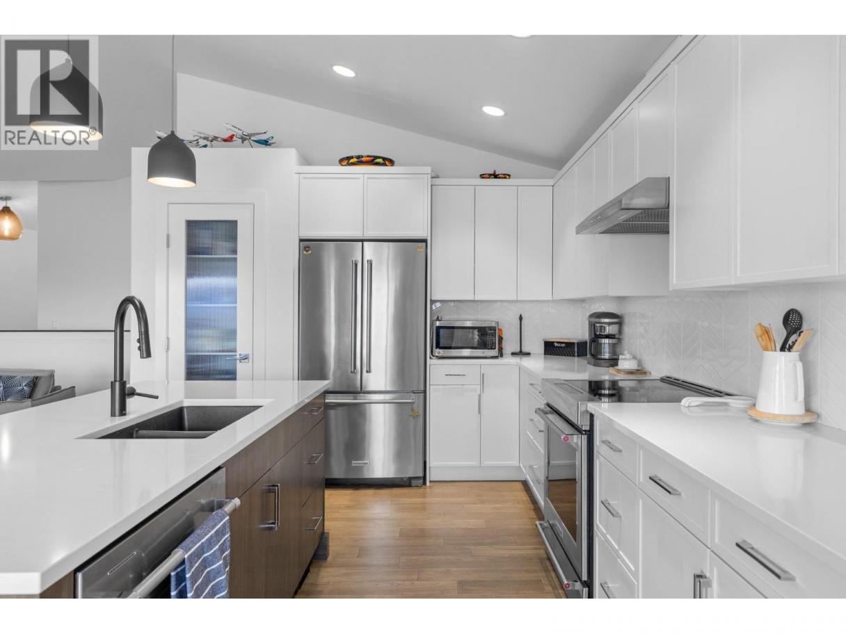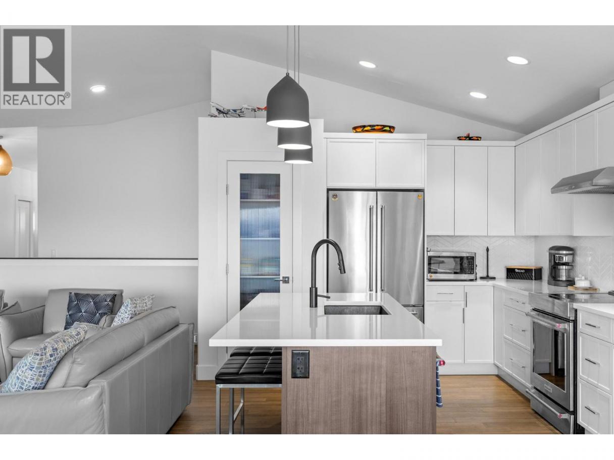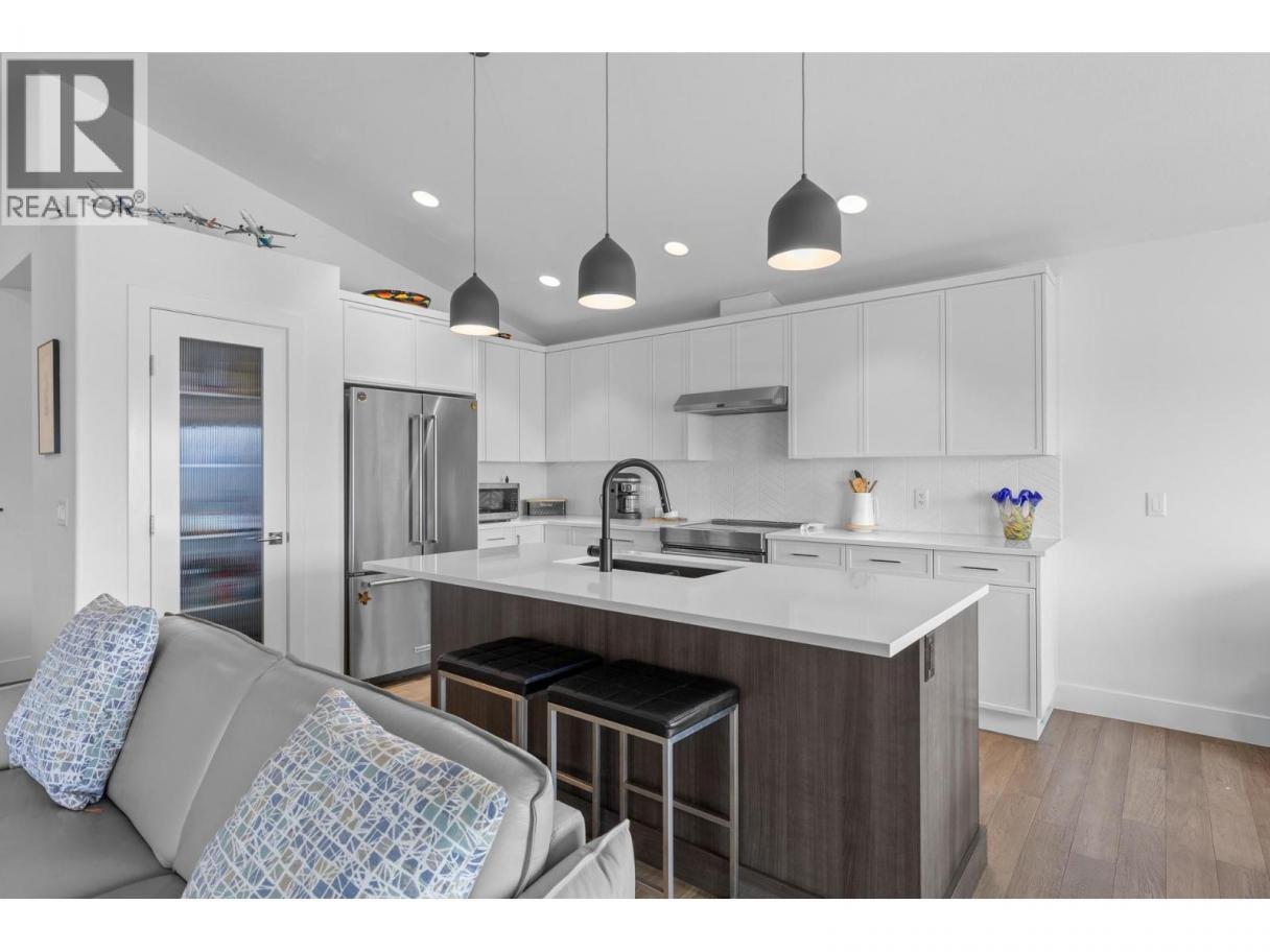 Located in the prestigious gated community of Sunset Ranch, this beautifully maintained walkout rancher offers sweeping views of Lake Okanagan, Beaver Lake, the valley, surrounding mountains and the fairways of Sunset Ranch Golf Course. Designed for effortless main floor living, the home features a bright open concept layout with vaulted ceilings, a spacious primary suite on the main level and seamless access to a covered deck ideal for morning coffee or evening sunsets. The chef-inspired kitchen includes an induction cooktop, quality appliances and generous workspace for entertaining. Unlike many homes in the community, this floorplan offers an oversized lower-level recreation room, creating exceptional space for entertaining, hobbies or visiting guests. The walkout level also includes a guest bedroom, full bathroom and access to a second covered outdoor space complete with hot tub. Thoughtful upgrades include a dedicated EV charging circuit with breaker in the garage panel, exterior sunscreen roller shades on the deck, synchronized bathroom exhaust fans, water softener and central air. Located on a quiet cul-de-sac with low monthly strata fees and an attached double garage, this home offers comfort, privacy and low maintenance living just minutes from Kelowna International Airport and UBCO. (id:6769)