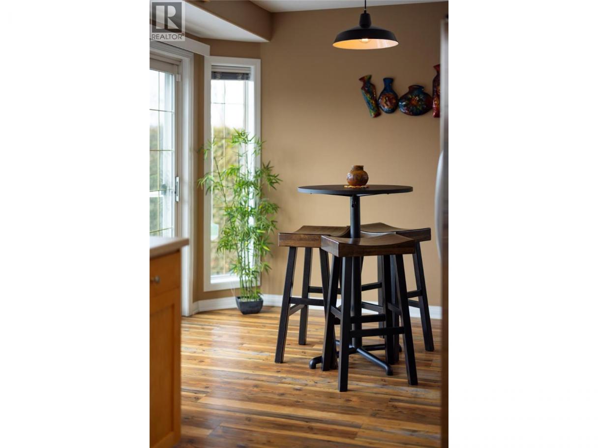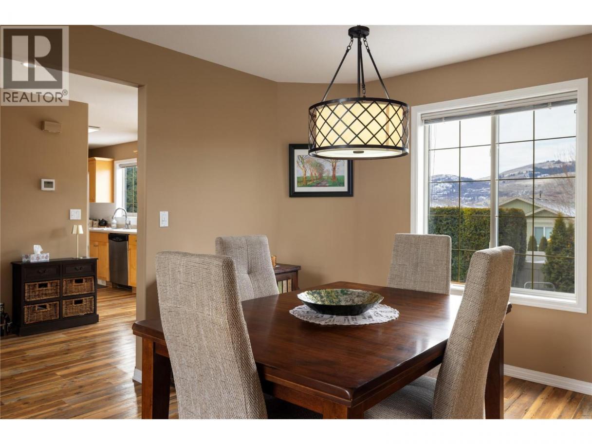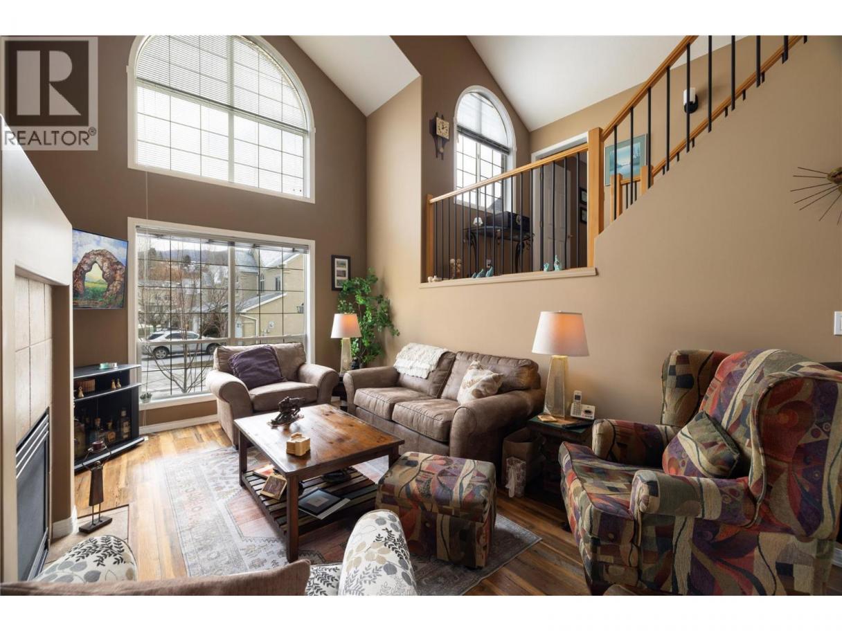 Welcome to Roxborough by the Creek — a family friendly community - where comfort, convenience, and style come together. This beautifully maintained 3-bedroom, 3-bath home is flooded with natural light thanks to its end-unit position and soaring vaulted ceilings. The open-concept main floor is ideal for both everyday living and entertaining, featuring a spacious living room with cozy gas fireplace and oversized picture windows that create an airy, inviting feel. The dining area flows seamlessly into a cheerful breakfast nook and well-appointed galley kitchen complete with shaker-style cabinetry and convenient access to the laundry and pantry. Step outside through sliding glass doors to your private deck — surrounded by greenery for added privacy and perfect for summer evenings or morning coffee. Upstairs, the generous main bedroom will easily accommodate a king-size bed and offers a walk-in closet plus full ensuite with an updated walk in shower. A second bedroom and full bath complete the upper level, while the third bedroom on the mid floor provides versatility for guests, an office, or hobby room. Many updates including the furnace, A/C, On-demand hot water, walk-in shower (ensuite), vinyl plank flooring (25-year warranty), updated lighting, custom handrails with modern metal railings, and updated plumbing fixtures — truly move-in ready. The double garage, additional driveway parking, and convenient crawl space storage add everyday practicality. Located just a short walk to Village Green Shopping Centre, Walmart, and transit, with Silver Star Mountain Resort only 25 minutes away — this location offers both urban convenience and Okanagan adventures. Don’t miss your opportunity to call this beautifully updated home yours. (id:6769)