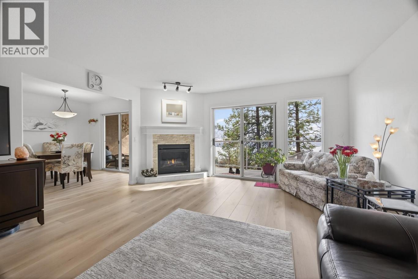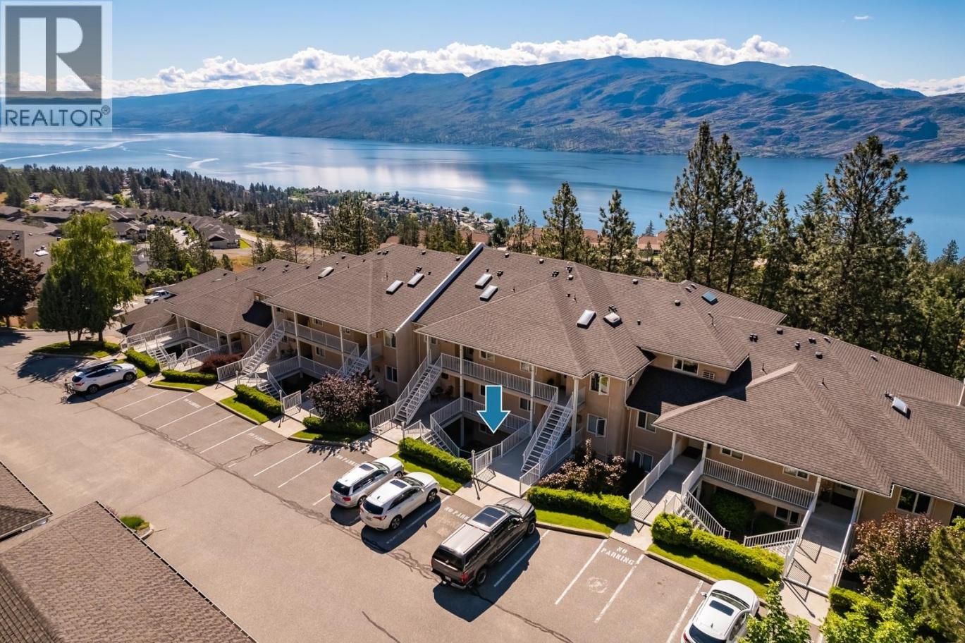 Welcome to 112-4630 Ponderosa Dr, a stunning 2-bedroom townhome in Chateaux on the Ridge, Peachland. This executive suite offers a perfect blend of luxury and practicality, ideal for those looking to downsize or for young professionals seeking a low maintenance lifestyle without compromising on quality or views, with the added benefit of convenient one-level living. Enjoy breathtaking 180-degree views of Okanagan Lake and the mountains from your private, oversized deck with glass railings. This home is part of a well-run strata community with low monthly fees that include hot water radiant heated floors and a gas fireplace, ensuring comfort and economy. The community boasts amenities such as a lounge area with an exercise room, billiards, a full kitchen for events, and a library. Outdoors, engage in activities with a putting green or explore nearby trails on Pincushion Mountain. Ample storage and covered parking are added conveniences. Located next to the future Pines at Ponderosa development, currently in negotiations, this area continues to show strong long-term potential. Just minutes from Okanagan Lake beaches and Peachland’s shopping areas, this property offers a tranquil yet connected lifestyle. Discover this serene oasis today and make it your new home. Schedule your showing today! (id:6769)