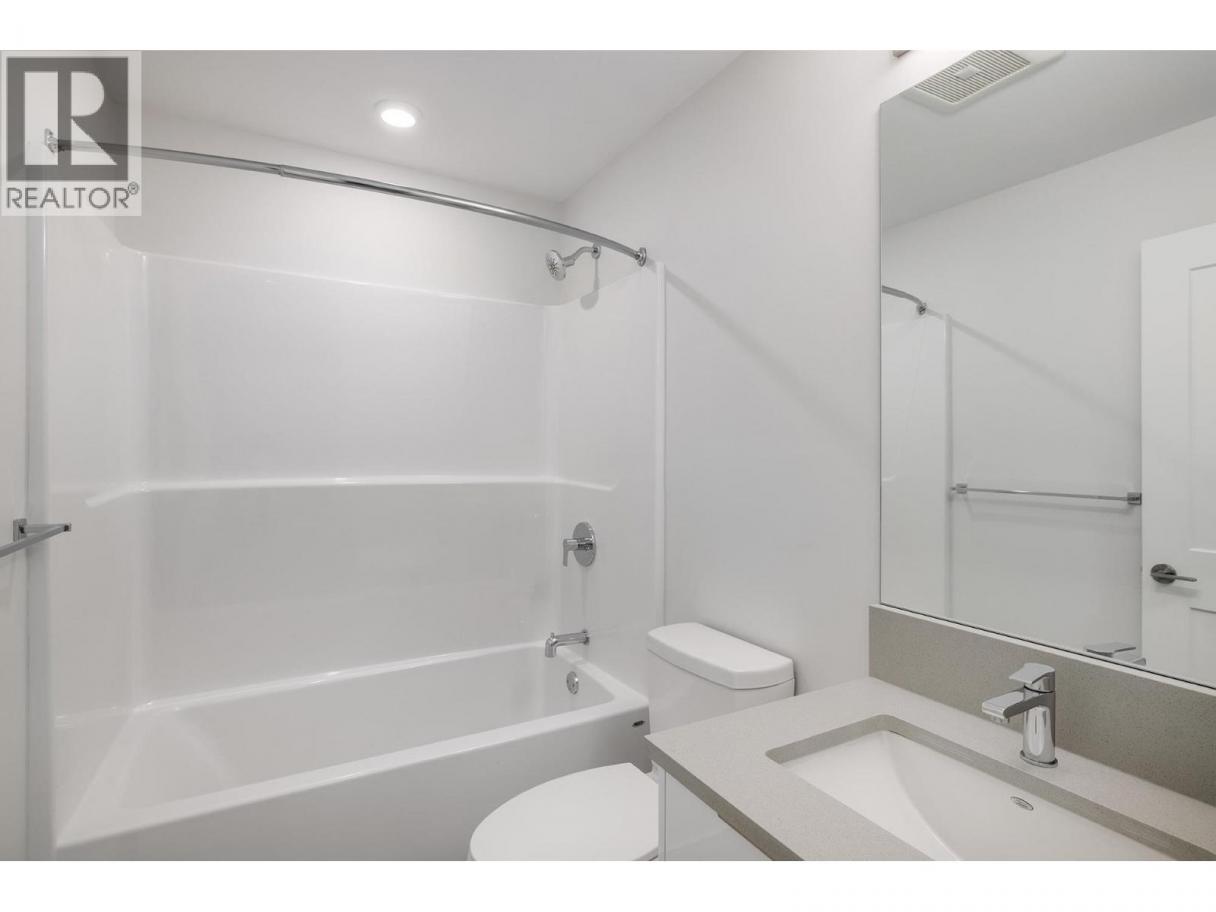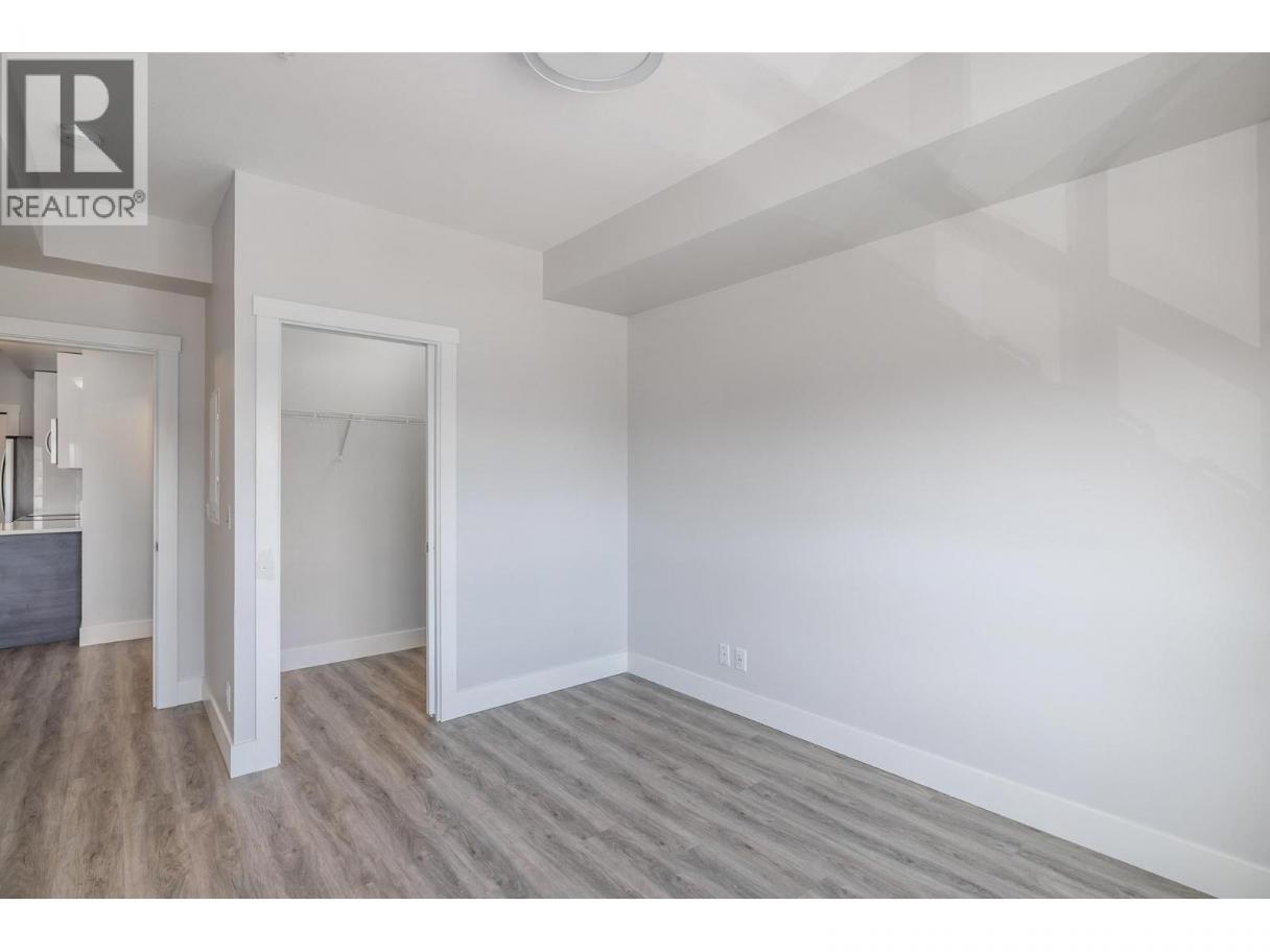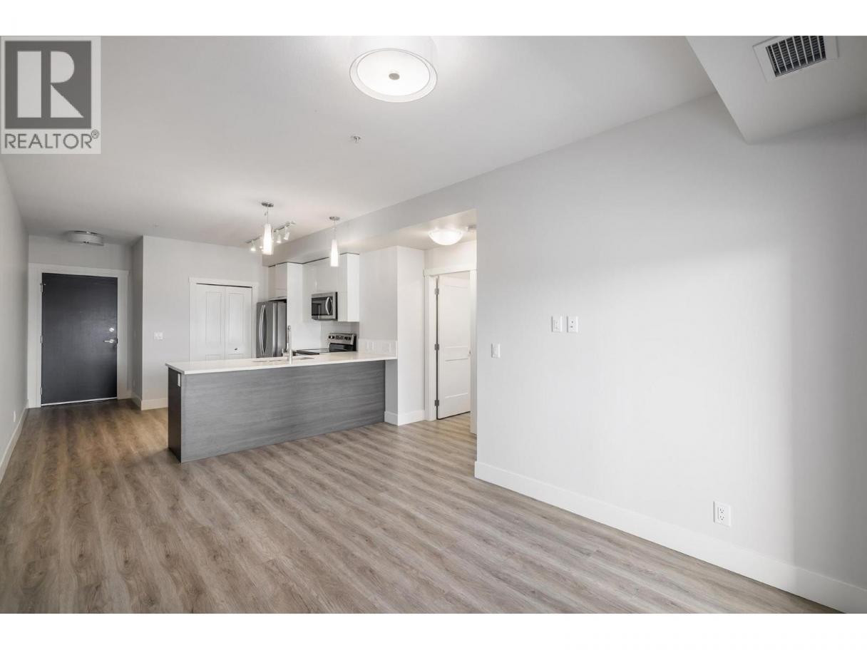 Welcome to SOHO, where modern design meets everyday convenience. This spacious 1 bedroom, 1 bathroom home offers the perfect blend of style and functionality, ideal for first-time buyers, students, or investors alike. Thoughtfully designed with an open-concept layout, 9-ft. ceilings, and large north-facing windows that fill the space with natural light. The sleek designer kitchen is a standout feature, with white shaker cabinets, rich wood-tone lowers, quartz countertops, and a Whirlpool stainless steel appliance package. Enjoy casual dining or entertaining at the oversized peninsula. The bright and airy living area flows seamlessly to a covered deck with serene mountain views, a perfect extension of your living space. Retreat to the generous primary bedroom complete with a large walk-in closet and built-in shelving. The 4-piece bathroom includes a modern vanity with quartz counters and a tub/shower combo. Additional highlights include in-suite laundry, a secure underground parking stall, storage locker, and access to amenities including a fitness centre and party room. Just minutes to UBCO, shopping, the airport, and downtown. Exceptional value in a central location. Vacant and ""like new"" . Well priced and ready for a quick sale! (id:6769)