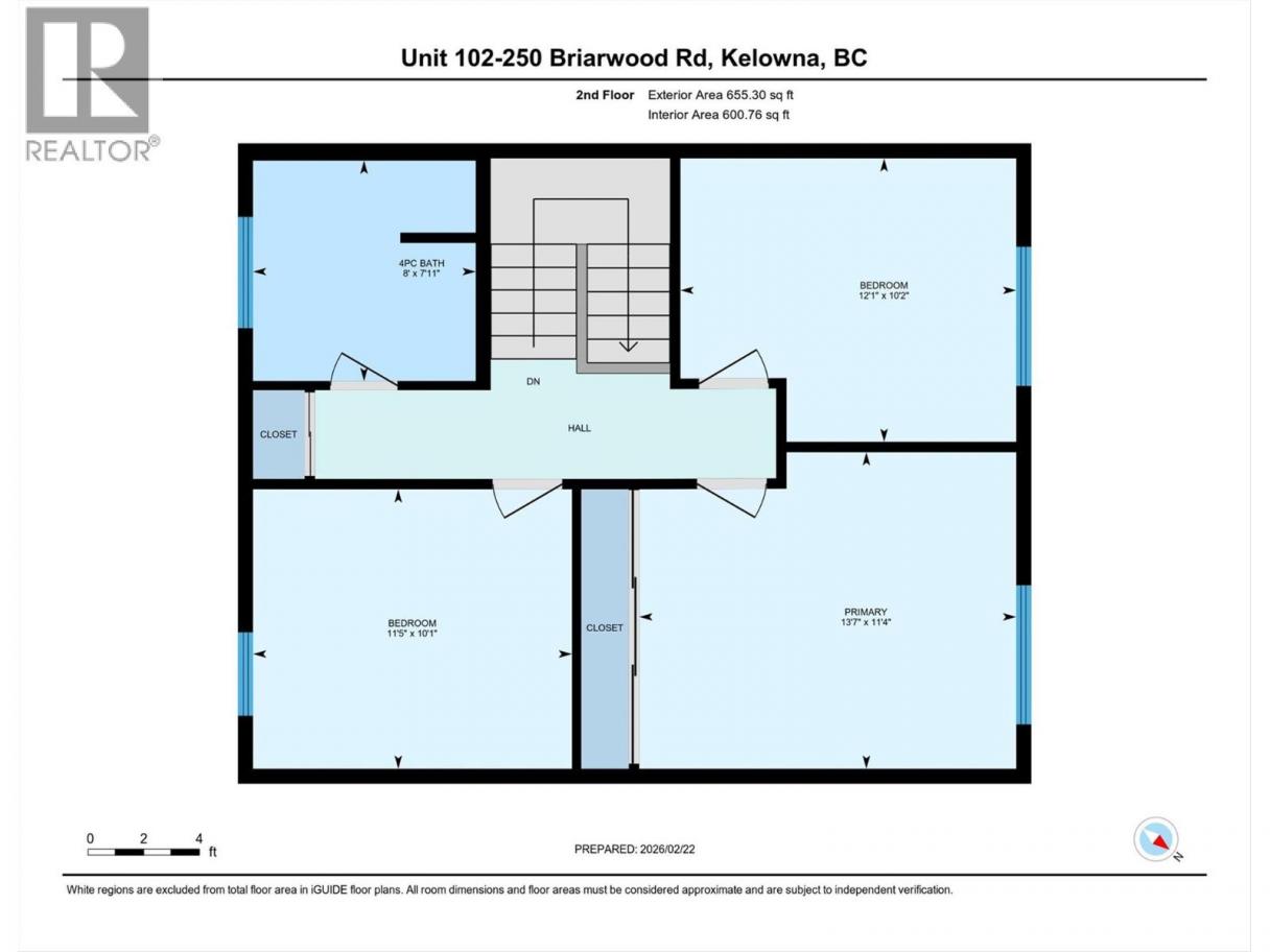 | Primary Bedroom | Second level | 11'4'' x 13'7'' |