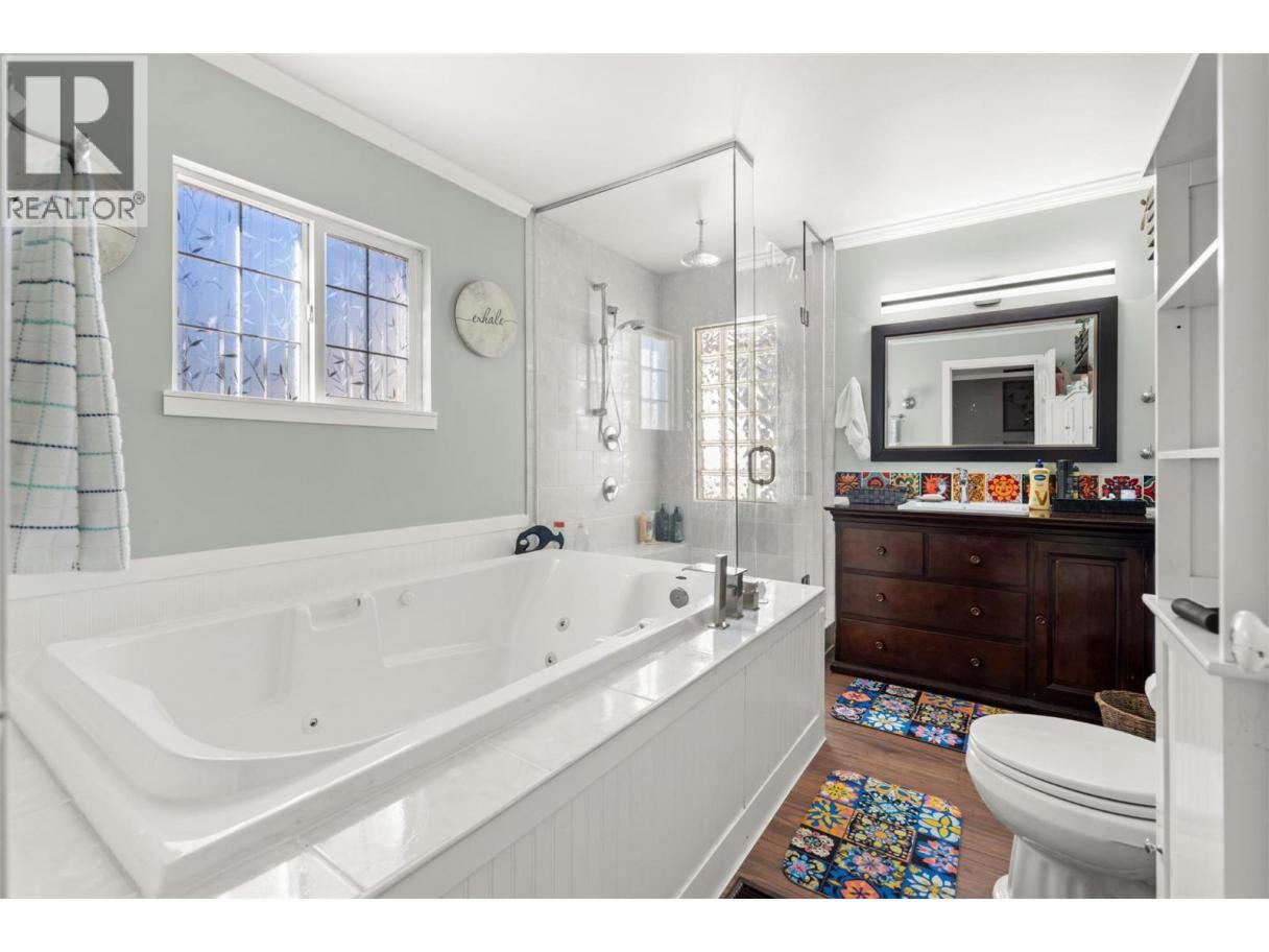 Newly renovated home in a desirable park BEAUTIFUL double wide home boasts 2 bed 2 bath and 1650 sq ft. Step onto your private front veranda thru the french doors and relax with morning coffee and soak up the sun all while enjoying the unparalleled view of Mount Boucherie, and mountains along OK lake. Freshly painted, totally updated with drywall throughout. Living room is large with plenty of light and lovely views from the bay windows and french double door leading to the side deck to the back yard. Appliances are SS and fairly new, fridge (2021), DW (2023), washer/dryer (2020). Both bathrooms have a walk-in glass shower, and the spa like ensuite has a double jetted tub. Master bed has large windows with plenty of light, a large bright office and walk in closer with built in shelves and drawers. The 2nd bedroom is bright and spacious with plenty of light and room for king bed and dressers. A gardeners dream with raised beds along the entire length of the mobile, the front has a beautiful garden bed and side bed alongside a large brick driveway. Newly landscaped private back yard including patio area. Both front and back yards are fenced. Roof is 5 years old, furnace was replaced in 2020 with a high efficiency and windows are new. House is located on a very quiet road in a well managed park. It is in the adult section (19+). Close to shopping, wineries, beaches, and hiking trails. 2 Pets welcome without size limits, with park approval. (id:6769)