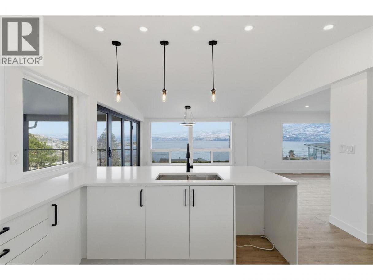 Nestled between two vineyards on a quiet dead-end street in coveted Lakeview Heights, this extensively renovated five bedroom home delivers the Okanagan lifestyle at its finest: sweeping panoramic views of Okanagan Lake, surrounding mountains, and lush valley landscapes from nearly every room. Step inside to discover a freshly completed renovation throughout. The open-concept main level features a brand-new kitchen with modern finishes flowing seamlessly into the dining and living areas, all set beneath vaulted ceilings and new luxury vinyl flooring. Floor-to-ceiling views draw you out to the showstopper: a massive covered balcony with vaulted ceilings, perfectly framed by vineyard and lake panoramas. The upper level offers updated bathrooms and generous bedrooms, while the lower level presents an exciting opportunity: a spacious area with separate access through the garage, ideal for a mortgage-helping Airbnb suite, in-law accommodation, or home-based business, all without disrupting the main living quarters. Outside, the 0.33-acre hillside lot is flanked by vineyards on two sides, creating a private, estate-like setting that simply cannot be replicated. A U-shaped driveway provides excellent access and guest parking, while three garages offer room for vehicles, toys, boats, and workshop space. Recent renovations, all fully permitted and inspected, include: new kitchen, new dining room, updated balcony, updated upstairs bathrooms, new paint and luxury vinyl flooring throughout, fresh exterior paint. Located in the heart of the Westside Wine Trail with 16+ wineries minutes away, including Mission Hill and Quails' Gate, and just steps to Okanagan Lake beaches, Kalamoir Regional Park, and the Gellatly Bay waterfront promenade. Downtown Kelowna is a quick 10–15 minute drive across the Bennett Bridge. Schools, shopping at Lakeview Village, and Two Eagles Golf Course are all nearby. (id:6769)