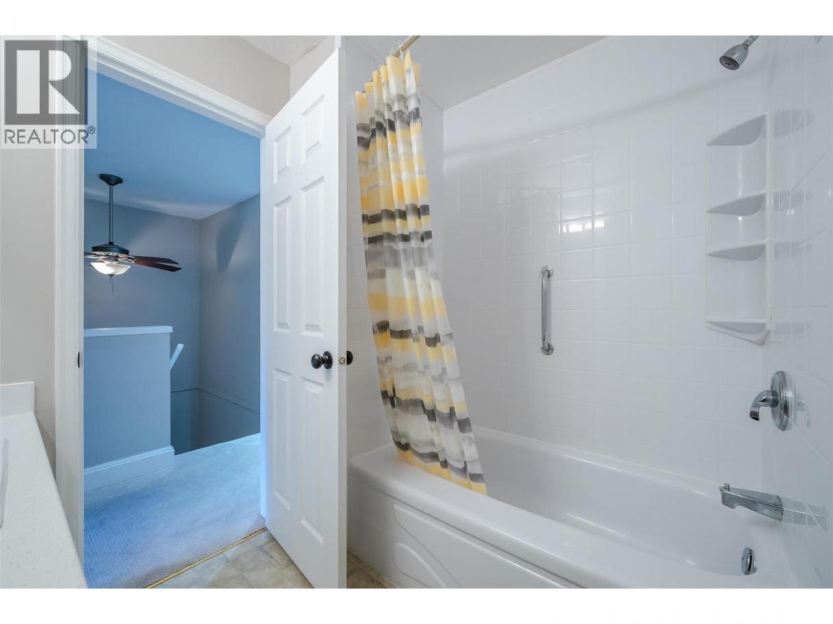 Golf course living at Fairway Five overlooking Sumac Ridge Golf Course. This spacious 2,100+ sq.ft. townhome offers 2 bedrooms plus a den (easily a 3rd bedroom) and 3 bathrooms across three levels. Updated kitchen with new tile flooring and luxury laminate in the main living area. The lower level features a cozy family/rec room with a wood-burning fireplace. Enjoy two private decks, a single-car garage, additional parking, and a secure storage room. The strata fee conveniently includes heat and hot water, helping offset monthly utility costs and providing predictable expenses. Well-maintained complex with no age restrictions. A great opportunity to enjoy space, views, and lifestyle in a desirable golf course community. (id:6769)