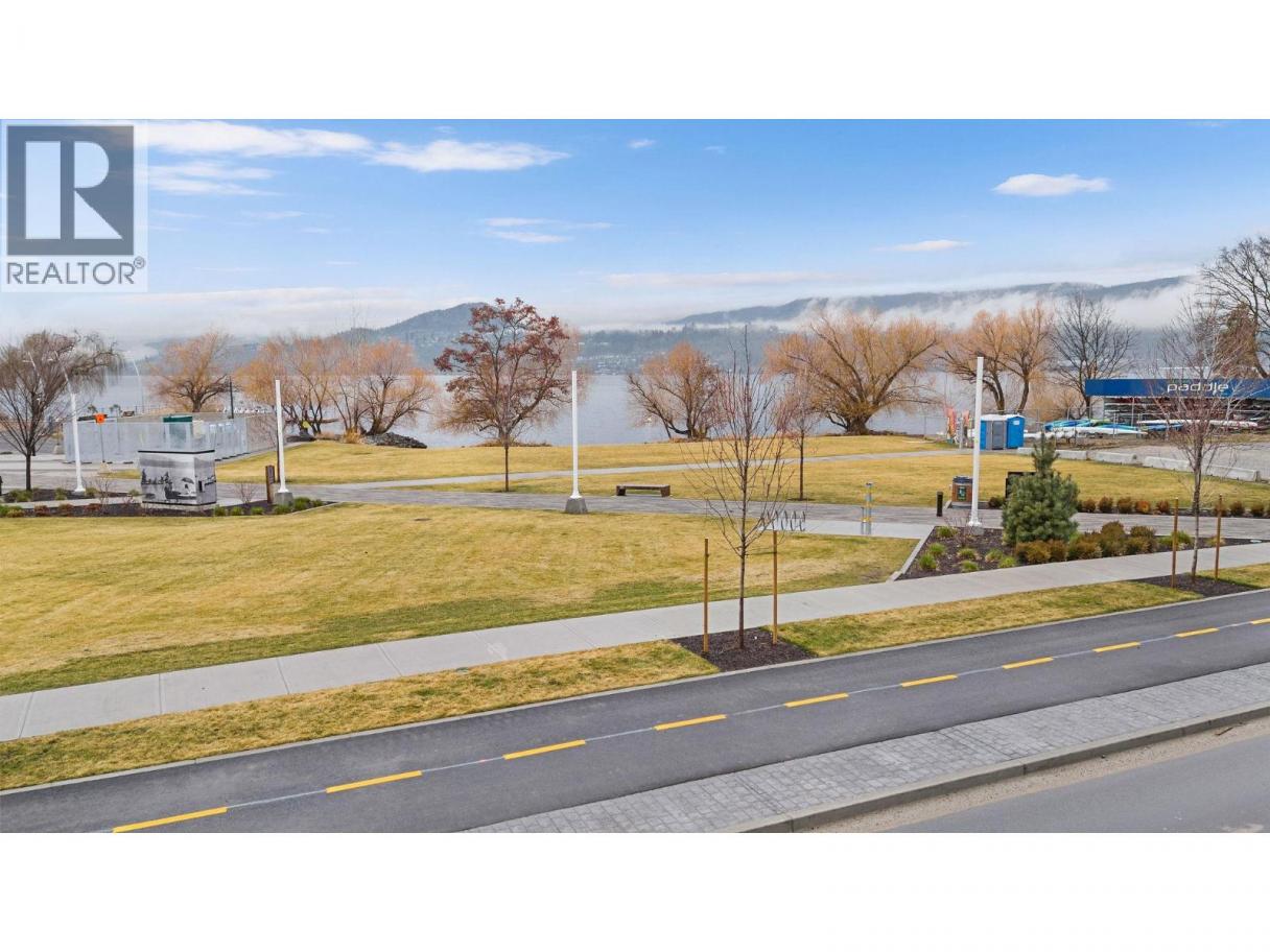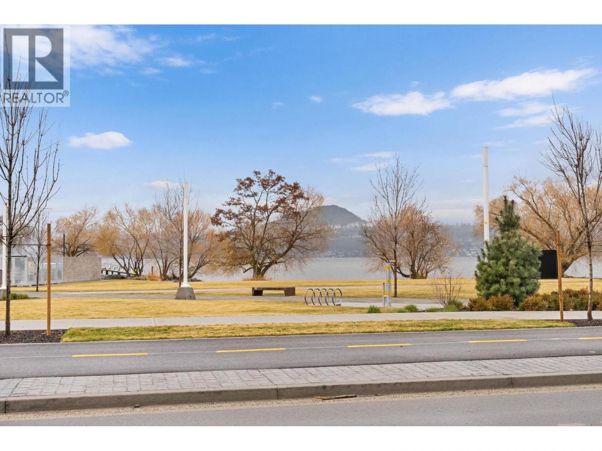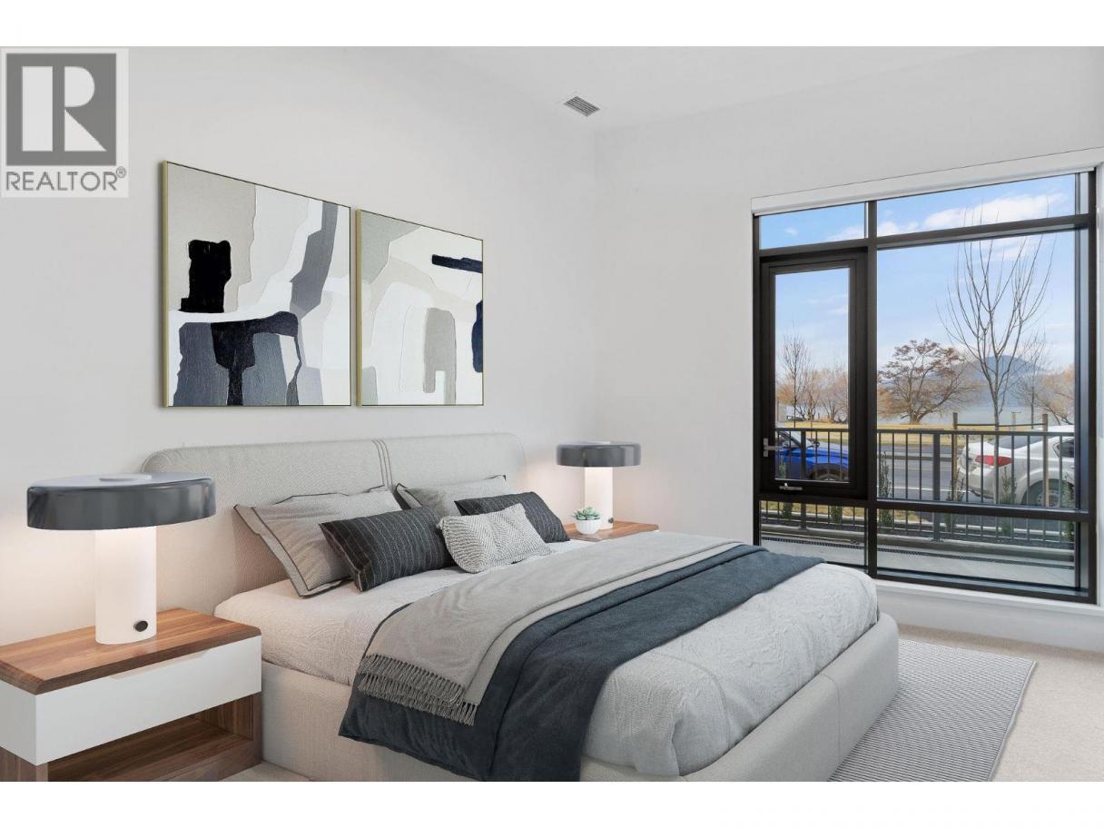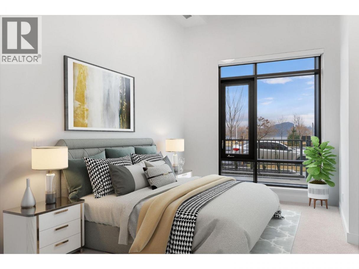 This ground-level townhome offers 2 bedrooms + den, 2 bathrooms, and impressive 11-foot ceilings that create a bright, airy feel throughout. The thoughtfully designed layout features an open-concept living space, modern kitchen with premium finishes, and expansive windows showcasing beautiful west-facing lake views. Enjoy seamless indoor-outdoor living with direct walk-out access from your front door to Abbott Street and the waterfront beyond — perfect for morning strolls and evening sunsets. The spacious primary suite includes a spa-inspired ensuite, while the second bedroom and versatile den which provides flexibility. Residents can enjoy amenities incl. an 8,000 sq ft lakeview terrace w/firepits, BBQs, and community gardens as well as a fully equipped fitness center, dog wash, & bike maintenance station. With a walk score of 93, you’re steps from transit, KGH, shops & restaurants of vibrant Pandosy Village, and beautiful Okanagan Lake. sq ft and room sizes are approximate and may vary. Photos may be of a similar home and layout and virtually staged. This home is newly constructed and move-in ready. (id:6769)