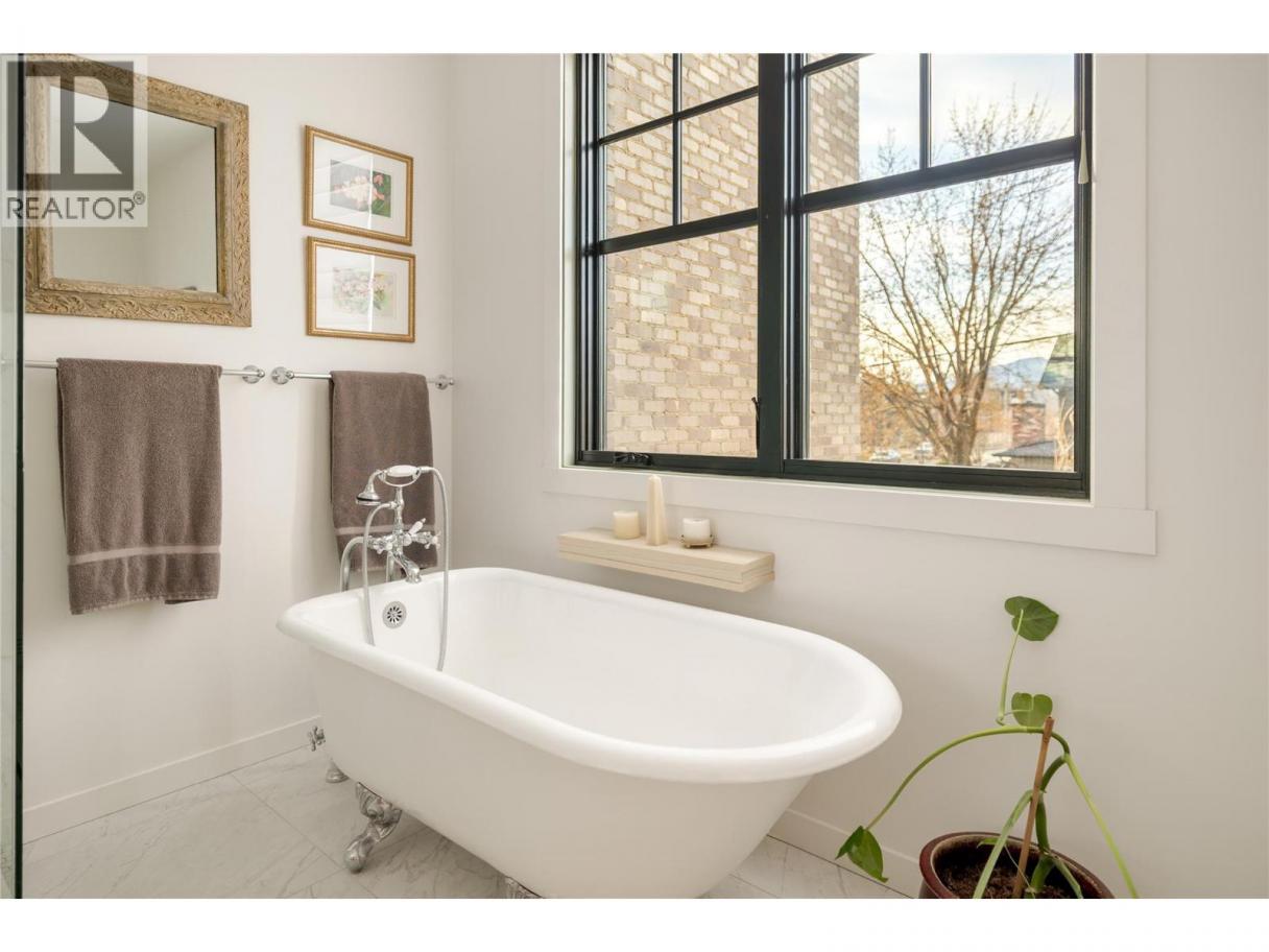 Life here unfolds effortlessly. An evening walk to the lake becomes part of your routine, morning coffee from your favourite cafe is just down the street. Dinner reservations, boutiques, everyday essentials — all within a few steps of home. Set in the heart of Pandosy Village, this is where urban energy meets relaxed Okanagan living. The timeless brick exterior offers presence & charm, while beyond the gate a private, fenced patio with louvered pergola creates an inviting outdoor retreat- ideal for summer dinners, quiet mornings, or gathering with friends. Inside, wide plank wood flooring carries throughout the main level, grounding the open-concept design. The living room, anchored by a striking fireplace, invites conversation & comfort. Custom millwork & thoughtfully designed built-ins add both function & architectural interest. Patio doors extend the living space outdoors, blurring the line between inside & out. The dining area easily hosts family dinners & celebrations, flowing seamlessly into a beautiful kitchen designed to impress & perform. A generous island becomes the natural gathering point, complemented by a Bertazzoni gas range, Fisher & Paykel dual dishwasher, custom hood vent, built-in wine fridge, & two-tone cabinetry. A discreet powder room and oversized single garage with abundant storage complete the main level. Upstairs, a versatile loft offers flexibility for a home office, reading nook, or creative space. The primary suite delivers a sense of retreat, featuring a spa-inspired ensuite with soaker tub, seamless glass shower, dual vanity, & heated floors. The second bedroom adapts beautifully with its integrated Murphy bed, while a full bathroom & well-designed laundry room complete the upper level. This is refined, low-maintenance living in one of Kelowna’s most walkable & sought-after neighbourhoods — designed for those who value style, connection, & a lifestyle where everything is within reach. (id:6769)
