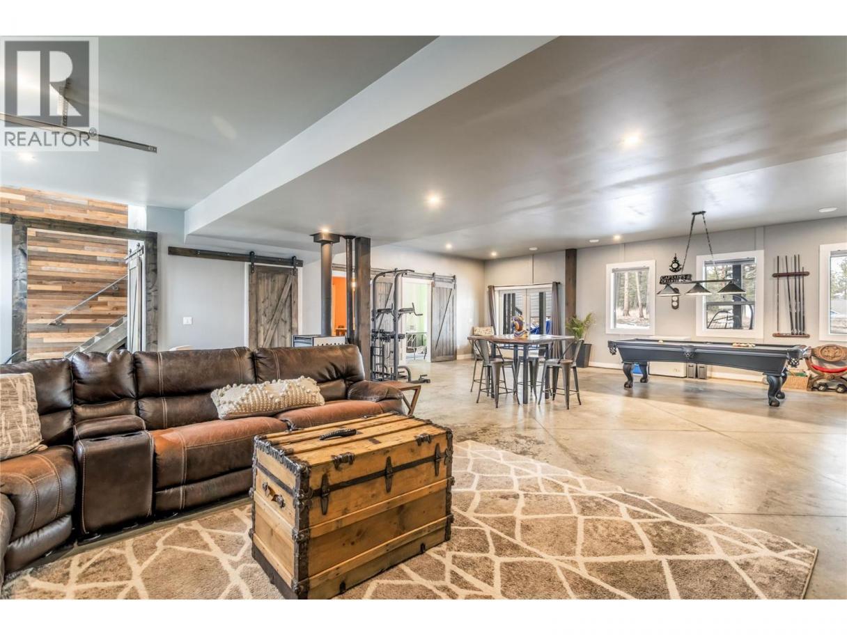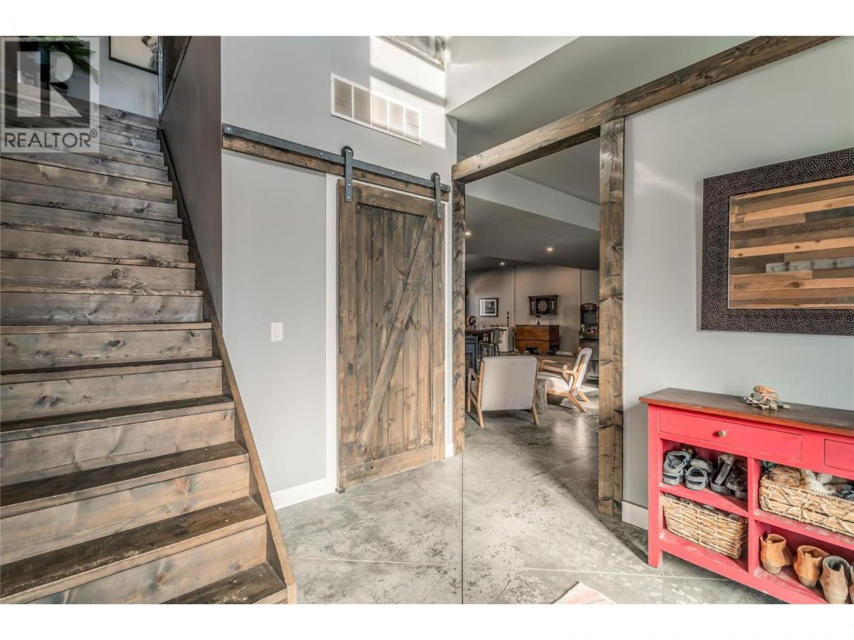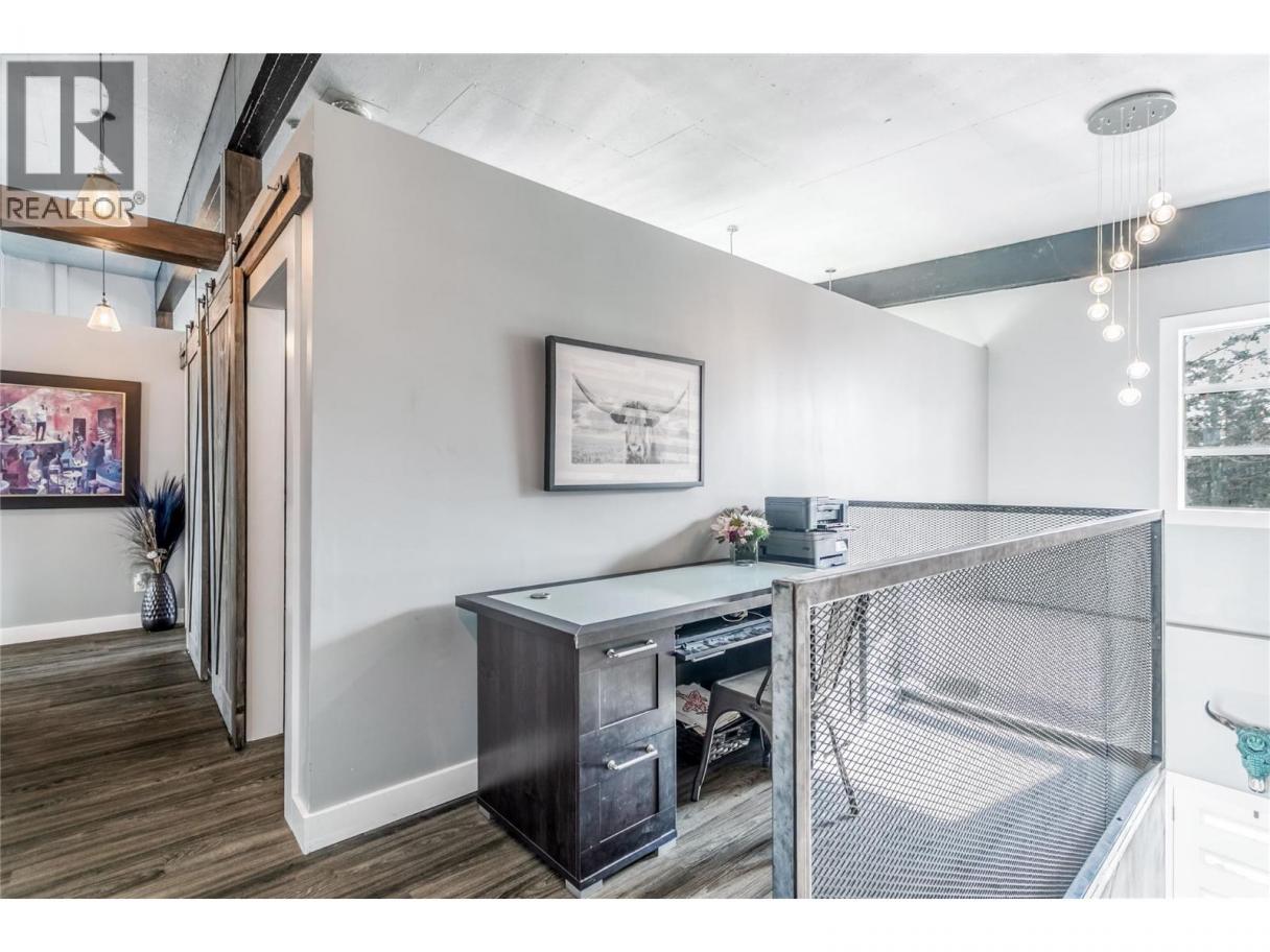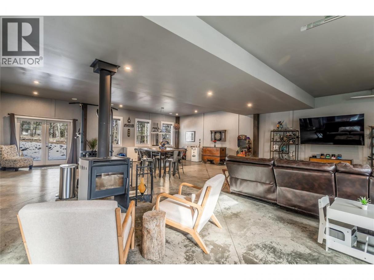 This truly is a 'one of a kind' property offering a fantastic, versatile modern space that could be tailored to suit your needs. Rustic decorative beams, corrugated metal siding and a contemporary designed wooden entrance wall creates a striking first impression the moment you step inside. The lower level is currently set up as a spacious family and recreation room, (pool table included), with durable sectional concrete flooring for a stylish urban feel, featuring a cozy 'Blaze King' wood-burning stove. Expansive windows and double doors open to a covered patio with hot tub hookups and wiring in place for a secondary standalone generator. Upstairs, you will find a warm and inviting living space featuring a large open-concept kitchen with stainless steel appliances, a 36"" gas range, two pantries, quartz countertops, breakfast island with a seamless flow into the dining and living areas. The primary bedroom offers a spa-inspired atmosphere with plenty of windows, high ceilings and an airy layout designed as a private retreat. There is a five piece ensuite bathroom and a generous walk-in closet. Step out from the main living area onto the impressive 450 sq ft wooden deck, with stairs leading down to the backyard. Outside, enjoy a fire pit, woodshed and 0.34 acres of flat, usable land with room to build a workshop or garage and space for all your recreational toys including a 30 amp socket and sewer hookup for an RV. This home offers great value - Contact your Realtor today ! (id:6769)