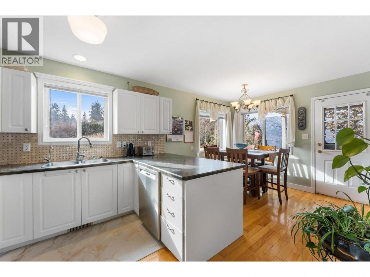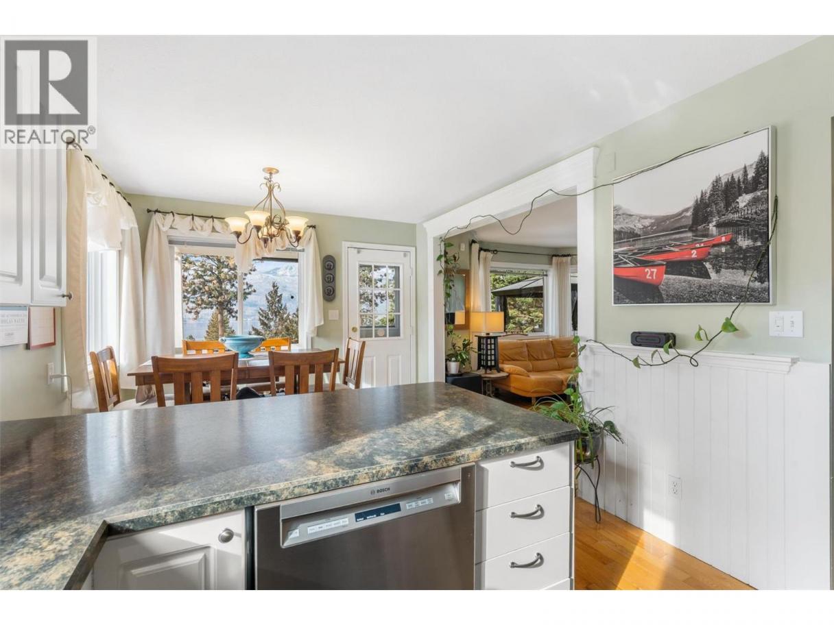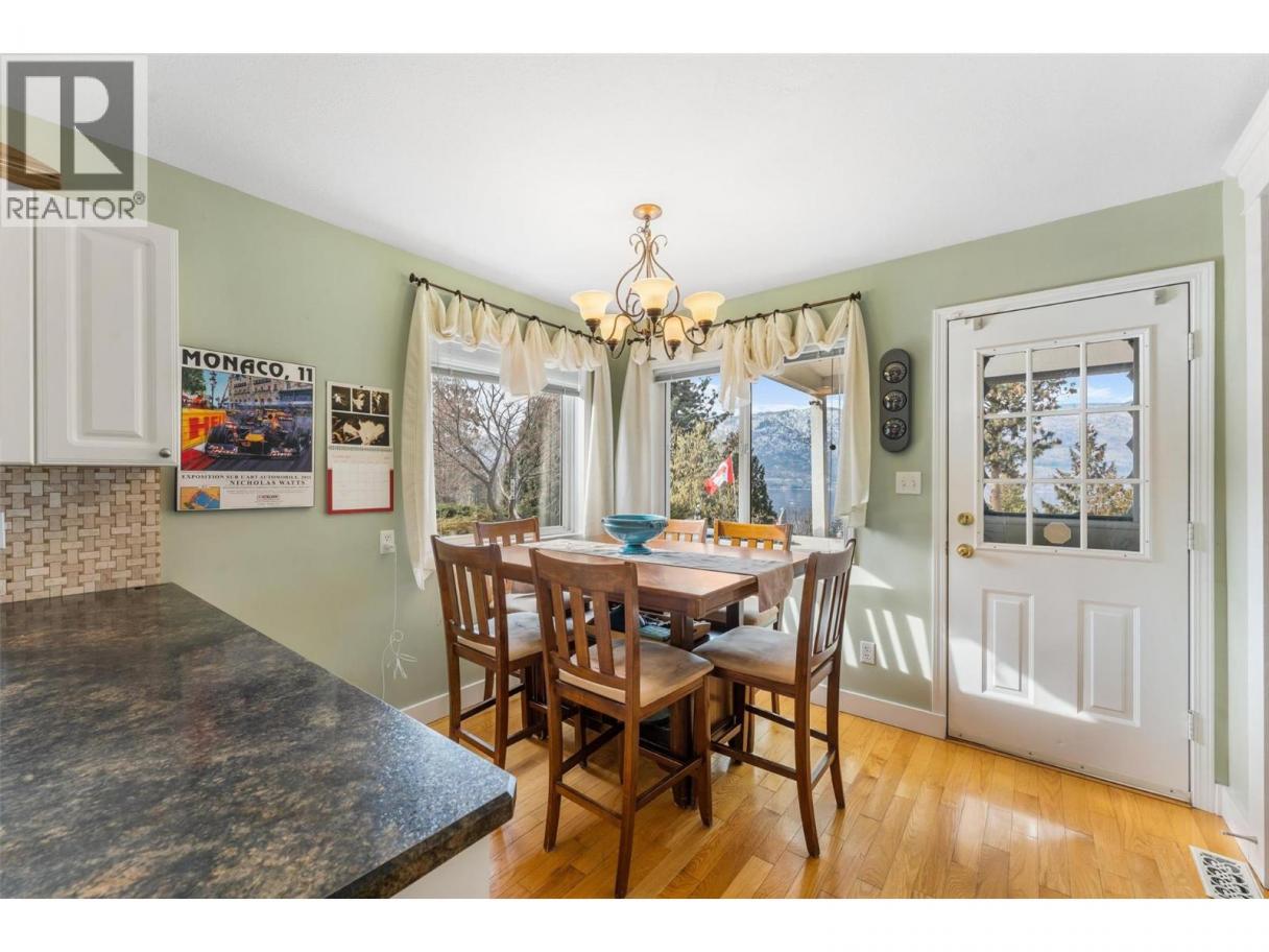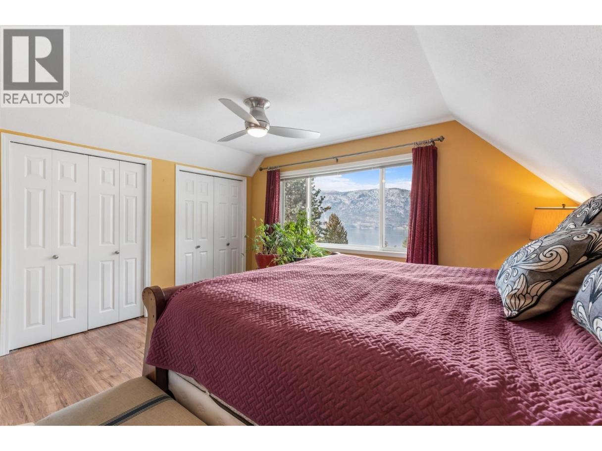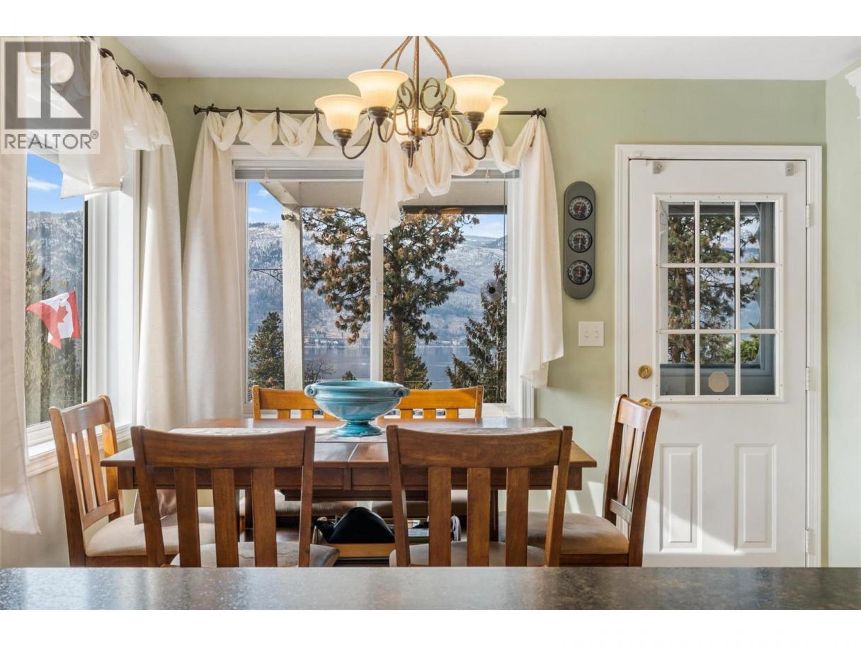 Stunning lakeview home on acreage in sought-after Okanagan Centre. This beautifully maintained 4 bedroom, 3 bath residence sits on a private RR2-zoned parcel in sought-after Lake Country, capturing breathtaking west-facing views of Okanagan Lake and unforgettable sunsets. A welcoming foyer and powder room lead into a bright, open-concept kitchen, dining, and living area anchored by a cozy gas fireplace. Expansive windows frame shimmering lake vistas, while the dining nook opens to a generous west-facing deck with hot tub perfect for entertaining or relaxing in total privacy. A separate north-facing seating area offers a cool retreat in summer. The bedroom on the main floor is currently being used as an office (no closet). Upstairs features refreshed flooring, a well appointed bath, and a spacious primary suite with elevated lake views, your own peaceful sanctuary to wake up to the beauty of the Okanagan each day. Thoughtfully updated with a high efficiency furnace, on-demand hot water, and durable roofing. A double carport and impressive 50’ x 15’ detached shop provide exceptional storage and workspace. With over 2.45 acres, there’s ample room for RV/boat parking, gardens, outbuildings, or future expansion. Located on quiet, dead-end Hare Road walking distance to Gray Monk Winery and minutes to parks, beaches, and local amenities. Subdivision potential (buyer to verify) and plans on file for additional square footage offer outstanding long-term flexibility. A rare opportunity to secure lakeview acreage in one of Lake Country’s most desirable neighbourhoods. (id:6769)