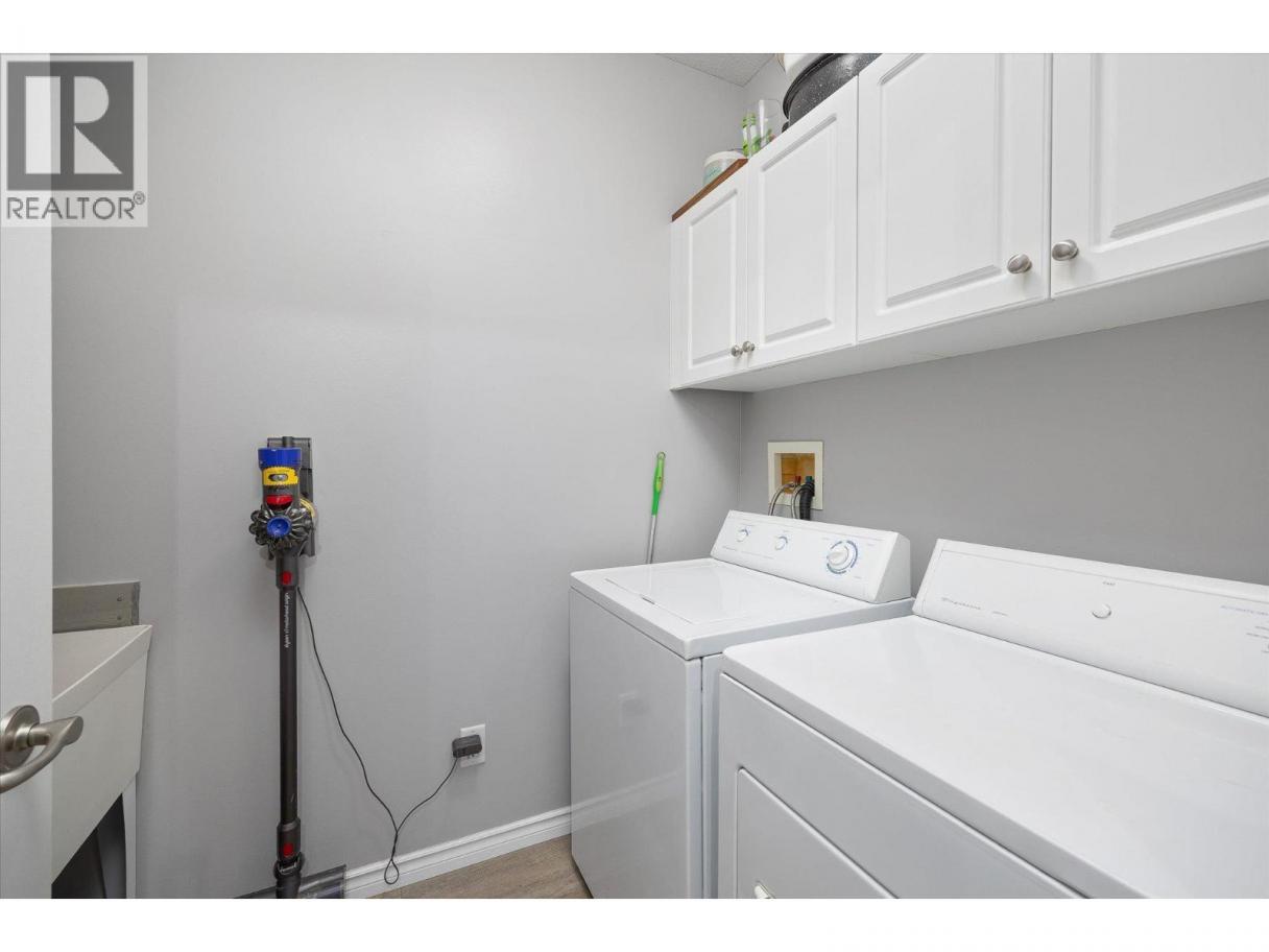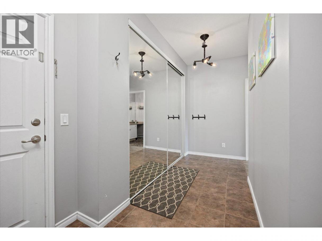 Welcome to The Bernard! This bright and well-maintained 2 bed, 2 bath corner unit condo offers nearly 1,100 sq. ft. of smart, functional living in an unbeatable downtown Kelowna location. Just steps from the rail trail, parks, restaurants, shops, schools, and transit, this property offers excellent walkability and lifestyle convenience. Ideal for first-time buyers or investors, the unit features 9' ceilings, updated vinyl flooring throughout, and a split-bedroom layout for added privacy. The kitchen includes an eat up breakfast bar and plenty of storage, while the open-plan living and dining areas lead to a spacious 16x8 covered deck—great for relaxing or entertaining. The primary bedroom includes a 4-piece ensuite, and the oversized foyer provides practical storage with a large closet. Additional features: updated river rock bathroom flooring, in-suite laundry with sink, wall A/C, secure underground parking, and a storage locker. Rentals and pets allowed (with restrictions). Strata fees include gas and hot water. With a Walk Score of 86, this is an outstanding opportunity to own in one of Kelowna’s most desirable areas! (id:6769)
