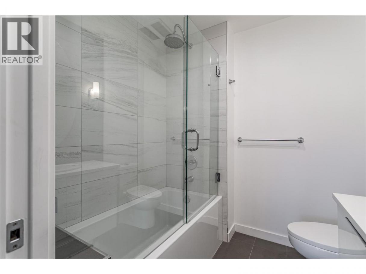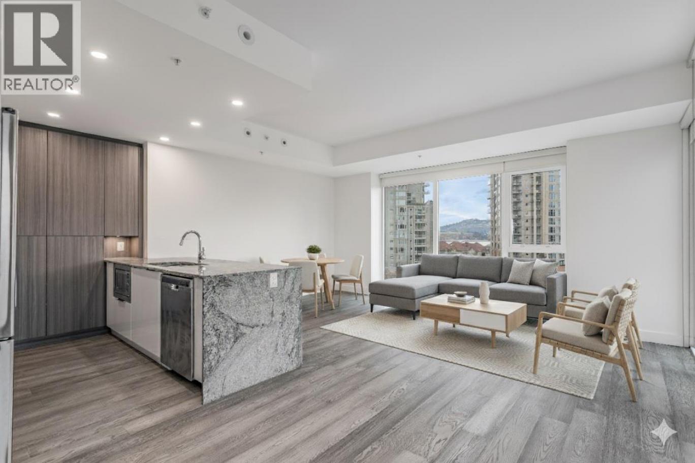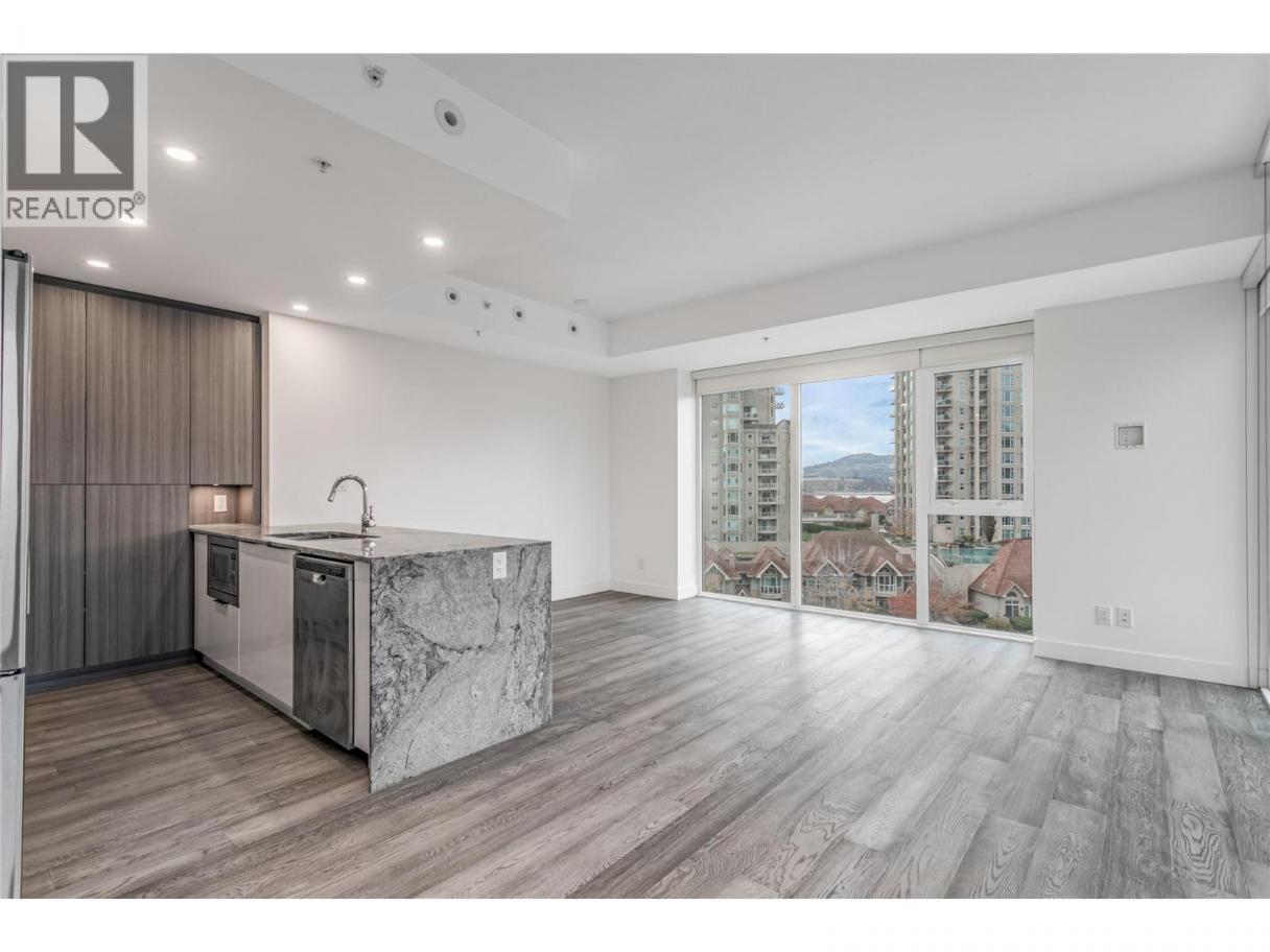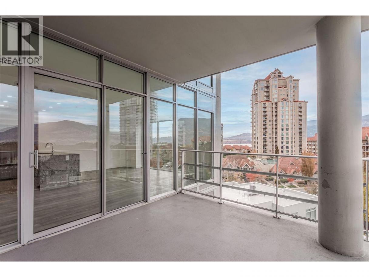 FABULOUS LOCATION!! This 2-bed 2-bath open plan corner suite, with oversized covered deck is located in one of Kelowna's premier high-rise buildings. Situated on Sunset Drive a quiet street with little traffic noise, but close to everything. Enjoy the wonderful views of the mountains and Okanagan lake, from your living room, kitchen, and dining area through floor to ceiling windows, which flood the home with light, or take in the views relaxing or entertaining friends on your deck. This home features sleek, modern, high-end finishes, including hardwood and ceramic tile flooring throughout, granite and quartz countertops in the kitchen and bathrooms. Enjoy cooking on your gas range, in your modern kitchen, complemented with stainless steel appliances. In-suite laundry and 4-piece ensuite. Walk to all the downtown amenities, such as beaches, parks, restaurants, brewpubs, bars, concerts, hockey games, shopping and hiking trails, or ride your bike along the promenade or up to Knox Mountain. Enjoy a wealth of resort style amenities at your doorstep including a year-round plunge pool, heated in the winter and cooled in the summer, a fitness centre, a BBQ area, a meeting room, and the owners' lounge is a great place to meet and greet. Pets and rentals are welcome, making it smart investment or a great personal residence. This residence comes with one parking stall and a storage locker. This is Okanagan Lifestyle living at its finest! Vacant, with quick possession possible. (id:6769)