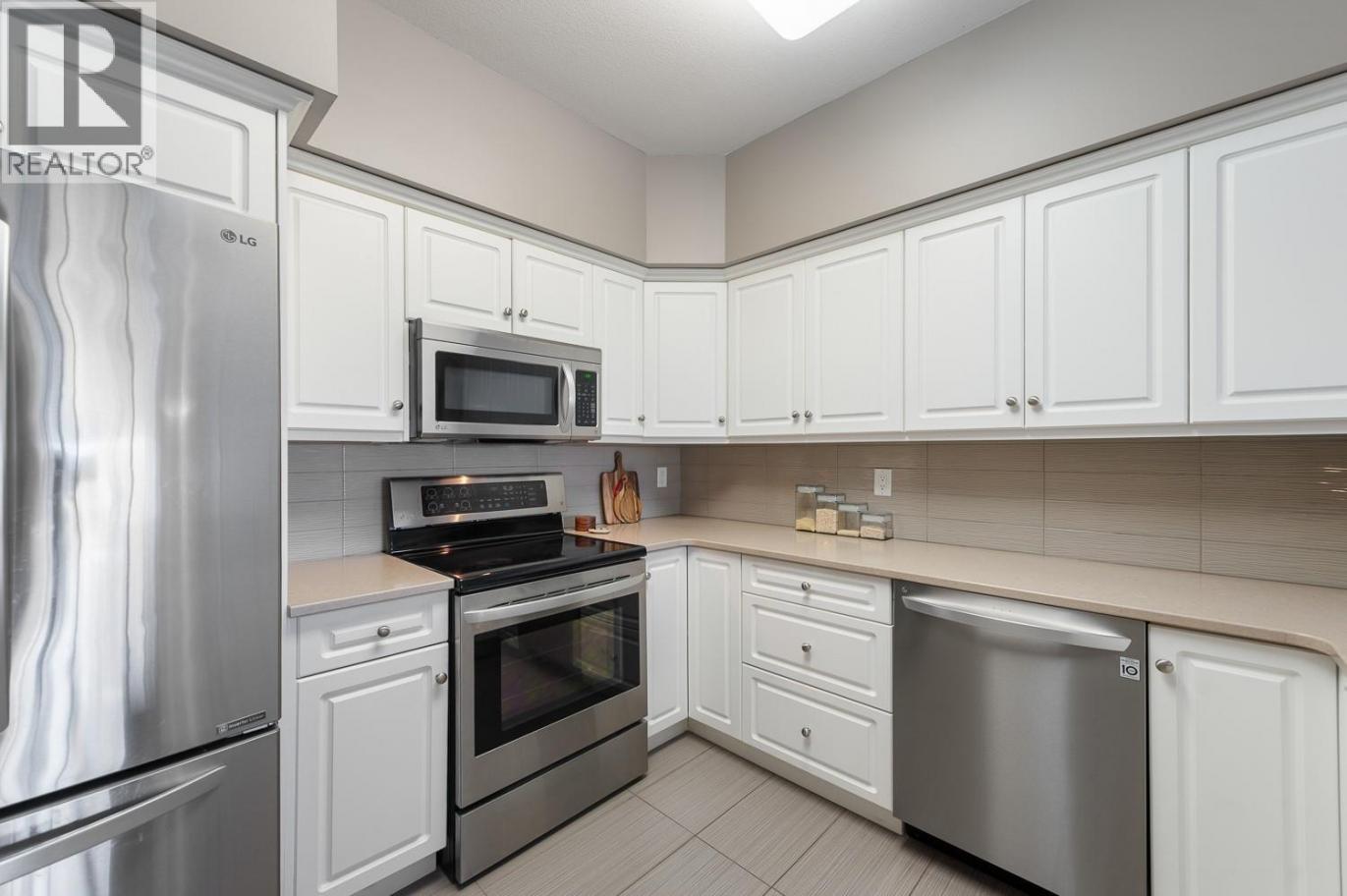 ""QUIET SIDE ""- Welcome to Wildwood Village, ideally located in the heart of Kelowna’s highly desirable Lower Mission. This beautifully updated 2-bedroom, 2-bathroom home offers 1,088 sq. ft. of functional and comfortable living space. With 9-foot ceilings, easy-care laminate flooring, and a cozy fireplace, the open-concept layout is both stylish and inviting. The updated kitchen is designed with high-end stainless steel LG appliances, quartz countertops and a raised eating bar—perfect for casual dining or entertaining. Step outside to the spacious, covered deck, ideal for soaking in the Okanagan sun or enjoying a summer BBQ. The primary ensuite includes a walk-in shower, while the large in-suite laundry room provides additional storage or pantry space. Very healthy contingency and well run strata. This home also comes with a secure underground parking stall and lots of extra outdoor spots for an additional car or guests plus a storage locker. The building offers excellent amenities, including a guest suite. Perfectly situated across from the H2O Centre, MNP Place, sports fields, hockey rinks, transit and the Mission Creek Greenway with Okanagan Lake, parks, beaches, golf courses, coffee shops, and restaurants all just minutes away. Move-in ready and waiting for you. The plumbing throughout building has been replaced and fully paid for. Pet-friendly 1 dog (under 14"" at the shoulder) or 1 cat (id:6769)