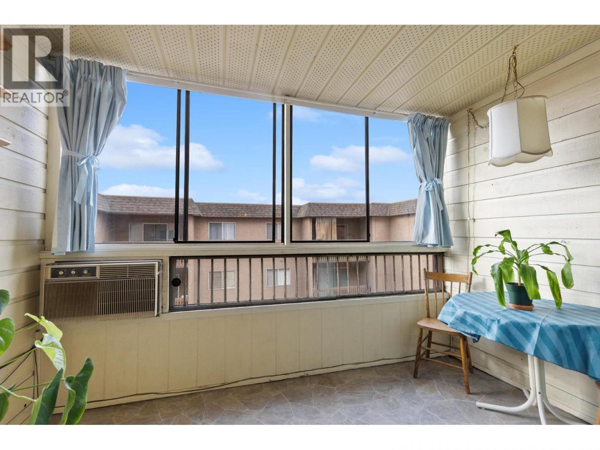 Top-floor, two-bed, two-bath home in a 55+ building, offering a bright, quiet living experience with everything you need just steps away. The location puts you close to shopping, recreation, restaurants, medical and professional services, and an easy walk to downtown, parks, and services. The home is well cared for, features an enclosed deck for year-round enjoyment, and represents excellent value for a top-floor residence in this area. Parking available with Strata approval. No pets. (id:6769)