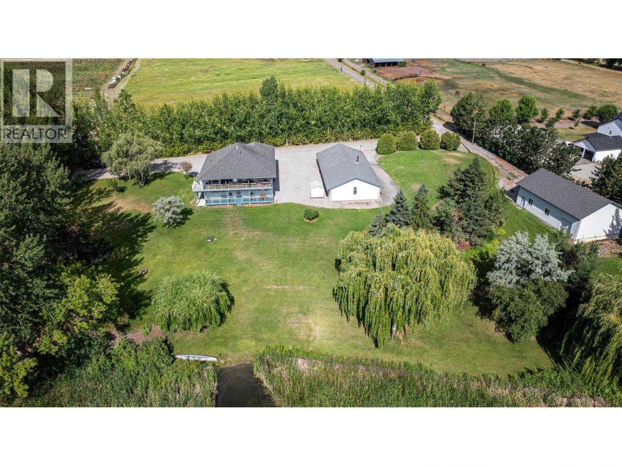 One of a kind property on Swan Lake! 1.95 manicured acres with an immaculate 6 bed/4.5 bath home with 2 detached Shops for your auto or wdworking hobbies. The home is of quality construction on 2 full levels. From the spacious entrance follow the curved staircase to the upper main floor to find the open living and dining rooms then the kitchen with an Island/eating bar. Off the kitchen is direct access to the covered 10'x43' deck where you will sit and enjoy your morning coffee over looking the Lake and enjoying the song birds in this natural wildlife sanctuary. The primary bedroom is on this level with an attached 5 pce. ensuite bath and walk-in closet. 3 more bedrms. with a ""Jack and Jill"" bathrm conveniently situated between 2 of them as well as another full bath. Downstairs off the foyer is the office/den along with a 2 pce. powder room. Also on the ground floor is an oversized family room with gas fireplace, 2 remaining bedrms, full bathrm and laundry. The ground floor could easily be converted to a separate suite with the side entrance and covered 10' x 43' patio. Outbuildings include a 32'W x70L'x 8'H' insulated/partitioned Shop with 200 amp service with roughed in plumbing, 2nd Shop is 30'W x 50'L x 16'H with 2x14' roll up door with 100 amp service. The landscaping includes a stone water fountain and pond along with ample lawns and mature trees. The home is heated with Gas forced air furnace and cooled with central A/C. Water via drilled Well. All perimeter fenced. (id:6769)