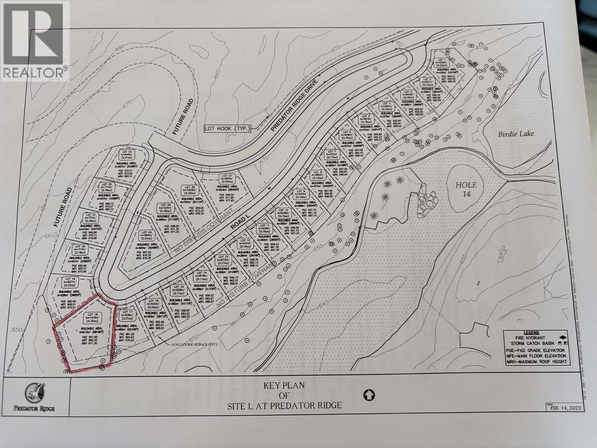 For more information, please click Brochure button. Spectacular 0.35 acre lot located within the Predator Ridge Golf Resort, with breathtaking views overlooking Lake Okanagan, Terrace Mountain and the Ridge golf course. This very private oversized south-west facing property is located within a quiet cul-de-sac of the newly established Wildsong development. It offers the prospective owner numerous options for a large custom-designed home (potential over 9,800 sq ft of buildable area), with plenty of space remaining for a large pool and outdoor entertainment area. An abundance of amenities are offered within the Predator Ridge Resort, including two highly rated championship golf courses with state-of-the-art practice facilities, tennis and pickleball courts, a comprehensive fitness centre, with an Olympic sized pool, yoga and steam rooms, etc., multiple biking/hiking trails, a fine dining restaurant and shops. Easy access to Sparkling Hill Resort, SilverStar Mountain Ski Resort and multiple wineries as well. No speculation tax. (id:6769)