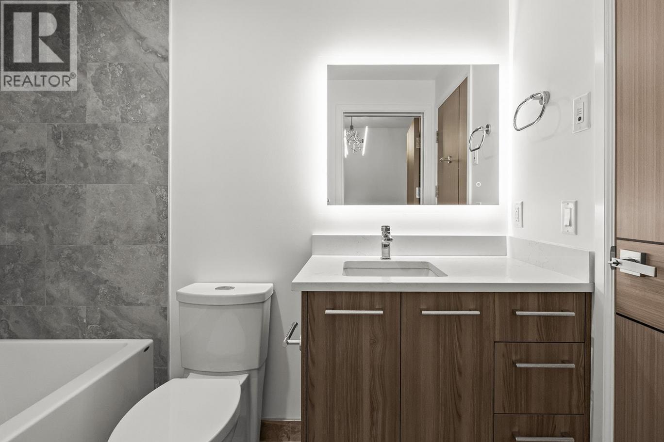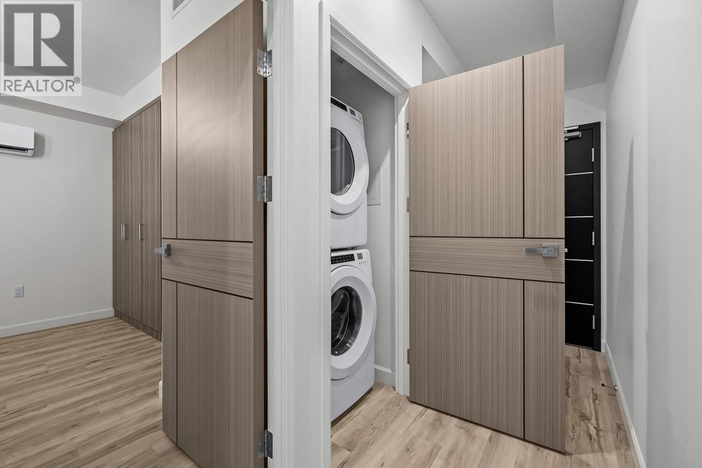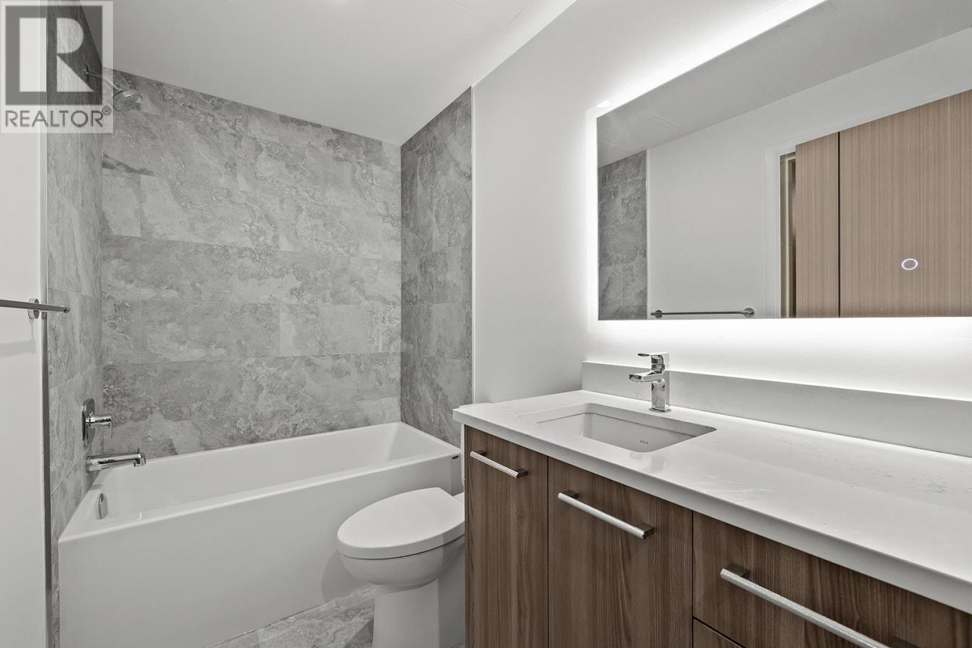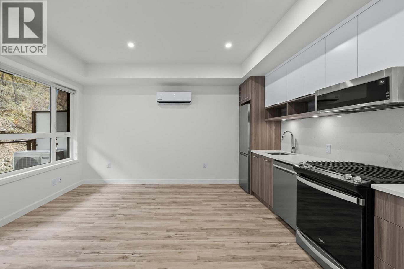 Brand New. Move-In Ready. And anything but ordinary. Welcome to Eminence at Knox Mountain. This 1-bed, 1-bath home offers approx. 554 sqft of smart, sophisticated living designed for people who appreciate clean lines & thoughtful details. Inside, 9-ft ceilings & expansive windows create a bright, open feel. The interior blends warm wood tones, striking black accents & sand glass balcony features. The kitchen is a standout with premium 2-tone cabinetry, quartz countertops, stainless steel appliances, a gas range & a unique wine storage feature. An in-suite laundry adds convenience, a nook provides a place for your desk, while designer LED lighting, a statement entry door, solid-core interior doors & custom shelving & closet solutions complete the polished finish. You’ll also enjoy underground parking with your own private bike cage. The building’s rooftop viewing terrace gives all new meaning to Kelowna’s Patio Season. Pet-friendly & Nature at your doorstep with direct access to Knox Mountain’s hiking & biking trails. Downtown Kelowna & Glenmore are minutes away. Buy new & save. Eligible buyers may qualify for the Property Transfer Tax exemption & the upcoming 1st time home buyer GST exemption & remaining homes include up to $100k in built-in savings from original pricing. If you want a designer condo you’ll genuinely love coming home to, this one checks all the boxes. Move-In Ready 1-Bed to 2-Bed + Den homes available. Sales Centre open Sat & Sun 12-4pm or by appointment. (id:6769)