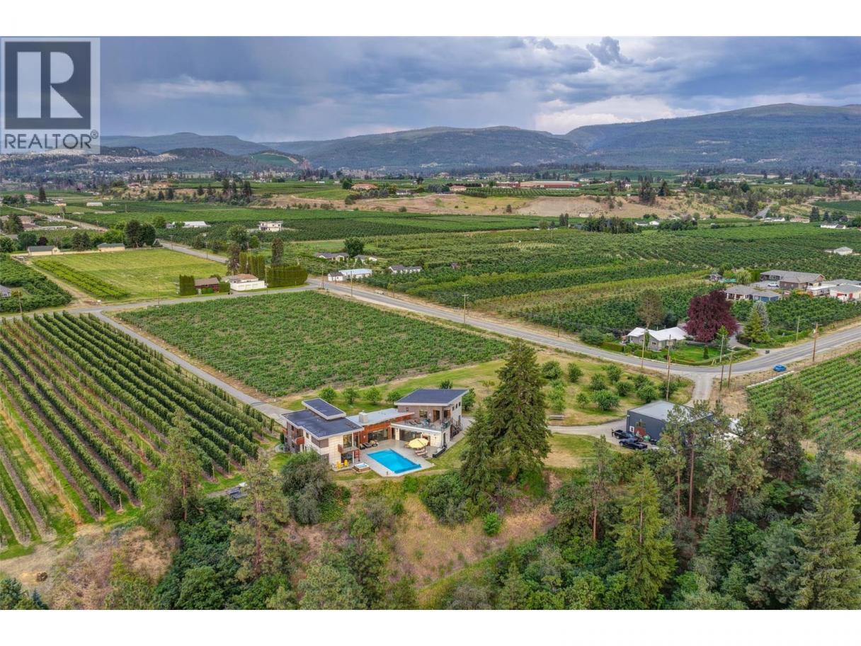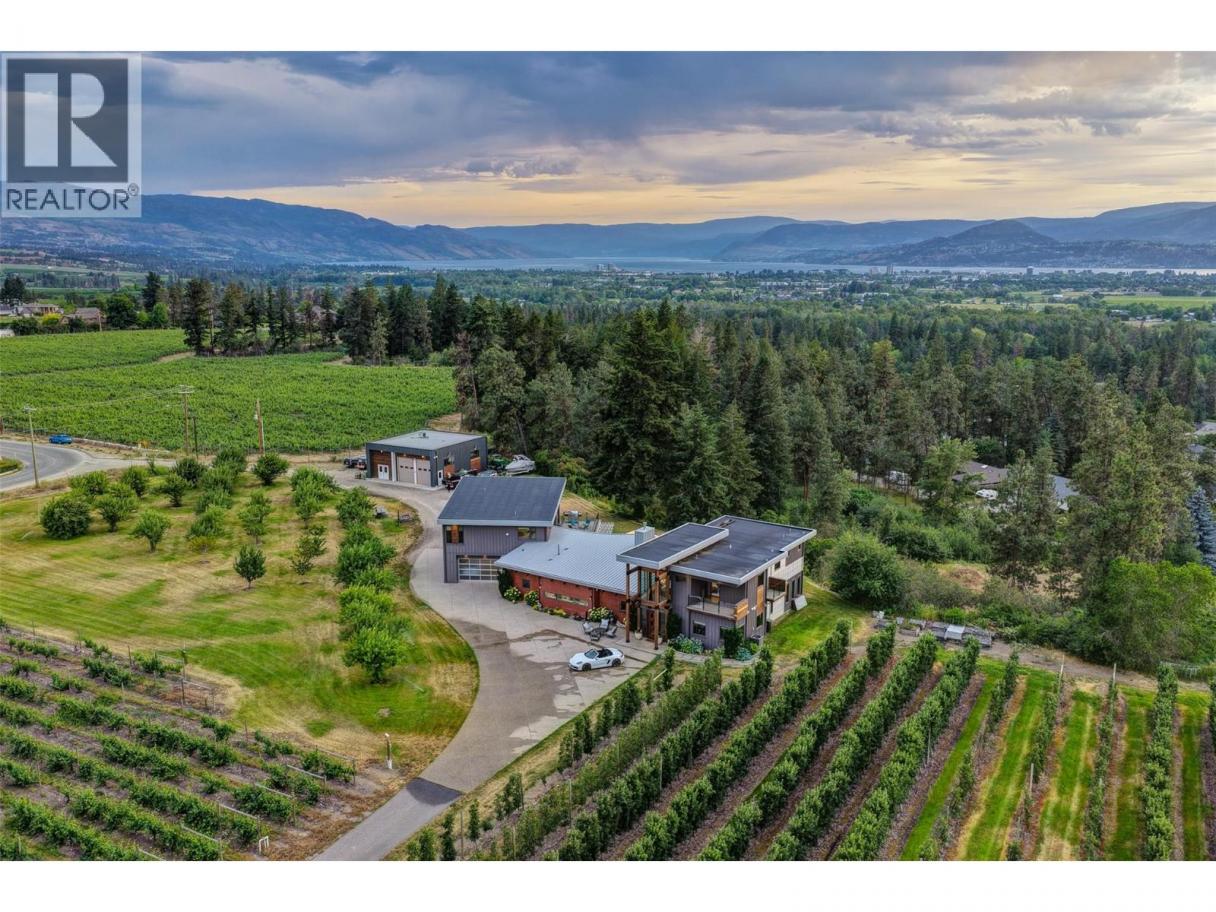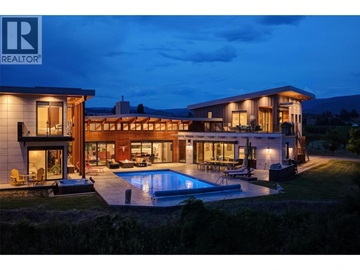 9.3 predominately flat acres, perfectly situated for those longing for the balance of urban convenience with rural tranquility. The magic of the big sky and twinkle factor of the city skyline at night is only part of this legacy properties allure. The 4200 +/- sq ft home with the Primary bedroom on the main floor, has been designed to create a space that is both a sanctuary & a source of inspiration. Created with flexibility in mind: 4 beds + 5 baths in the main house, an additional legal 1 bed, 1 full bath suite with huge deck & an additional 1/2 bath in the pool house. This home embraces the unique opportunity to experience a spacious & private retreat amongst a small vineyard & apple orchard with all the comforts of city life just 10 mins away. Every bdrm is appointed with its own ensuite & private deck. The perfect place to unwind, entertain & enjoy the beauty of the outdoors in a truly exceptional setting. Additionally, there is a detached multipurpose art/studio/wrkshp with over-height garage door (4 cars). Bright open art studio, washroom and ample power. Above the attached oversized 3 car garage, the +/- 974 sq ft legal suite incorporates high ceilings & large windows, providing an abundance of natural light, views & a sense of airiness. The suites large balcony allows guests to enjoy lake&mountain views during the day and the city lights/twinkle factor at night. Attention Equestrians, Small Batch Distillers, those creative entrepreneurial agri-tourism minds. (id:6769)