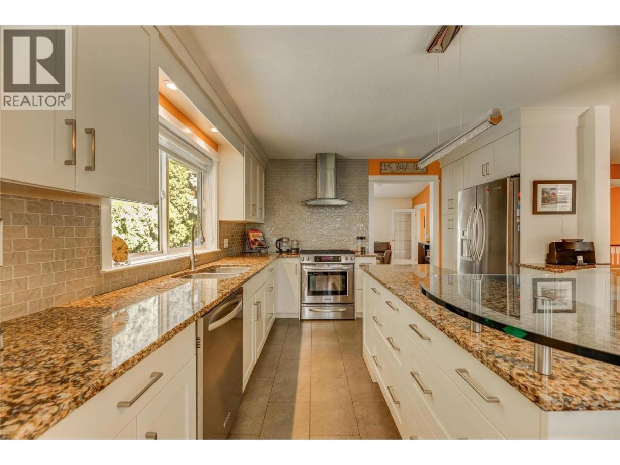Peace and tranquility! Beautifully appointed rancher with fully finished basement, located on one of the most private, quiet and serene lots you could ever hope for, that creates your own backyard oasis! Views from the front look out to Lake Okanagan and the bridge and the backyard backs on to park land - so this is truly a gem. This upscale executive home has been updated throughout, is meticulously kept and lovingly cared for. As you open the front door, you enter this home to a marble tile foyer open to the winding staircase giving access to the lower level or the open concept main floor living space. The kitchen features beautiful shaker style cabinets, quartz counters and upscale stainless appliances. Flooring, base & case, lighting fixtures, deck, roof, wiring & plumbing have all been updated. The backyard is fully fenced, and features a large deck and stamped concrete and a free standing workshop that is fully insulated and finished with tongue and groove wood walls. Currently the workshop is without electricity, however all heavy wiring leads to the house for future upgrading and tie in. The wiring for the hot tub has all been replaced as well. Walking distance to the Lakeridge Park Mall offering many amenities. This home is sure not to disappoint. Don't delay! Is it time to call Bayview Court home? (id:6769)