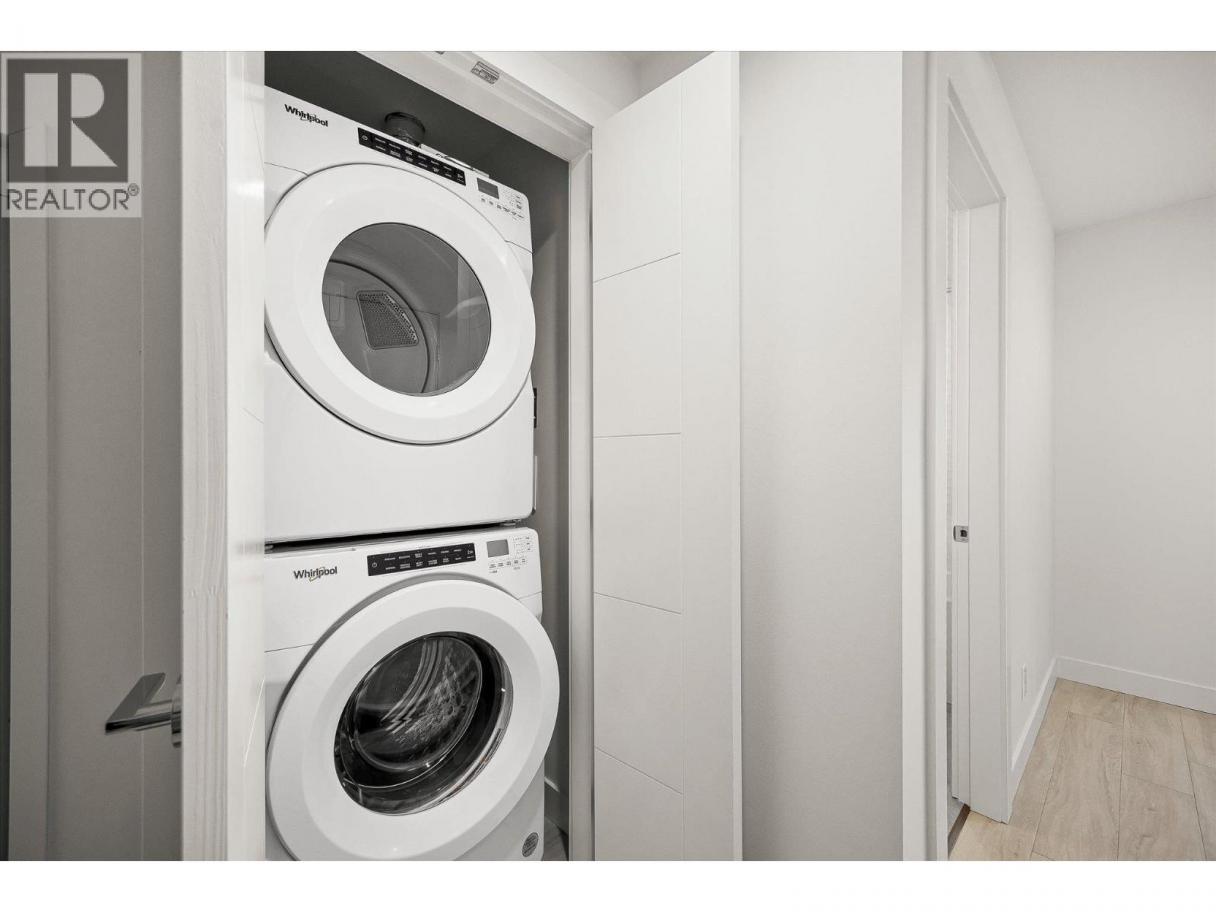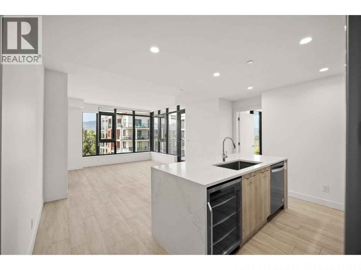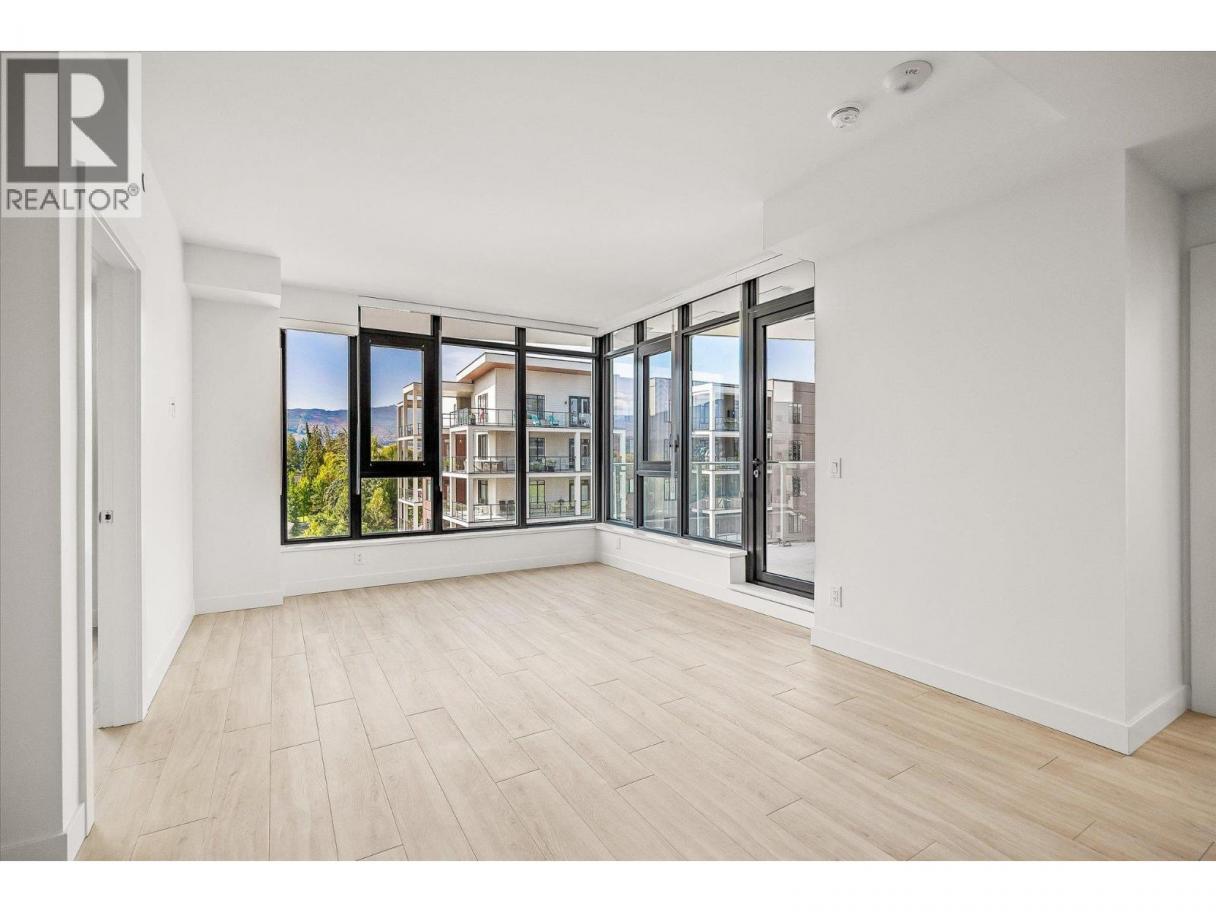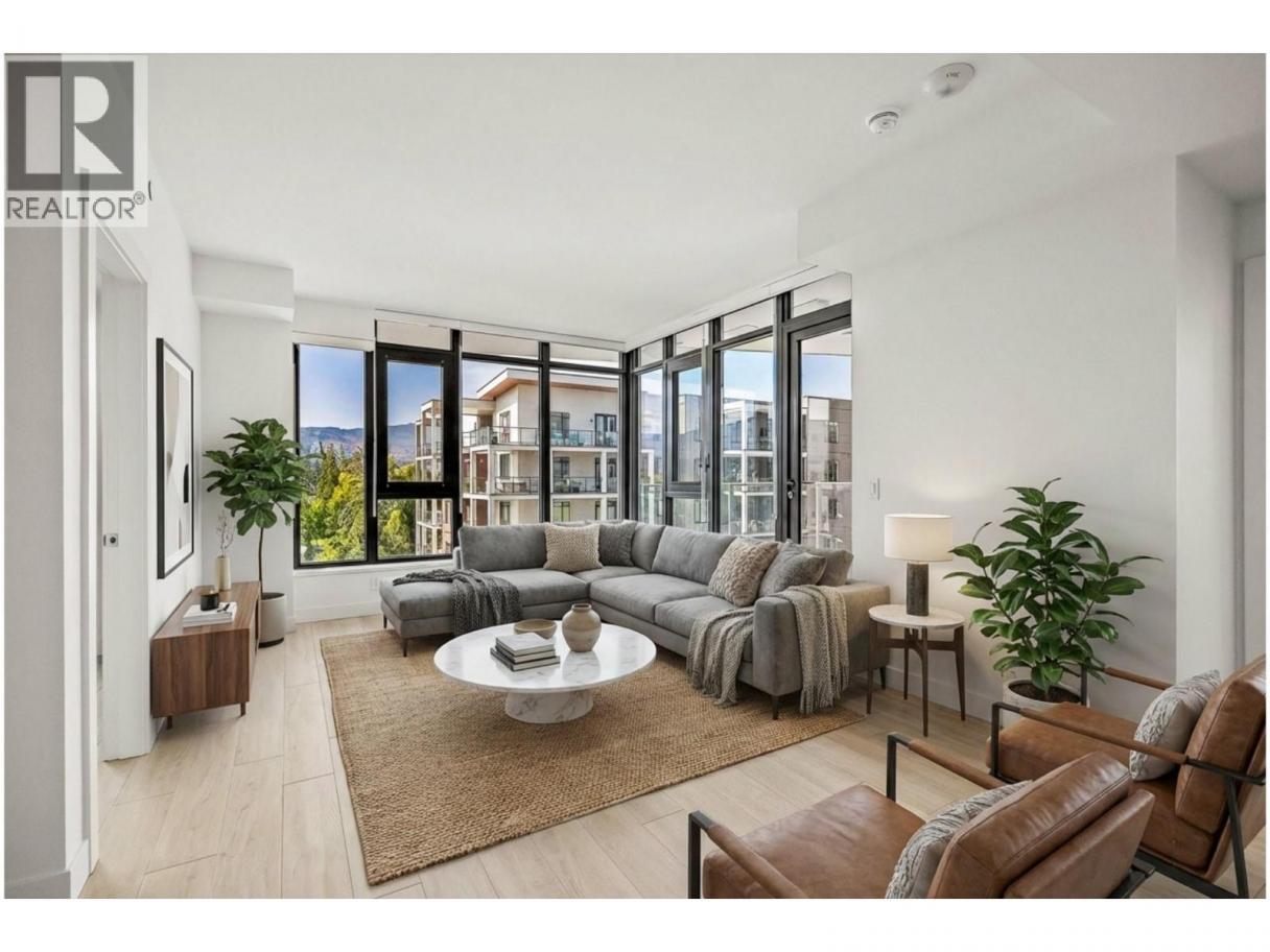 Priced well below assessed value of $854,000! Live steps from the shoreline in Aqua Waterfront Village, an elevated lakefront community in Kelowna’s desirable Lower Mission. This 2 bed, 2 bath home offers approx. 885 sq. ft. of intelligently designed interior space with two bedrooms, expansive windows and a spacious S/W balcony, offering natural light and lake views above the treetops. A split bedroom layout allows for privacy and flexibility. The kitchen features modern two-toned cabinetry, quartz countertops, under-cabinet LED lighting and a premium stainless steel appliance package, incl. a wine fridge. Enjoy luxury wide-plank vinyl flooring throughout the kitchen, living/dining area and bedrooms, blackout roller shades in both bedrooms and an energy-efficient central heating/cooling system. The spa-inspired bathrooms showcase porcelain tile and quartz countertops. 1 secure parking stall (with the rare chance to buy a 2nd stall), 1 storage locker, 1 bike locker are included. Amenities include an outdoor pool and hot tub, gas fire pits and BBQ’s, a fireside lounge and co working area, 2-level fitness centre, pet wash and bike wash and maintenance area. Vacant and ready for quick possession. Only a 5% deposit required. Buyer to verify all details and measurements if deemed important. All offers must be written on the Developer’s CPS. (id:6769)