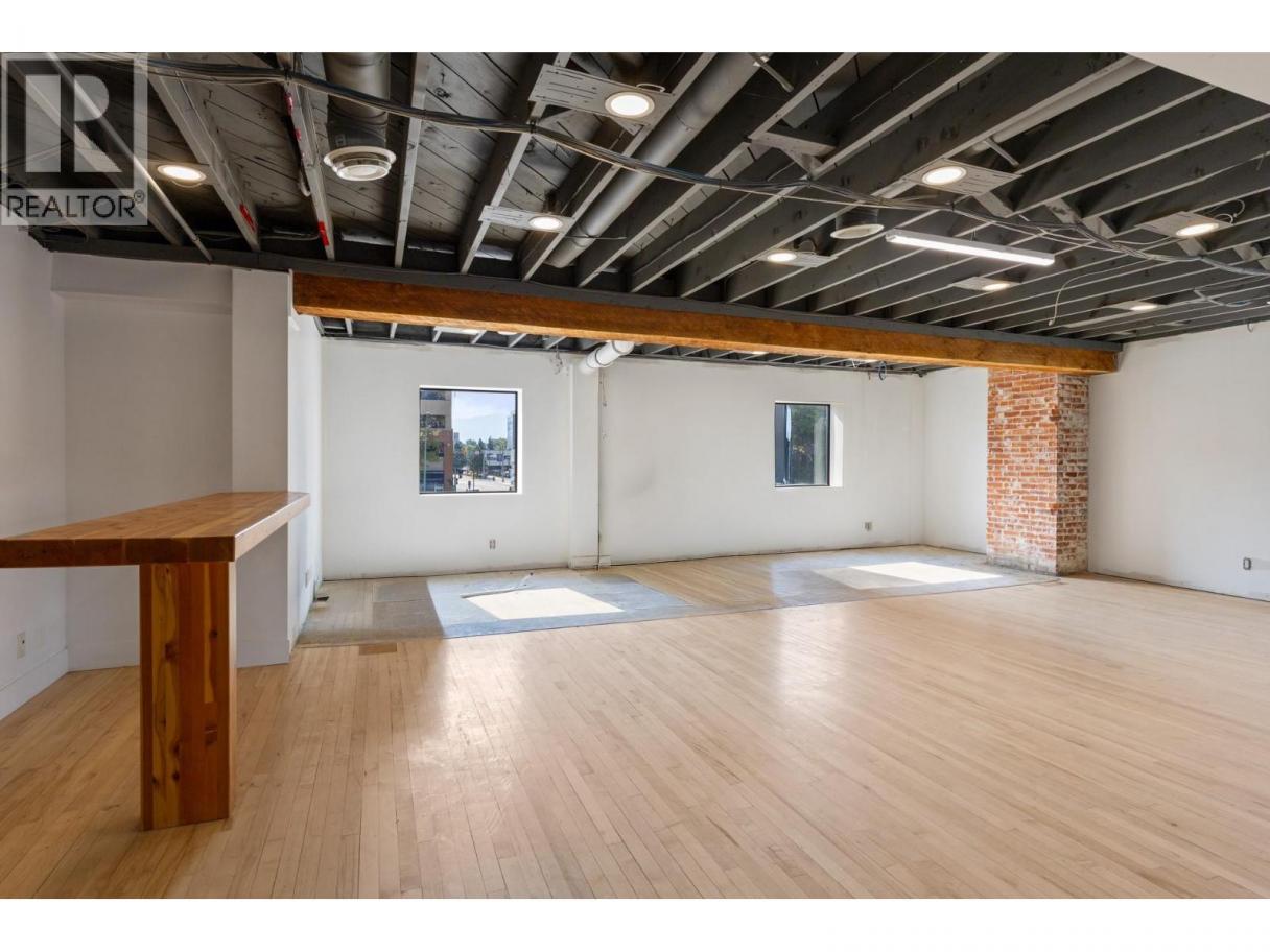 Located at Water Street and Bernard Avenue, this second-floor space offers an expansive open floor plan suited to a variety of uses, including professional office, boutique fitness, training facilities, and wellness operators. The building has recently undergone a significant exterior renovation and is anchored on the retail level by flagship retailer Arc’teryx and a local favourite, Fancy’s Deli. With an upgraded facade and prominent Bernard Avenue frontage, the property delivers excellent signage exposure and high pedestrian and vehicular activity within the vibrant “Meet Me on Bernard” pedestrian zone. This +/- 5,262 sq.ft second-floor space features exposed timber beams, expansive windows that bring in natural light, and secure fob-controlled access via both elevator and stairwell. Delivered in shell condition, it offers maximum flexibility to accommodate a fully tailored tenant build-out. Demising and inducement options are available for qualified tenants. (id:6769)