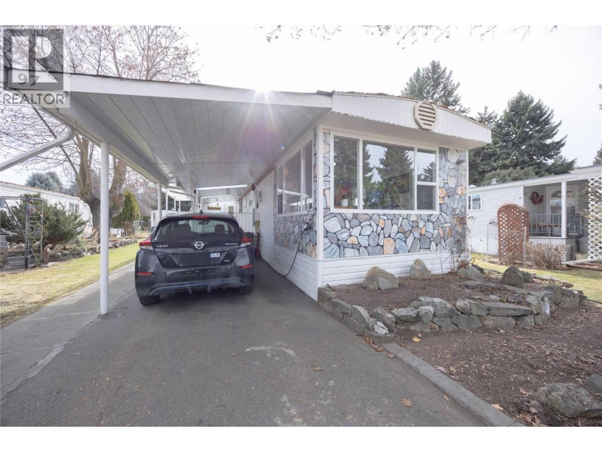 Cute, cozy, and perfectly located—this well kept 3 bedroom, 1 bath home offers exceptional value in a central 55+ community. The home features updated laminate flooring throughout and a gas fired furnace to keep things warm and efficient. A bright solarium adds extra year round living space, while a ramp for mobility access provides comfortable, barrier free entry. Enjoy Okanagan summers on the generously sized 26' x 7'6"" covered patio, plus a covered carport with space for an additional vehicle. The large yard includes a detached insulated 12' x 10' shed—ideal for tools, storage, or hobbies. Situated close to shopping, Okanagan Lake, the Mission Greenway, key amenities, and Kelowna General Hospital, this location delivers unbeatable convenience in every direction. (id:6769)