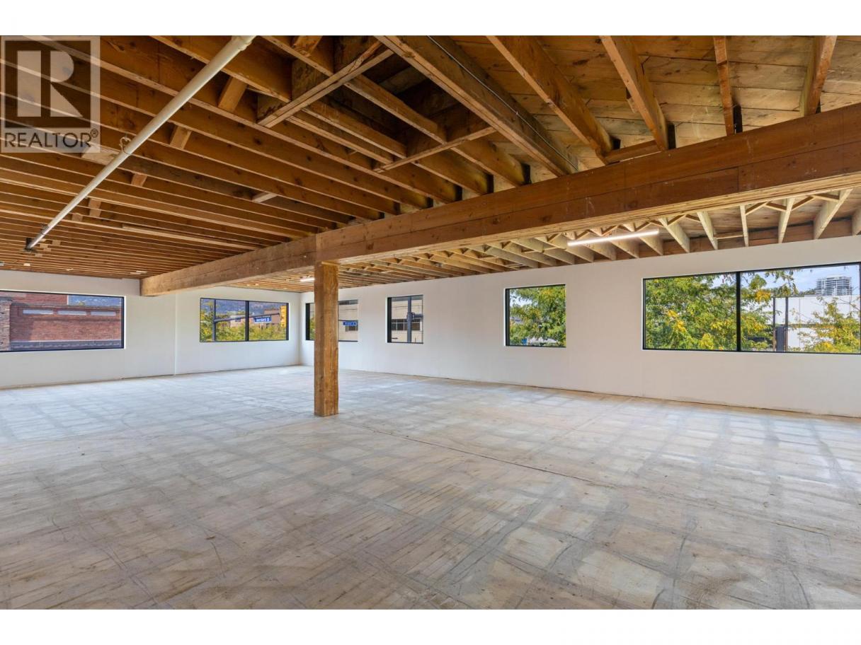 Located at Water Street and Bernard Avenue, this second-floor space offers an expansive open floor plan suited to a variety of uses, including professional office, boutique fitness, training facilities, and wellness operators. The building has recently undergone a significant exterior renovation and is anchored on the retail level by flagship retailer Arc’teryx and a local favourite, Fancy’s Deli. With an upgraded facade and prominent Bernard Avenue frontage, the property delivers excellent signage exposure and high pedestrian and vehicular activity within the vibrant “Meet Me on Bernard” pedestrian zone. This +/- 5,262 sq.ft second-floor space features exposed timber beams, expansive windows that bring in natural light, and secure fob-controlled access via both elevator and stairwell. Delivered in shell condition, it offers maximum flexibility to accommodate a fully tailored tenant build-out. Demising and inducement options are available for qualified tenants. (id:6769)