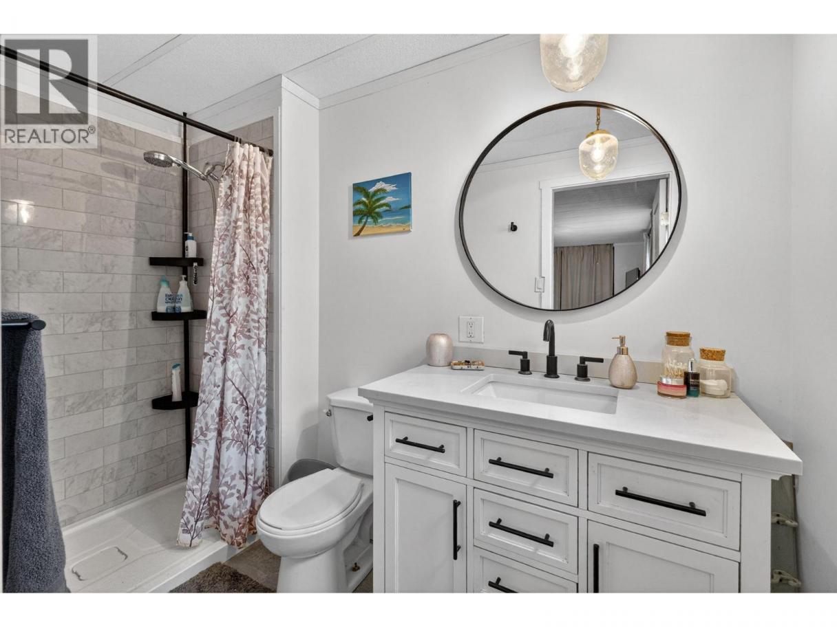 Beautifully updated in 2020 this 3 bed/2 bath home is located on a large flat lot in S.E. Kelowna affordable and perfect for families looking for country vibes, yet minutes to the city and a big yard to play in. Also perfect for those not interested in condo living. Almost completely updated in 2020 with New kitchen cabinets, countertops, appliances, laminate flooring, interior doors, hardware, trim and lighting. Both bathrooms had new vanities & tile and the ensuite has a new shower just installed. Furnace and A/C unit new in 2020. Hot water tank is 2013. New windows (2020) let in an abundance of light, including double sliders leading out to your private deck and out back there is a shed for storage. Did we mention this is all on a large treed lot, perfect for kids or adults to play. McCulloch heights MHP is a quiet, family friendly park. Pad rental is $525/ month. Water is $67/month billed quarterly. Come have a look! McCulloch Heights is on Private Family owned land - not First Nations (id:6769)