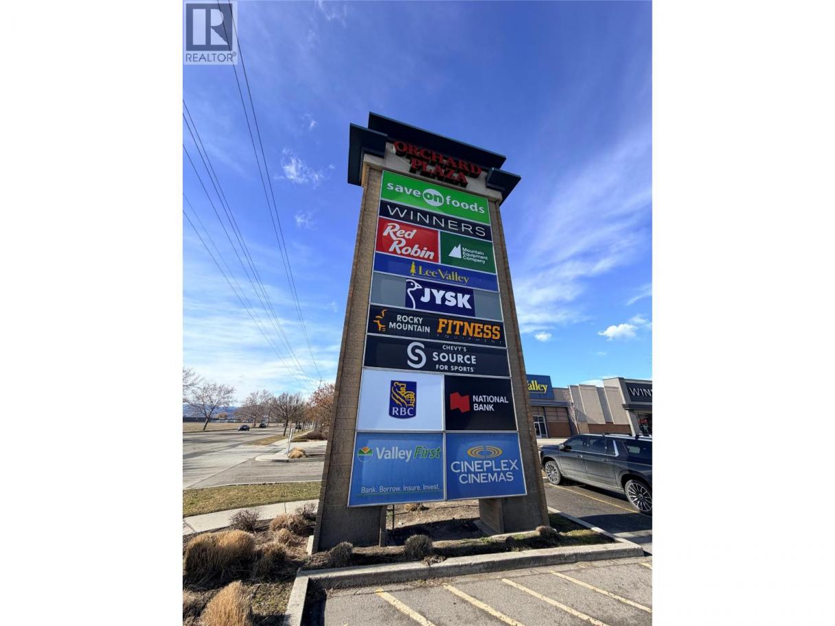 Prime 1,800 sq. ft. commercial lease opportunity located in the Orchard Plaza Shopping Centre. Right in the heart of Kelowna’s busy Springfield area and across the street from Orchard Park Mall, this unit offers great visibility near the intersections of Cooper & Springfield and Harvey & Springfield. Join a strong lineup of established anchor tenants including Winners, Save-On-Foods, JYSK, Cineplex, Mountain Equipment Company, and Rocky Mountain Fitness. Some other tenants include Natures Fare Market, Chopped Leaf, Okanagan Orthodontics, Sherwin Williams, RBC, Running Room Canada. The centre offers ample free parking and incredible signage opportunities to maximize business visibility. This bright 1,800 sq. ft. unit features large windows across the front facade and additional partial windows along one side wall, allowing for plenty of natural light. The space also includes an in-suite washroom and dedicated storage area, making it ideal for retail, professional services, or office users seeking a high-profile, centrally located space. (id:6769)