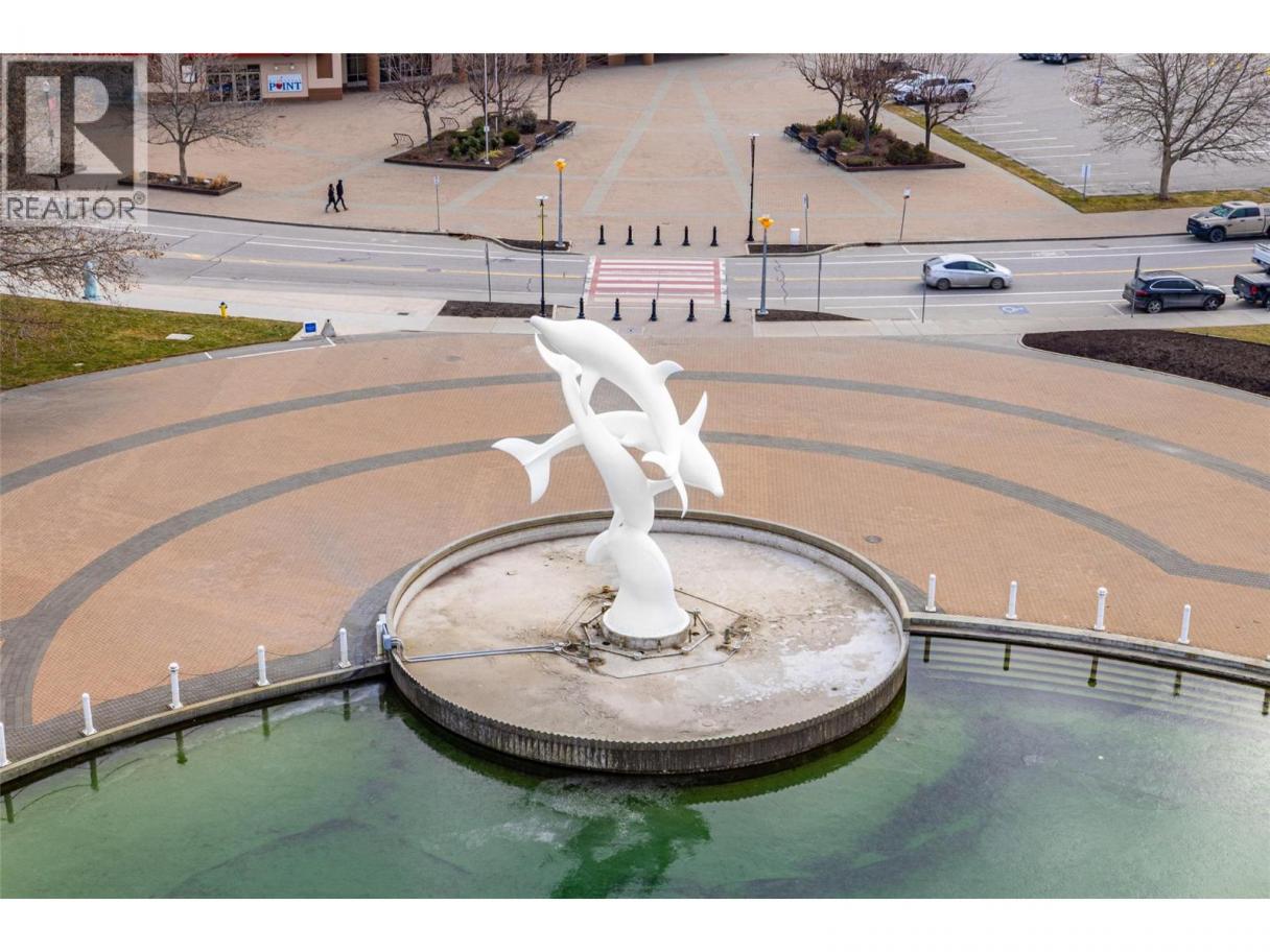 Iconic waterfront living in the heart of Kelowna’s Cultural District! Perfectly positioned on the waterfront, this beautiful two bedroom two bathroom lakeview condo offers a front-row seat to the very best of downtown Kelowna living. Inside, expansive walls of windows flood the home with natural light and frame views of Okanagan Lake, the bridge, the boardwalk, and the iconic Dolphins fountain below. The thoughtfully designed floor plan blends comfort and function, with a generous living area, ideal for both everyday living and entertaining. The kitchen features bar-style seating, under-cabinet lighting, ample cabinetry, and abundant counter space, seamlessly opening to the dining area where lake and city views elevate every meal. Step outside to not one, but two private patios, perfect for morning coffee, sunset dinners, or a glass of Okanagan wine as the city lights come alive. The primary bedroom is a true retreat, complete with a walk-in closet and a private ensuite, while the second bedroom and full bathroom provide flexibility for guests, a home office, or family. The Dolphins offers resort-style amenities including an outdoor pool, hot tub, tennis court, fitness centre, and immaculately maintained grounds. Right outside your doorstep you’ll find Kelowna’s Cultural District, with world-class dining, galleries, theatres, boutique shopping, and microbreweries just steps away. Walk to the beach, marina, yacht club, boardwalk, festivals, and waterfront parks, or simply enjoy the energy of downtown from your own balcony. Whether you’re seeking a full-time residence, a high-end urban retreat, or a premier waterfront investment, this is lakefront living at its most iconic, where culture, convenience, and the Okanagan lifestyle meet. (id:6769)